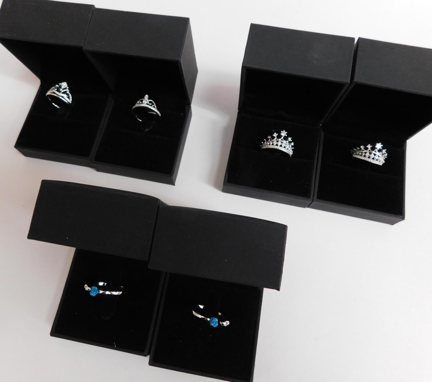 6x White gold plated dress rings