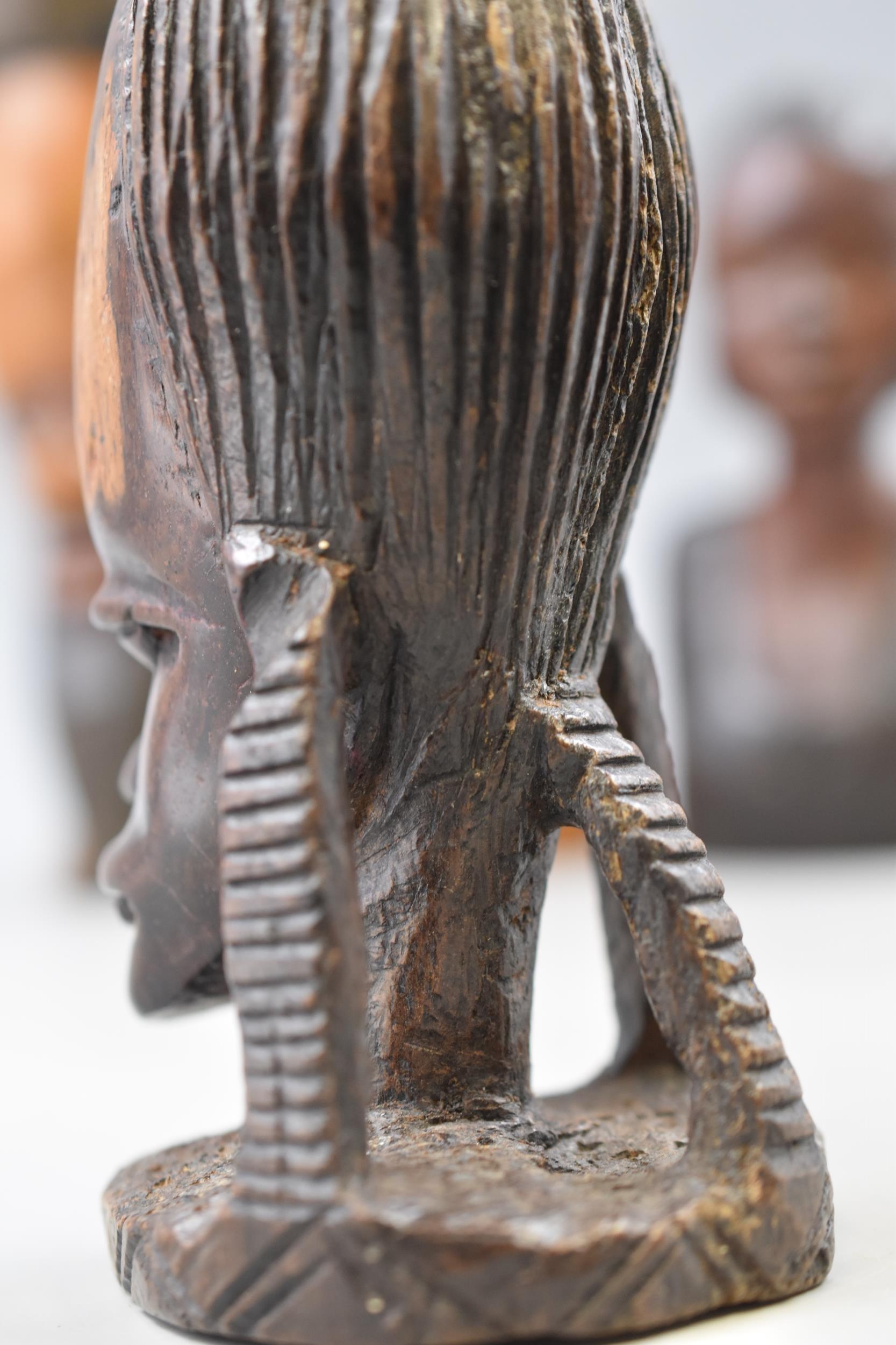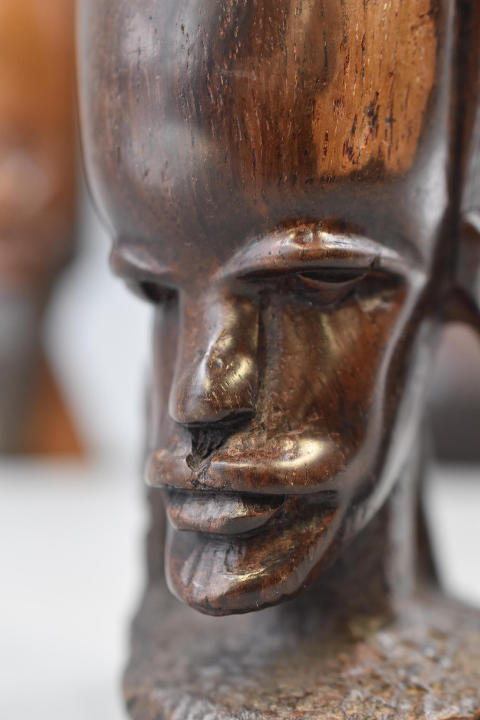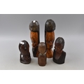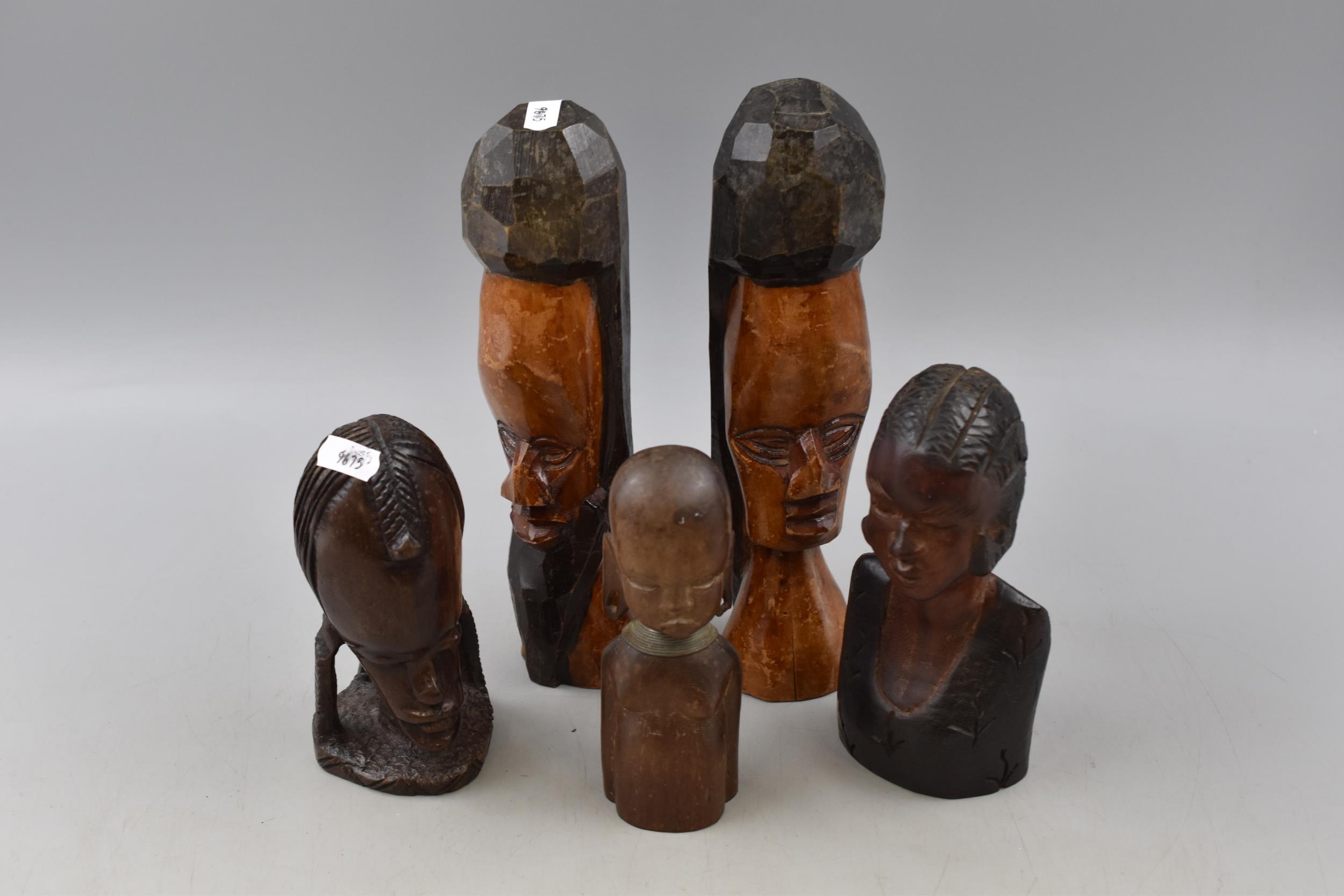 Five Wooden Hand Carved Ethnic Busts, Largest Approx 10" Tall. AF