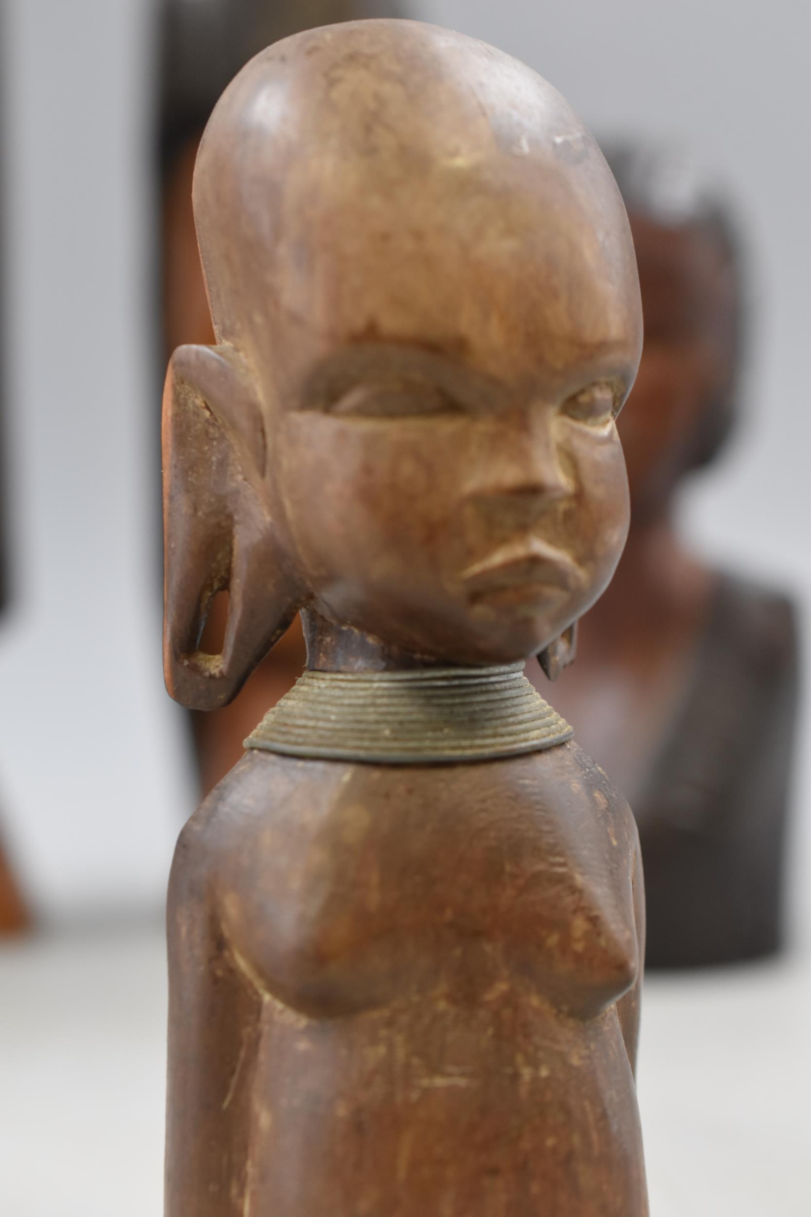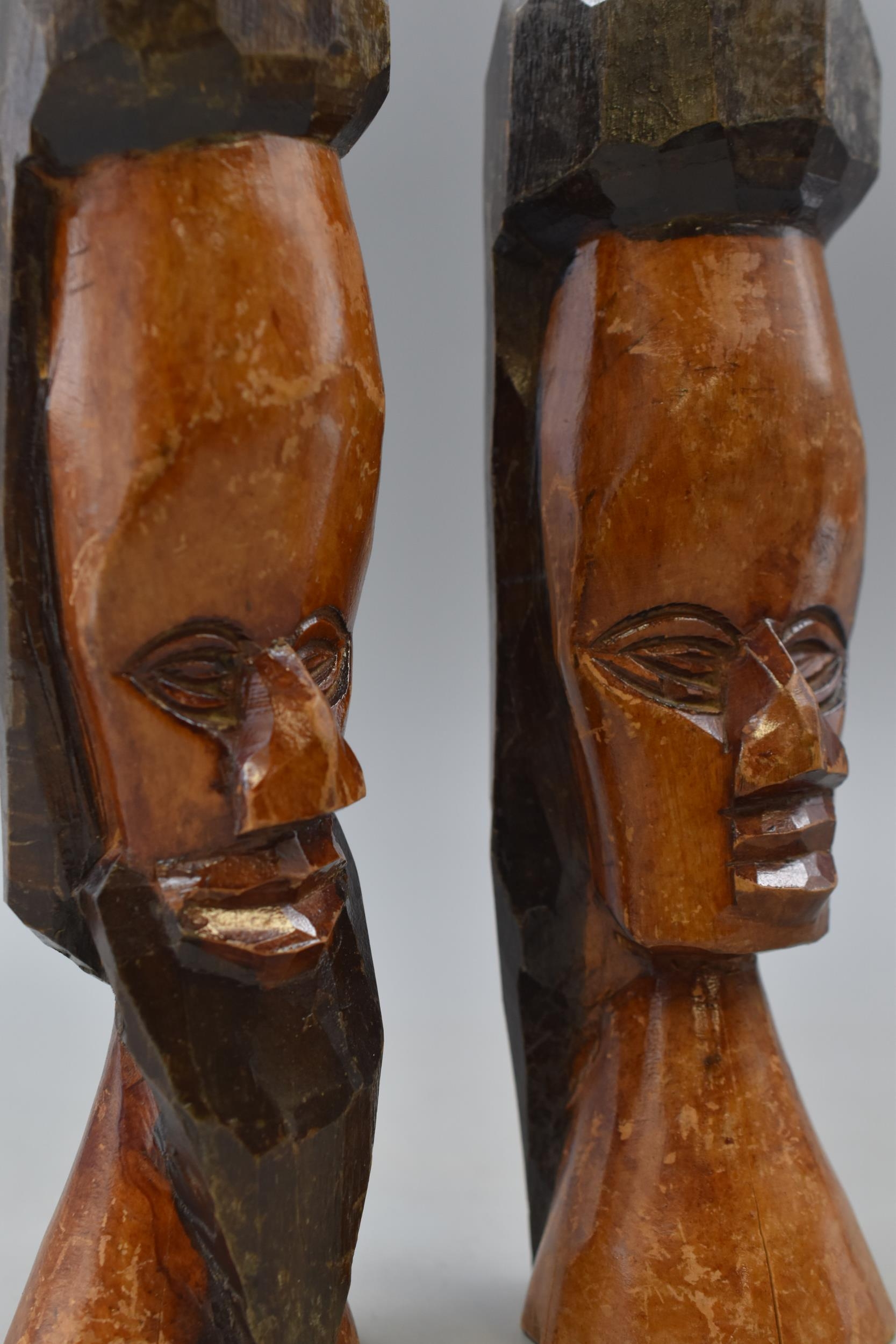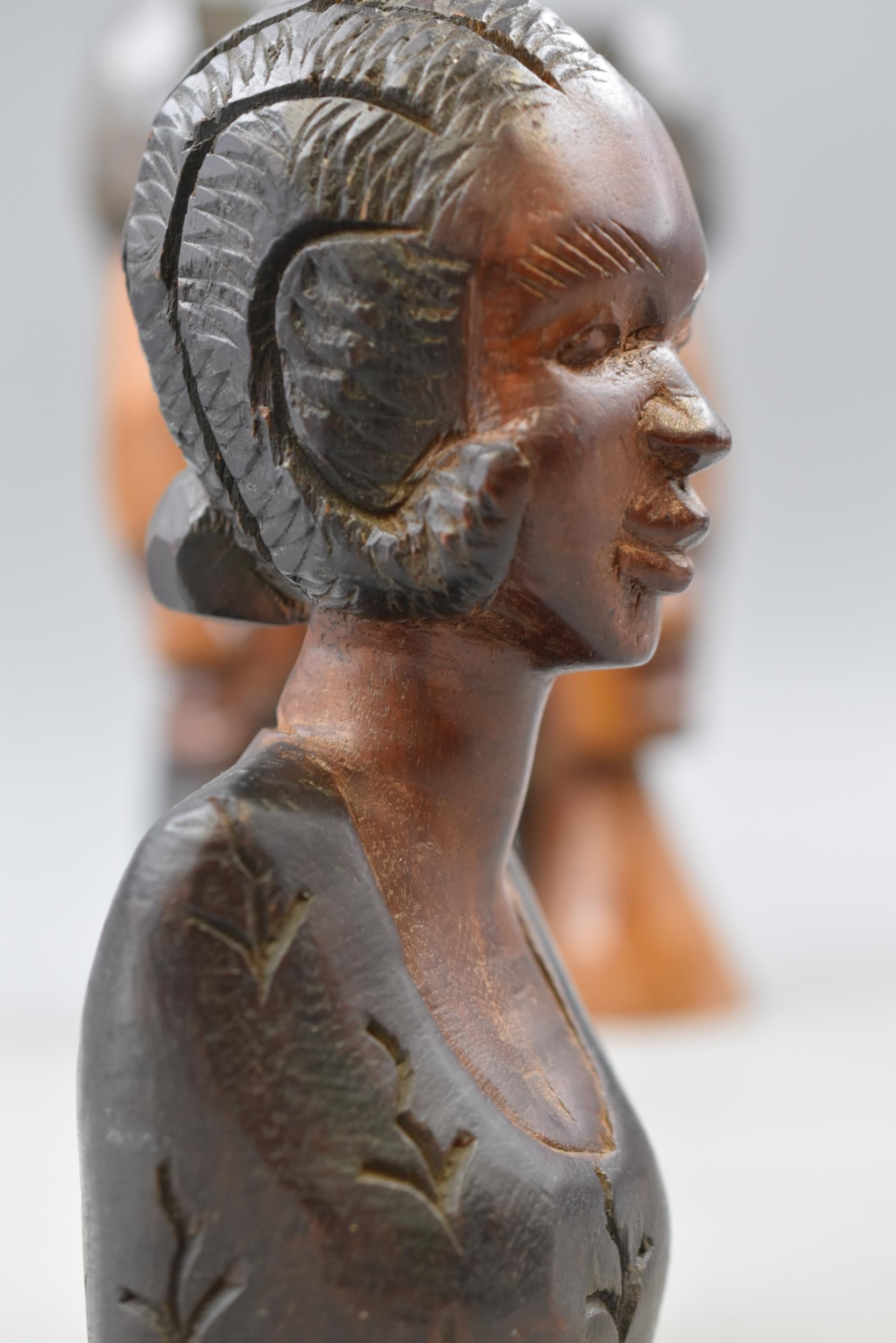 Five Wooden Hand Carved Ethnic Busts, Largest Approx 10" Tall. AF