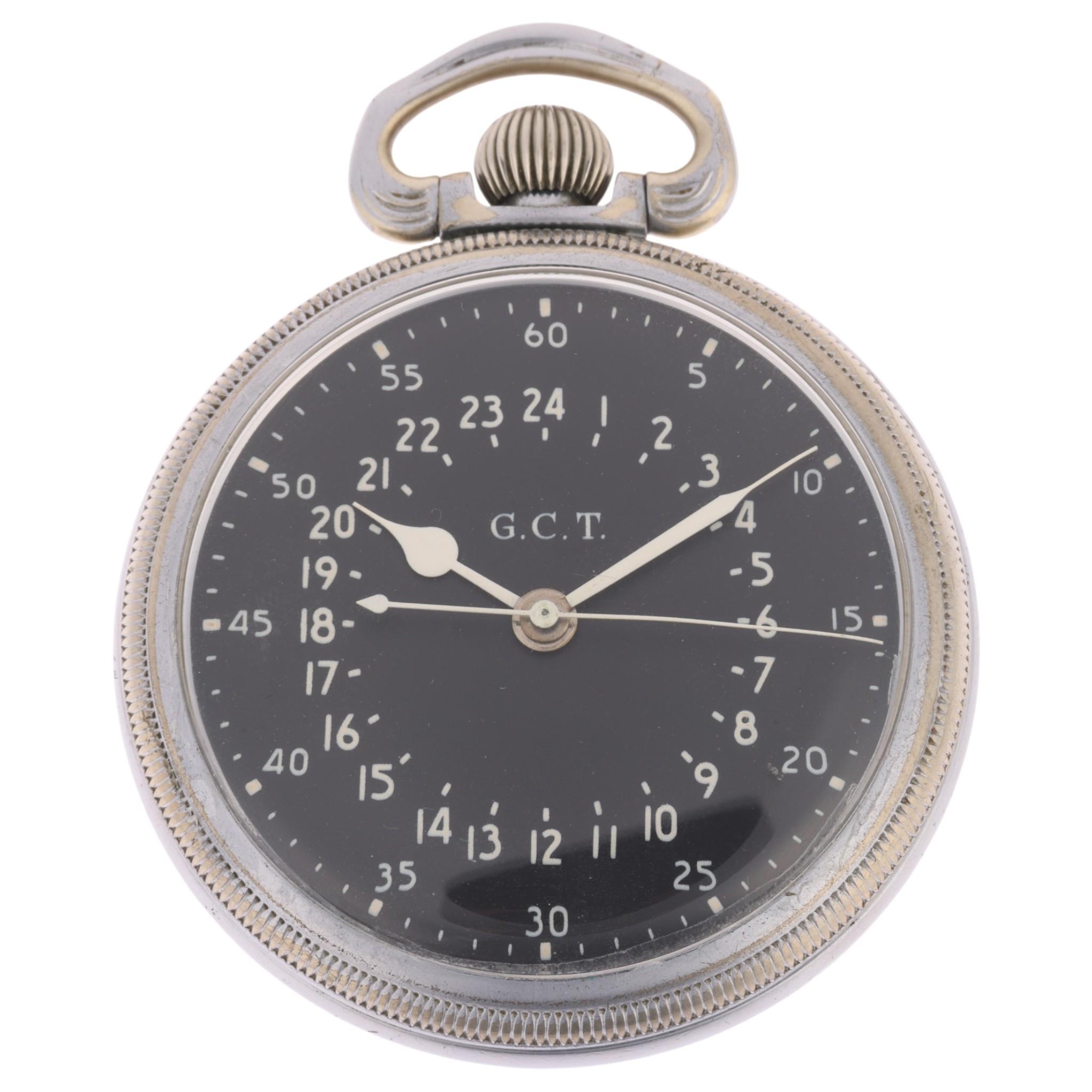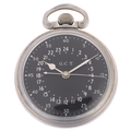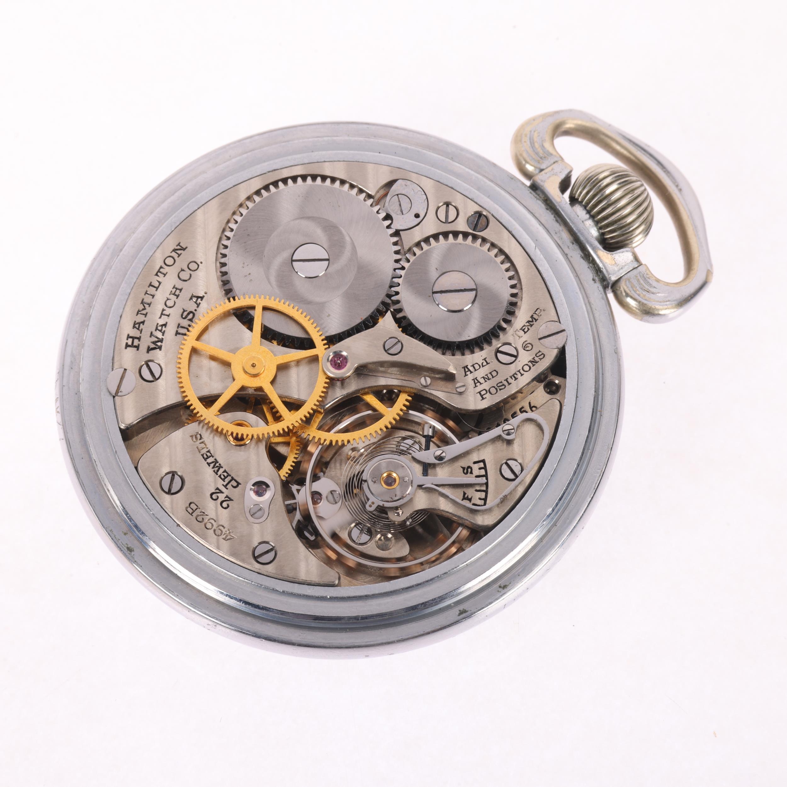 HAMILTON - an Art Deco nickel open-face keyless 24-hour pocket watch, black dial signed GCT with white Arabic numerals, spade hands, sweep centre seconds hand, movement signed Hamilton Watch Co USA, 22 jewel movement with calibre 4992B, serial no. 4040556, case no. 759285, case width 52mm, working order