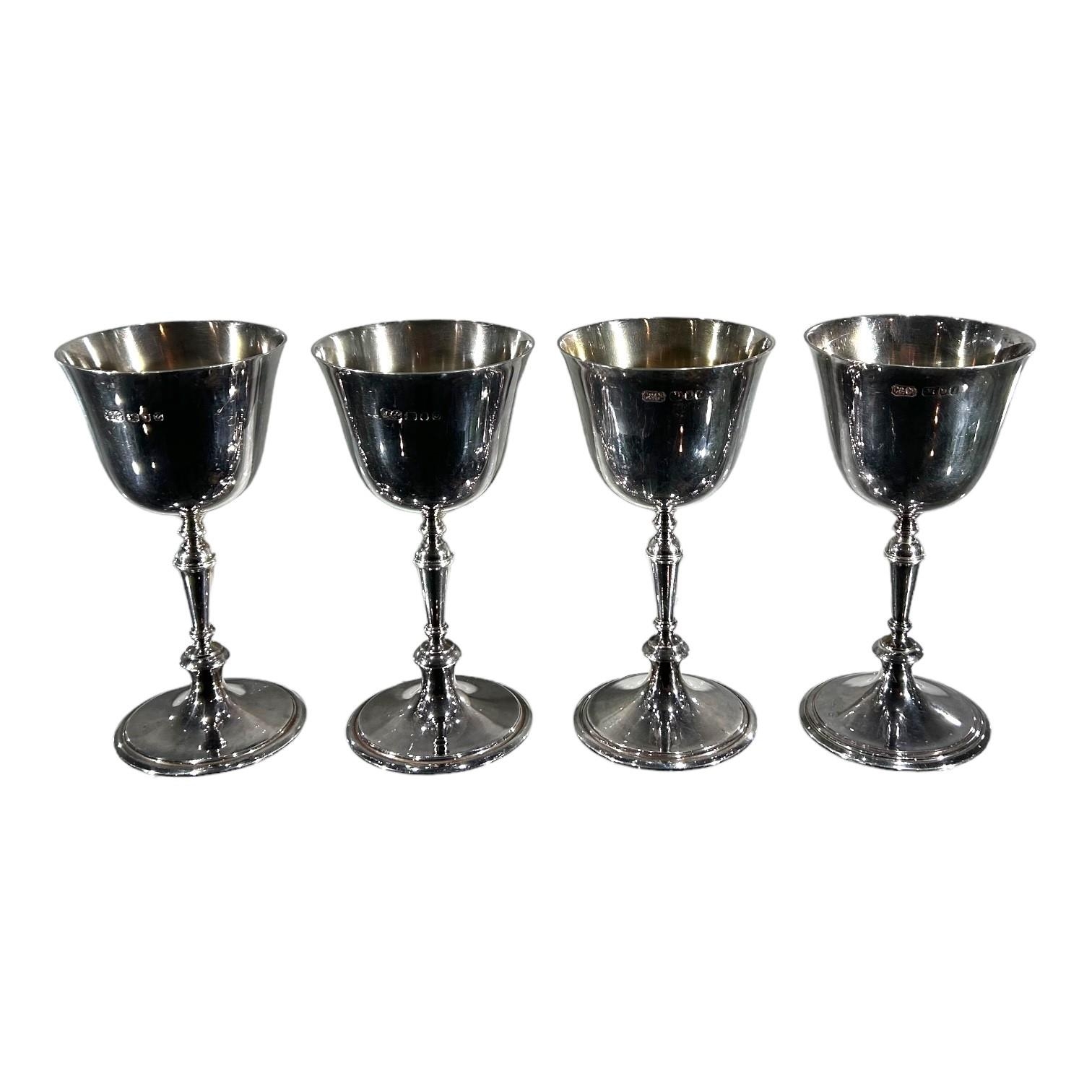 CARRINGTON & CO., A SET OF FOUR SILVER GOBLETS, HALLMARKED LONDON, 1966 & 1969