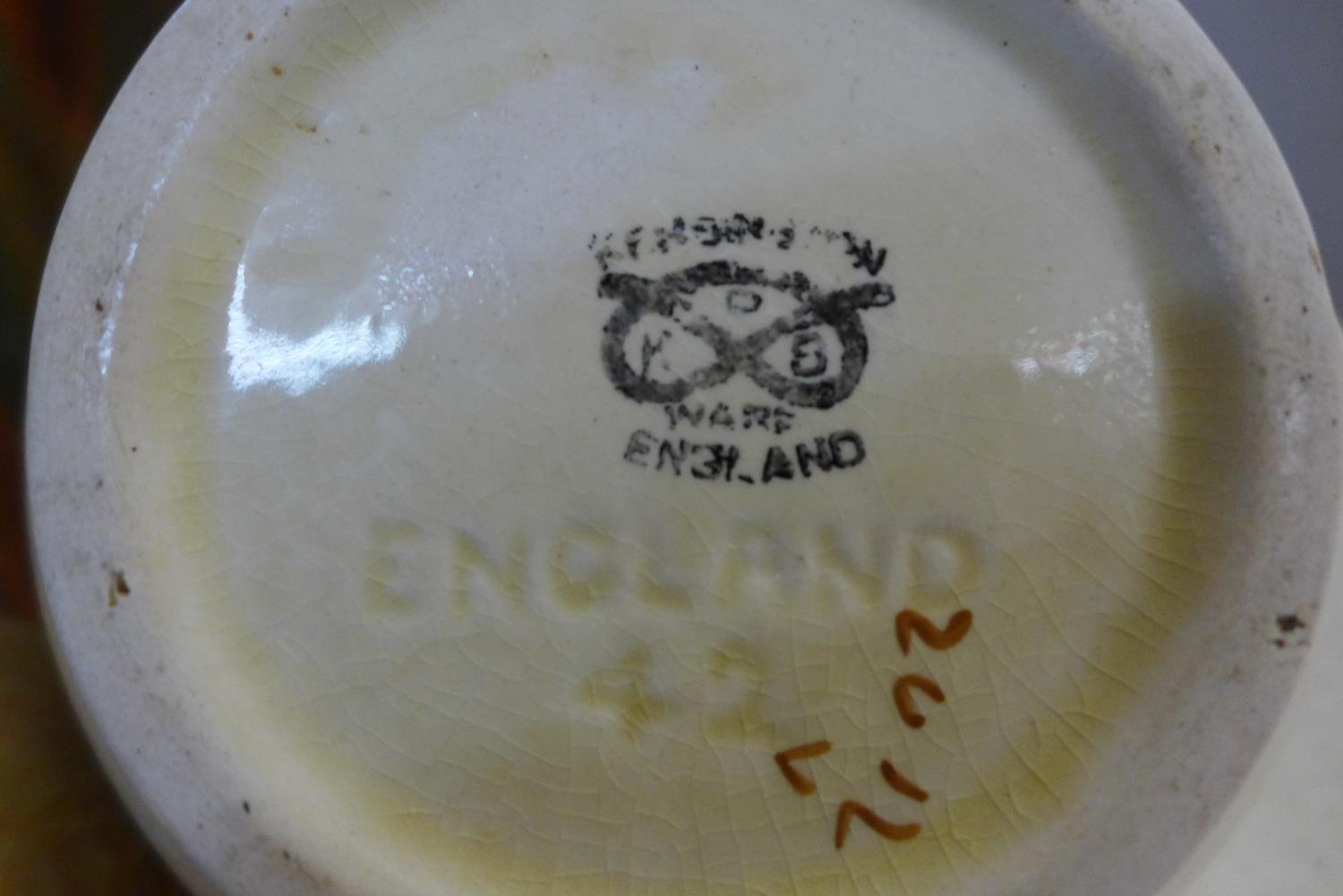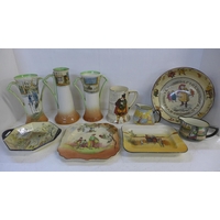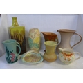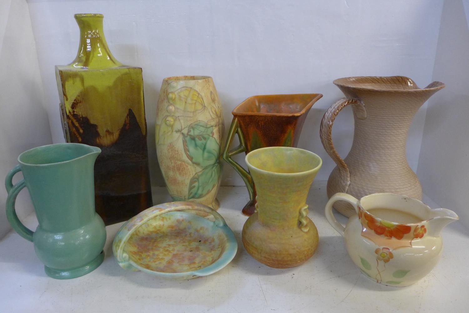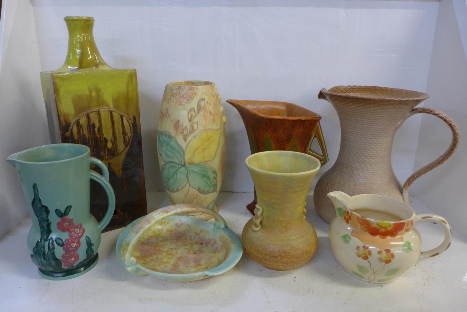 A studio pottery table lamp base and a collection of Art Deco pottery