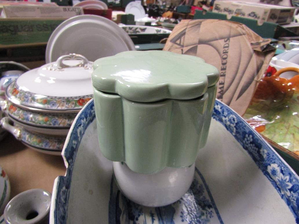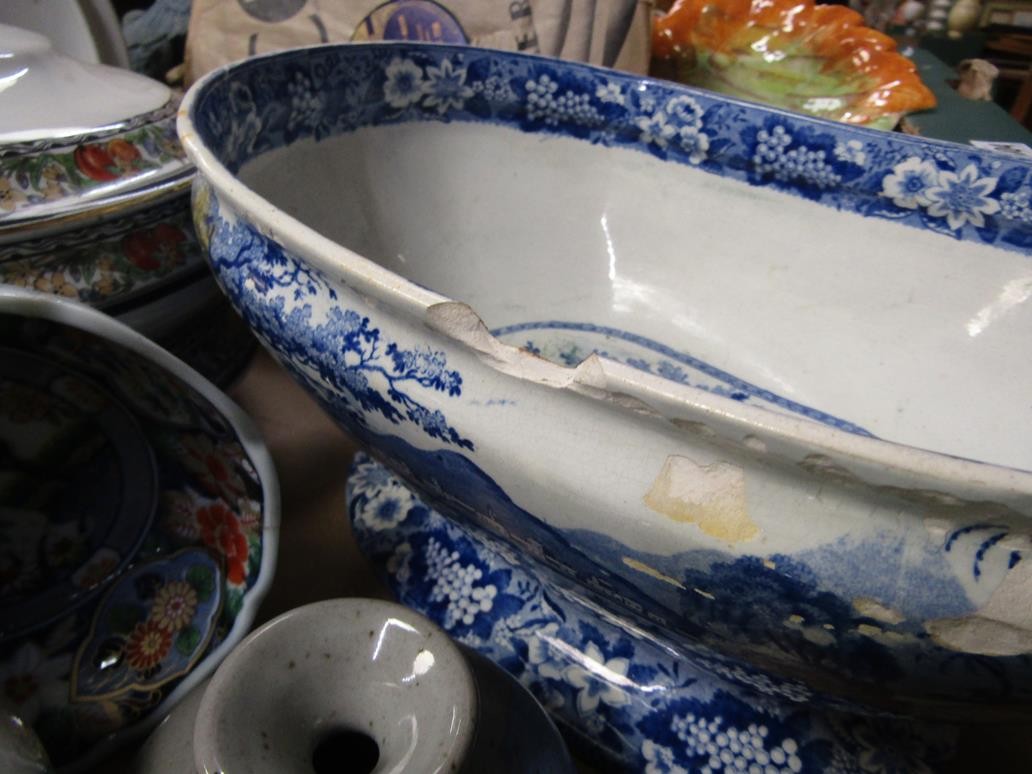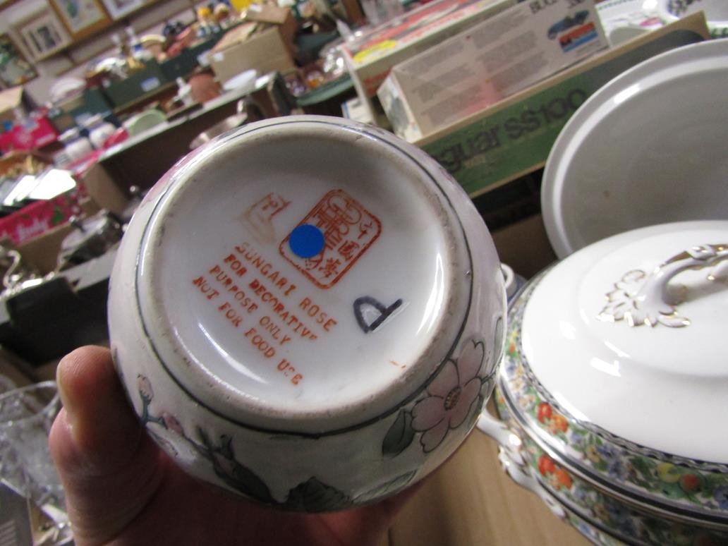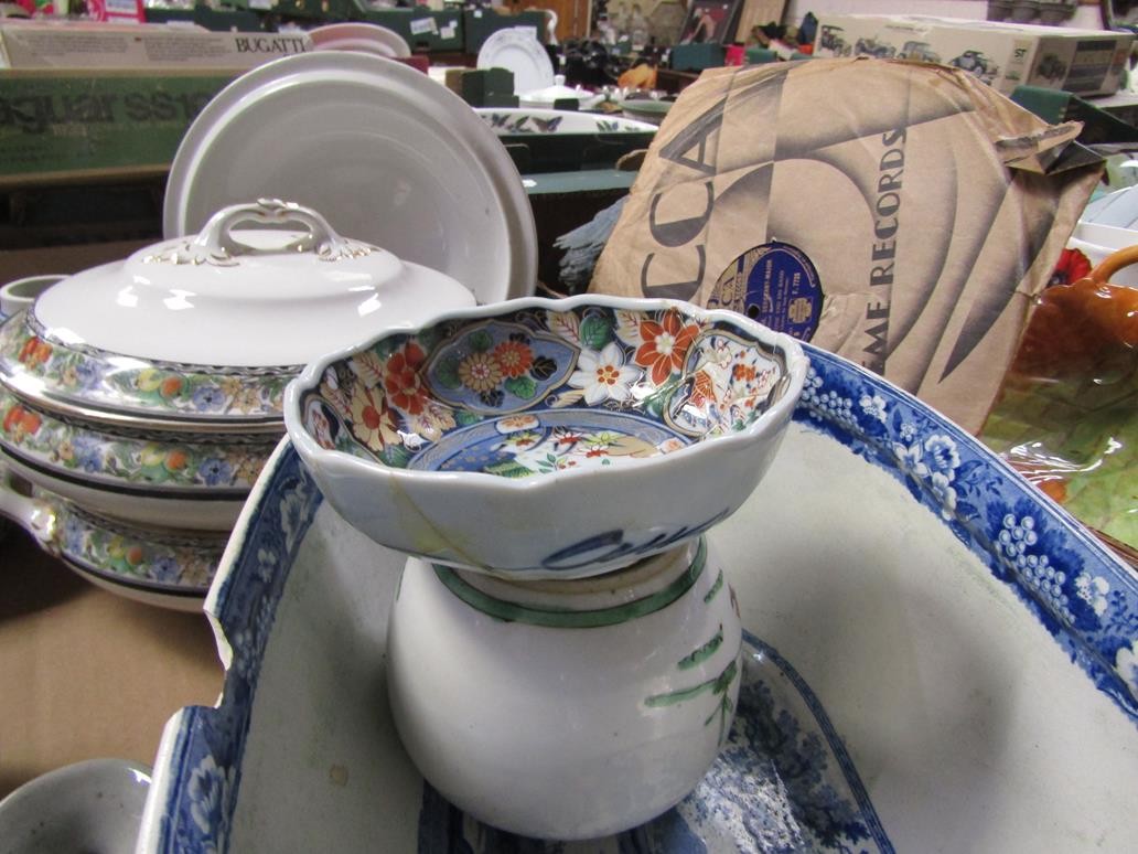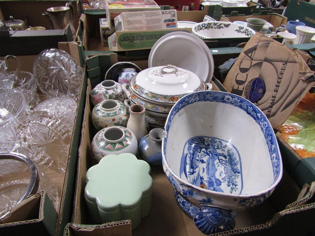 BOX OF CERAMICS TO INCL B&W TUREEN, ORIENTAL ETC