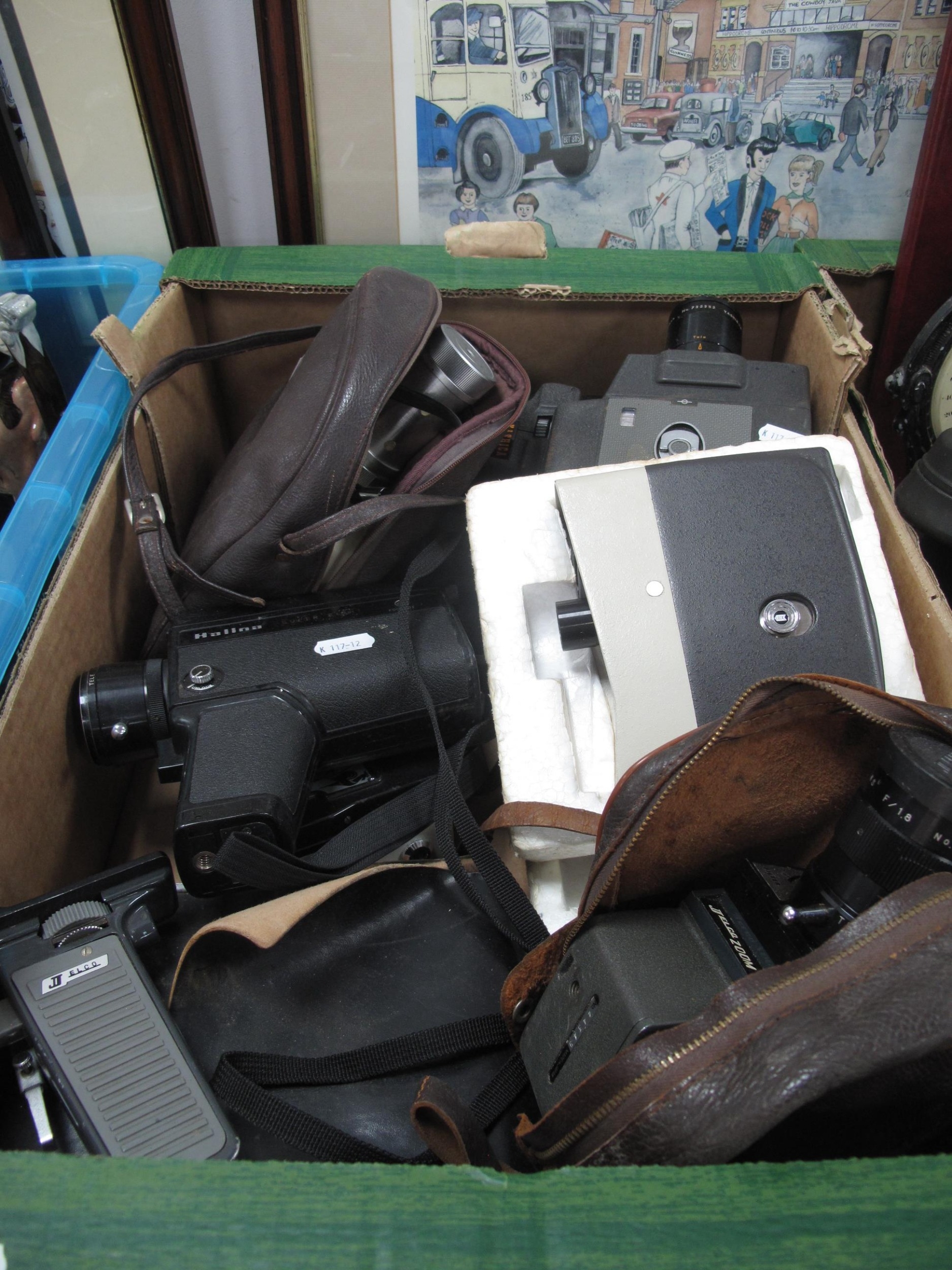 Cine cameras, including examples from Chinon, Yashica, Halina, Pathescope etc. One box. [493835]