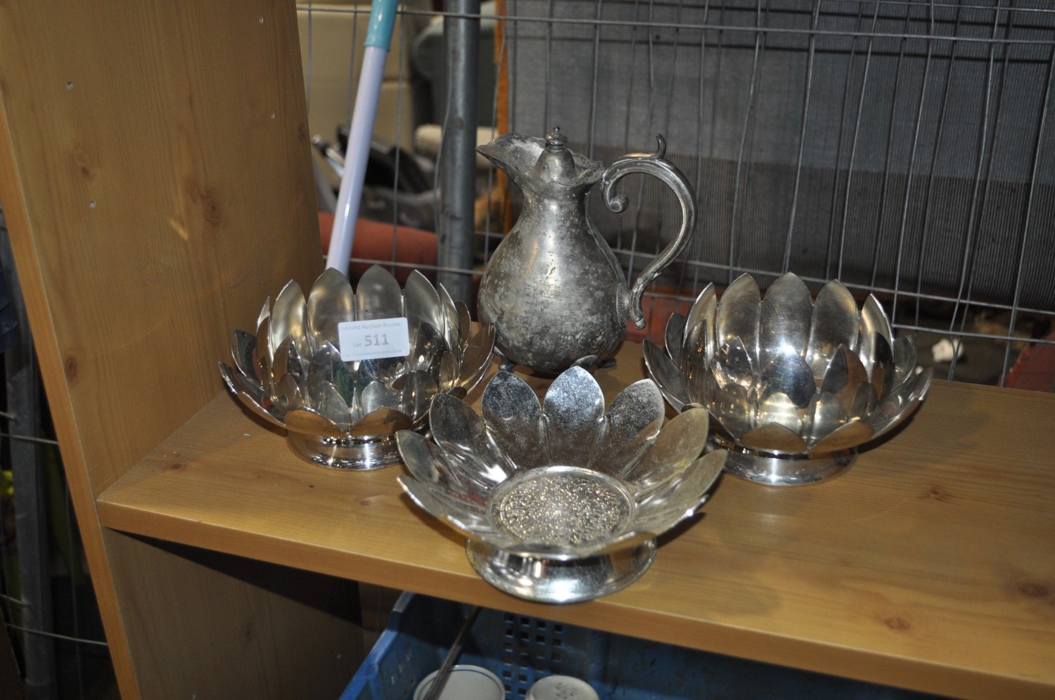 TWO VINTAGE REED AND BARTON 3002 SILVER PLATED NESTING BOWLS AND A PLATED CREAMER JUG