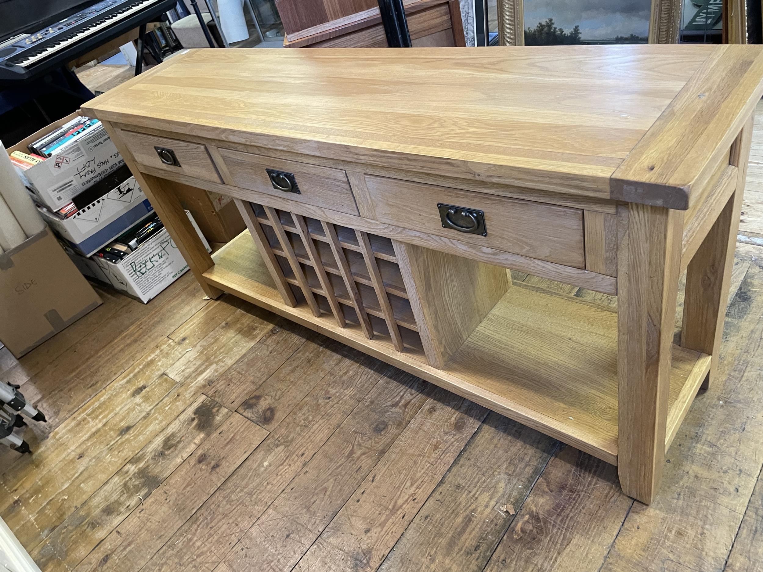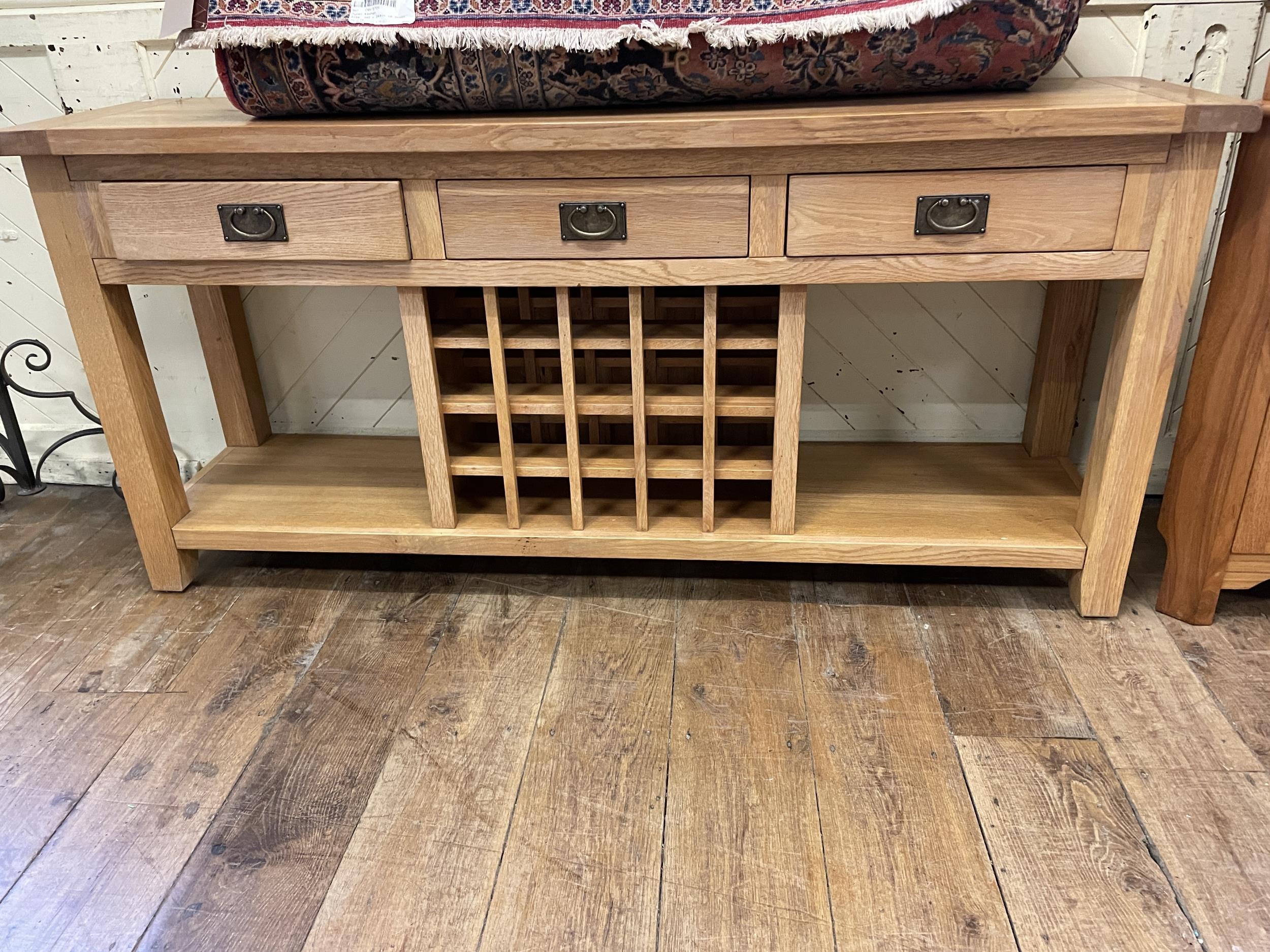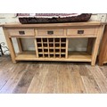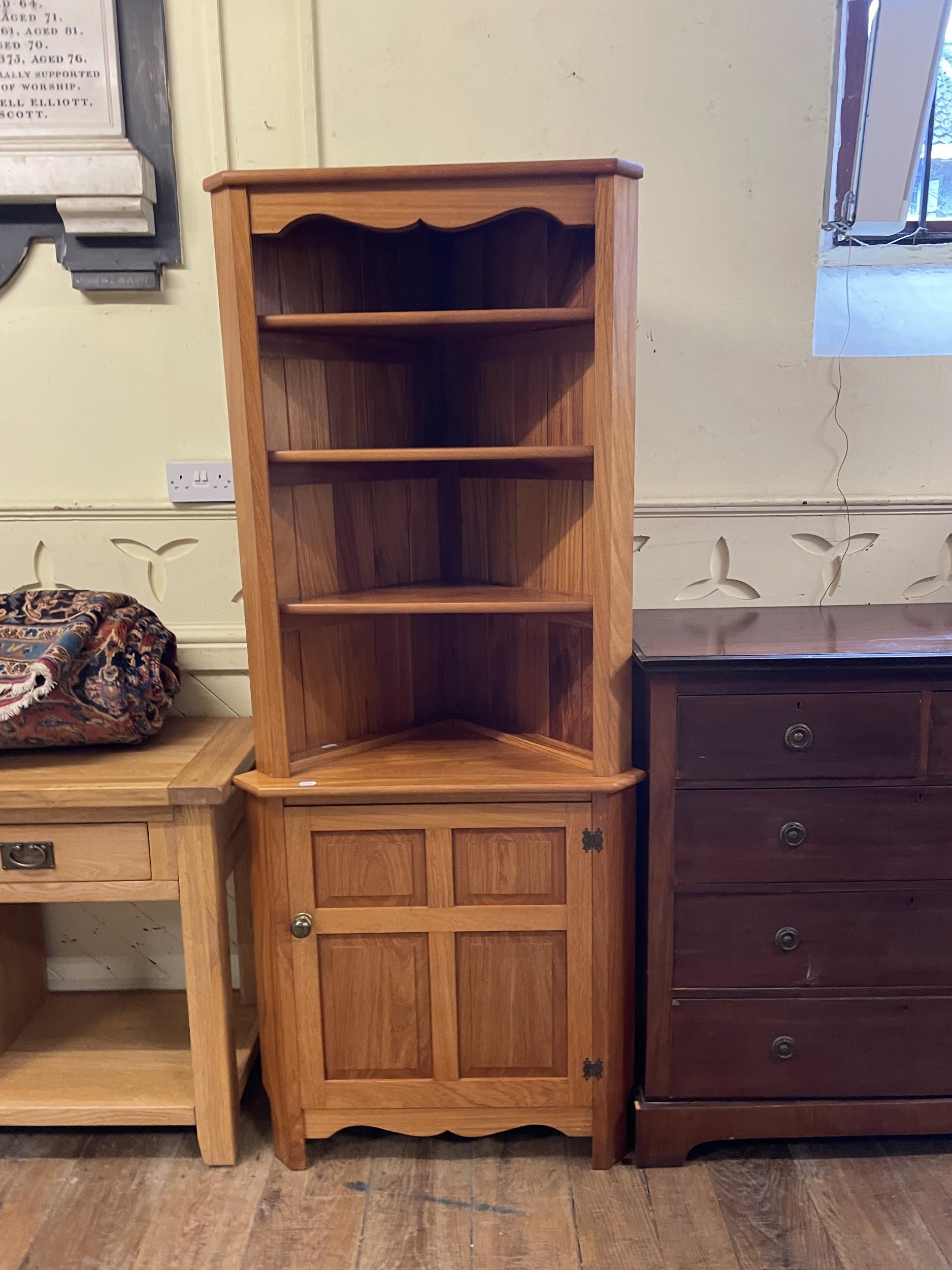 A modern light oak dresser base, 186 cm wide, and a corner cabinet (2)