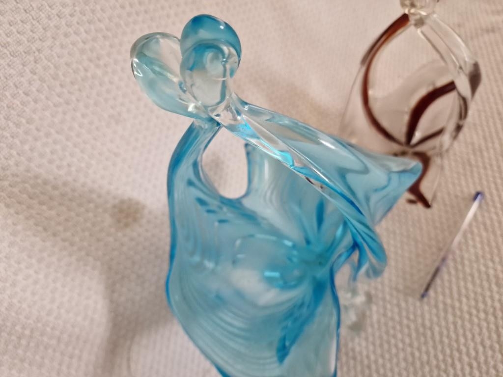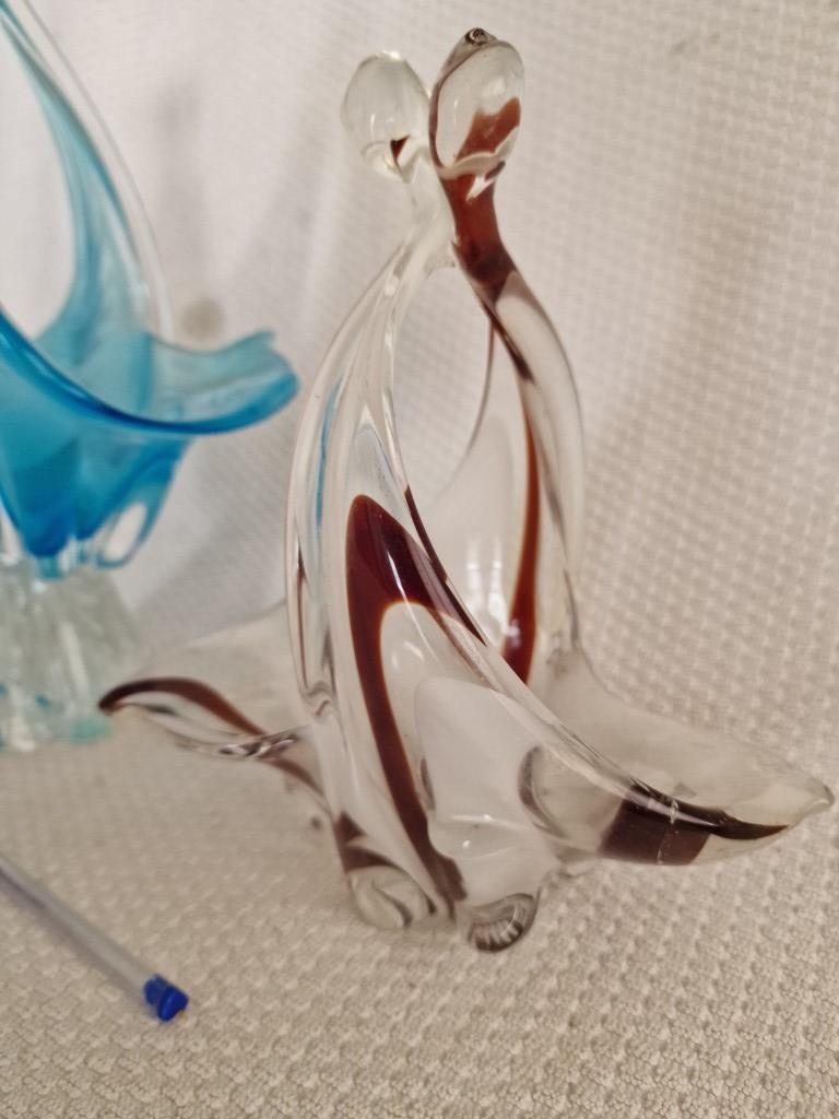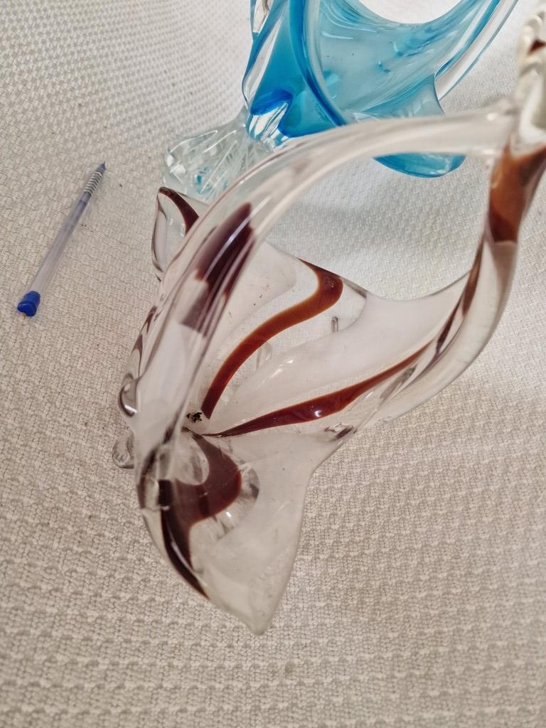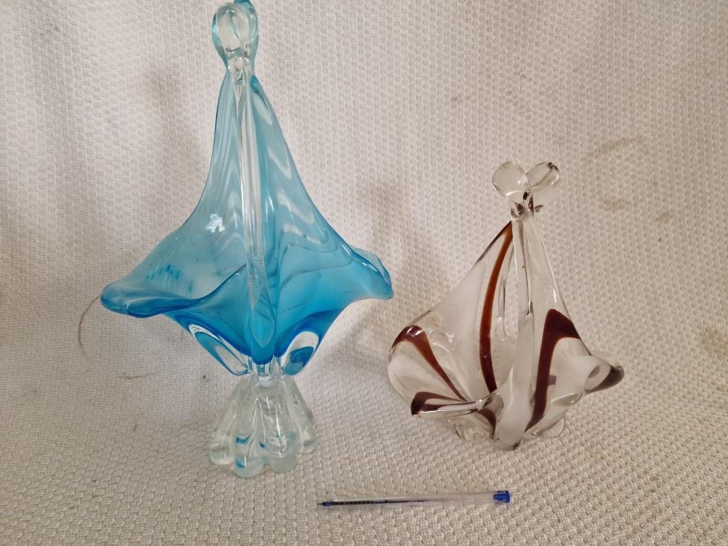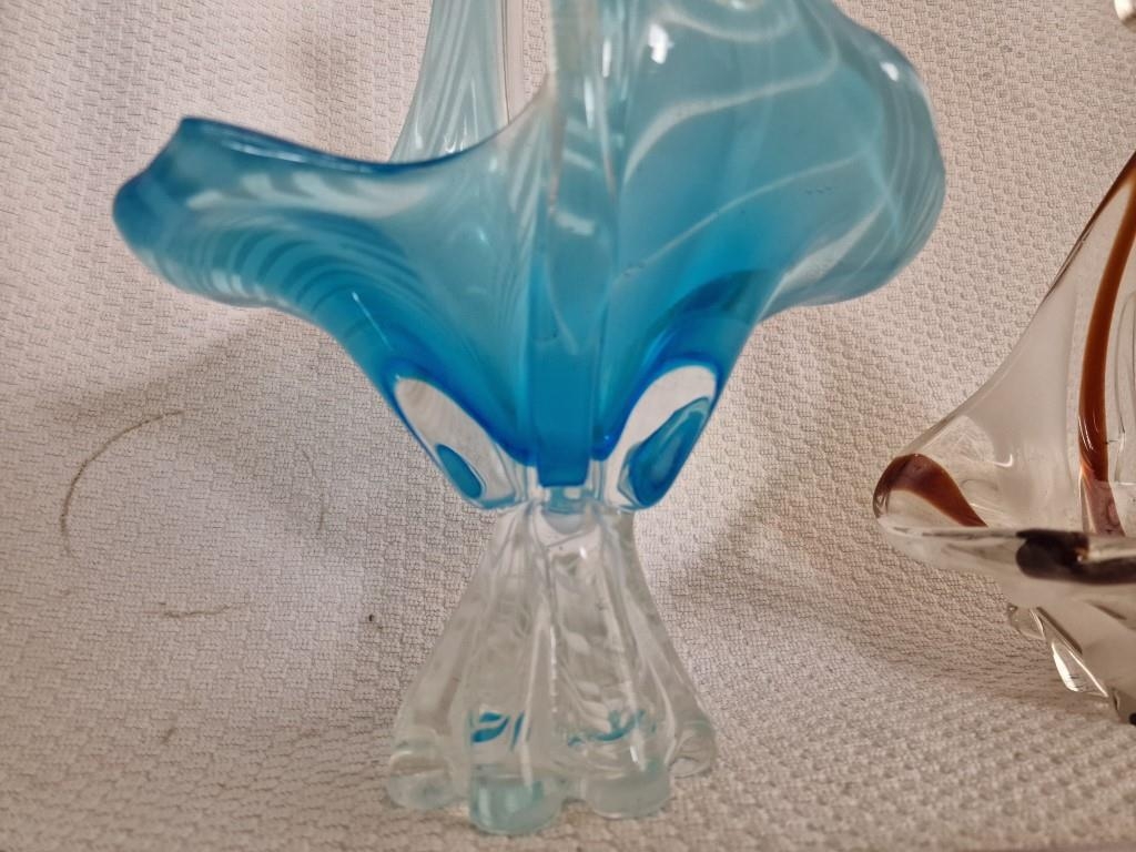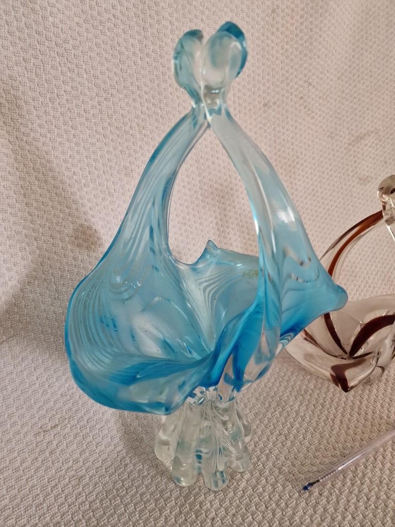 2 x Asfour Crystal Art Glass Abstract Baskets in Blue, Brown and White Tones, (Approx. H: 36cm), (2)