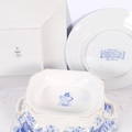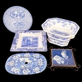 A group of Victorian and later blue and white ceramics, including a Chinese marine 2-handled tureen, meat stand, framed Delft tile, etc (5)