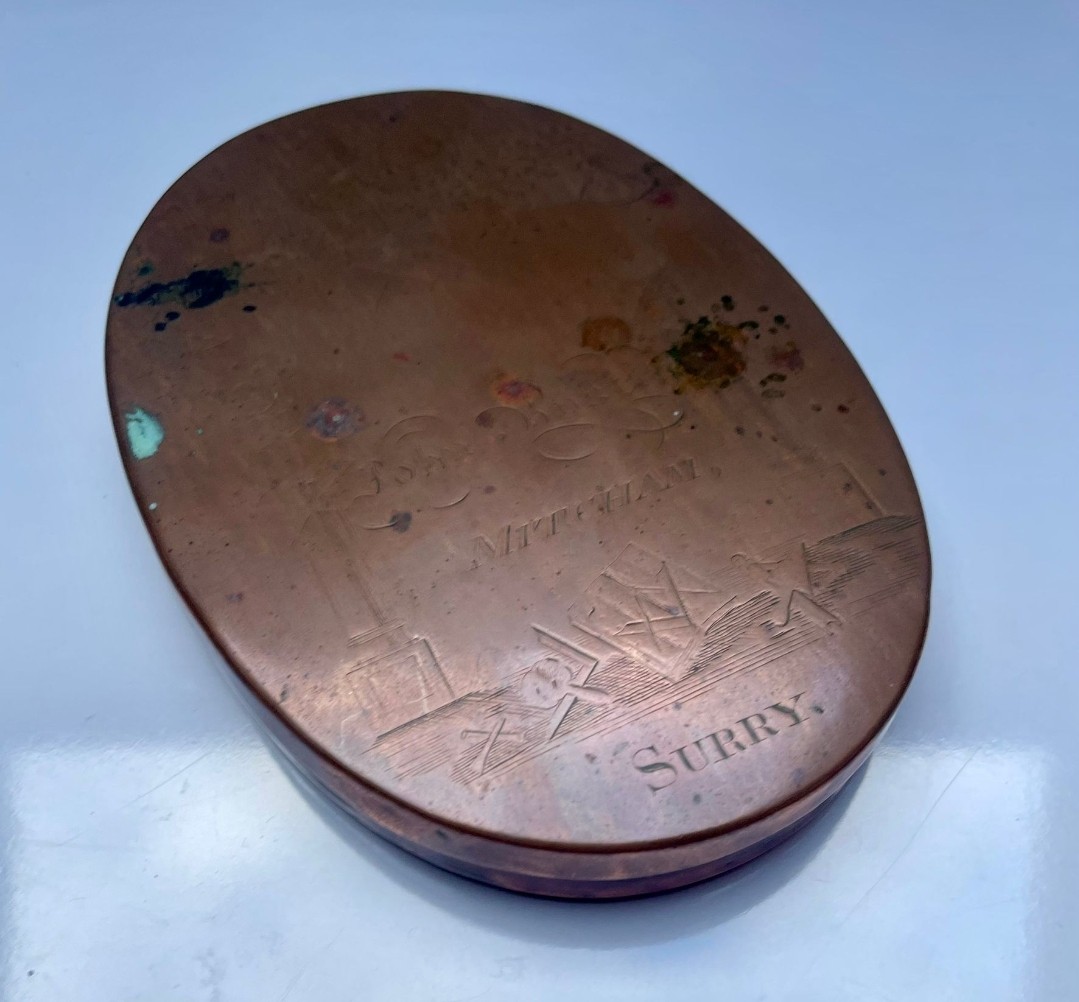 An antique engraved copper tobacco tin - 1800s
