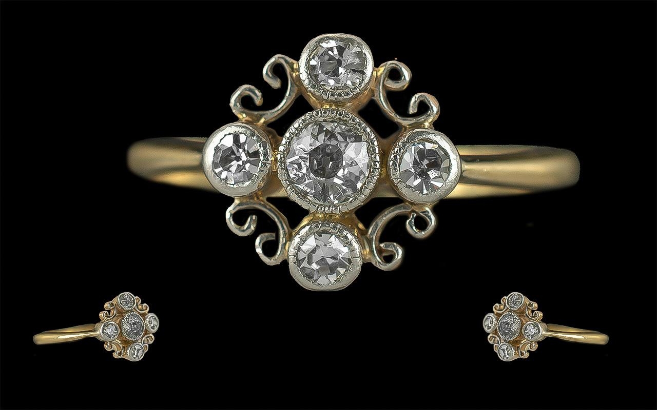 Edwardian Period 1902 - 1910 18ct Gold Diamond Set Petite Ring of Pleasing Form, With Full Hallmark to Interior of Shank, The Pave Set Round Faceted Diamonds of Good Colour, Ring Size L - M, Weight 1.9 grams.