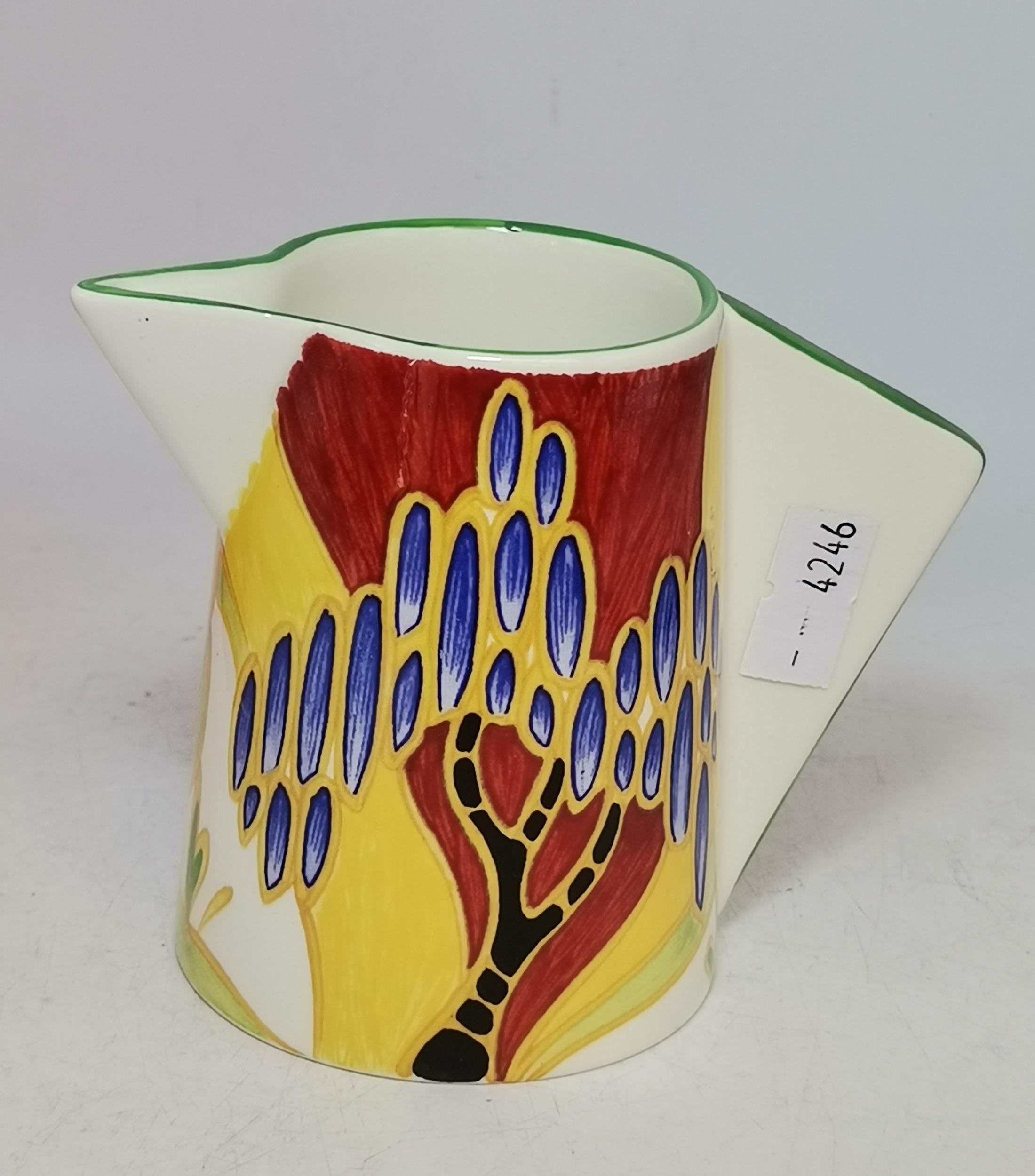 A Clarice Cliff Sugar bowl and jug in Bizarre pattern both i...