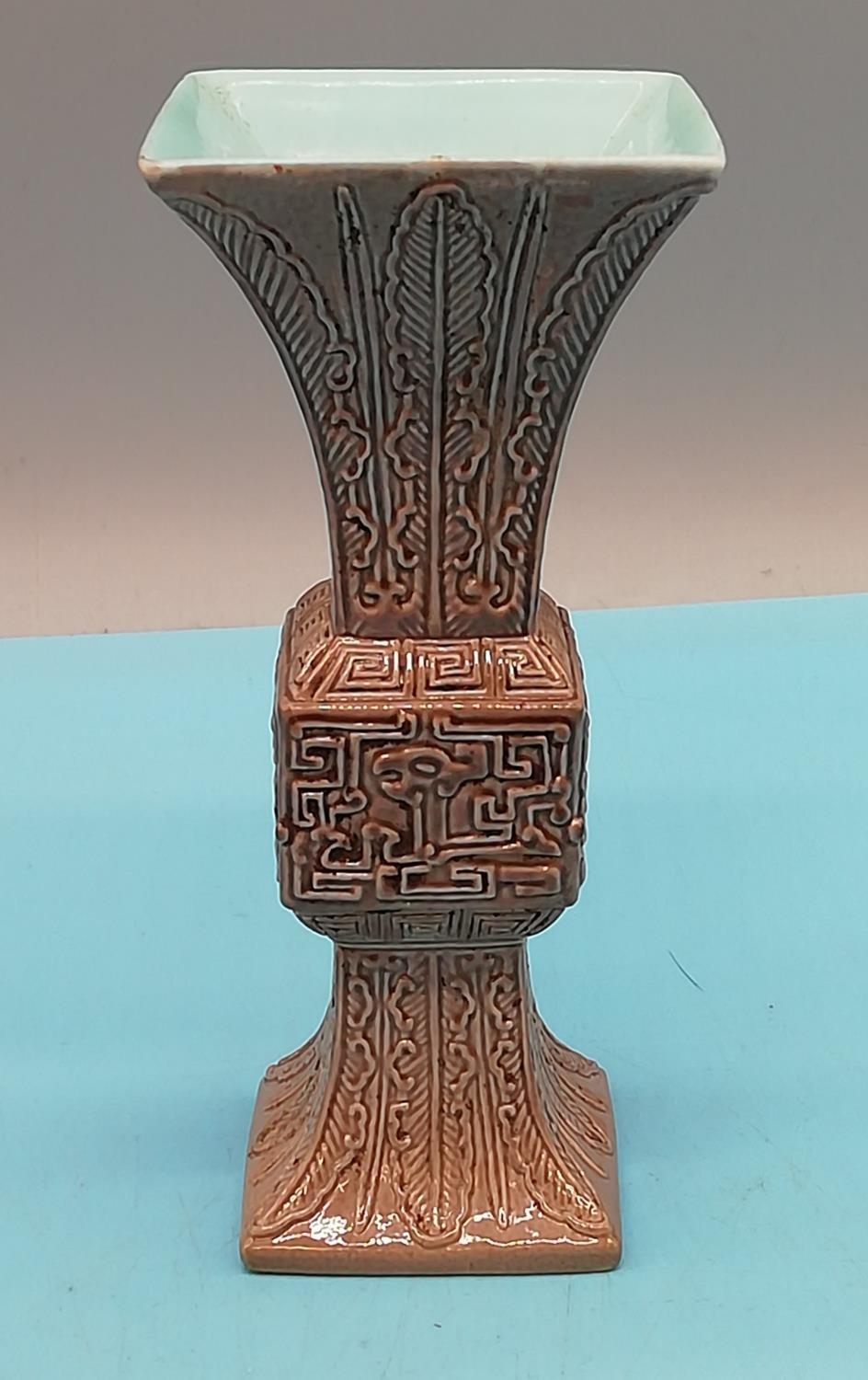 Chinese Qianlong Period Celadon 12cm Bud Vase. Marked to Base.