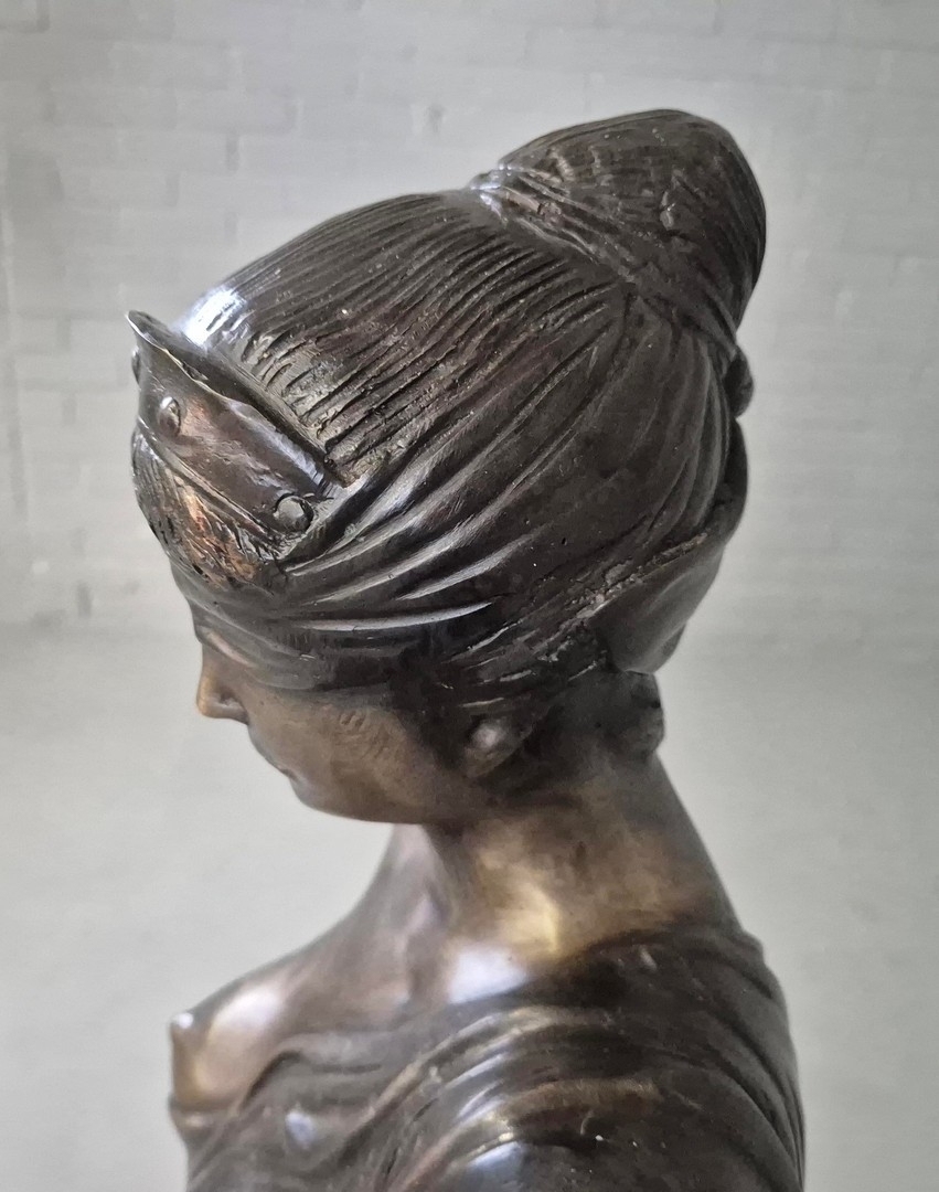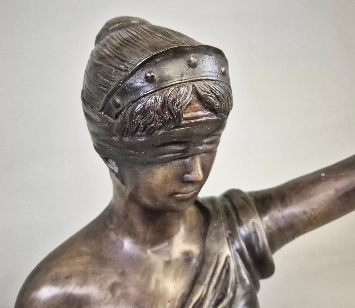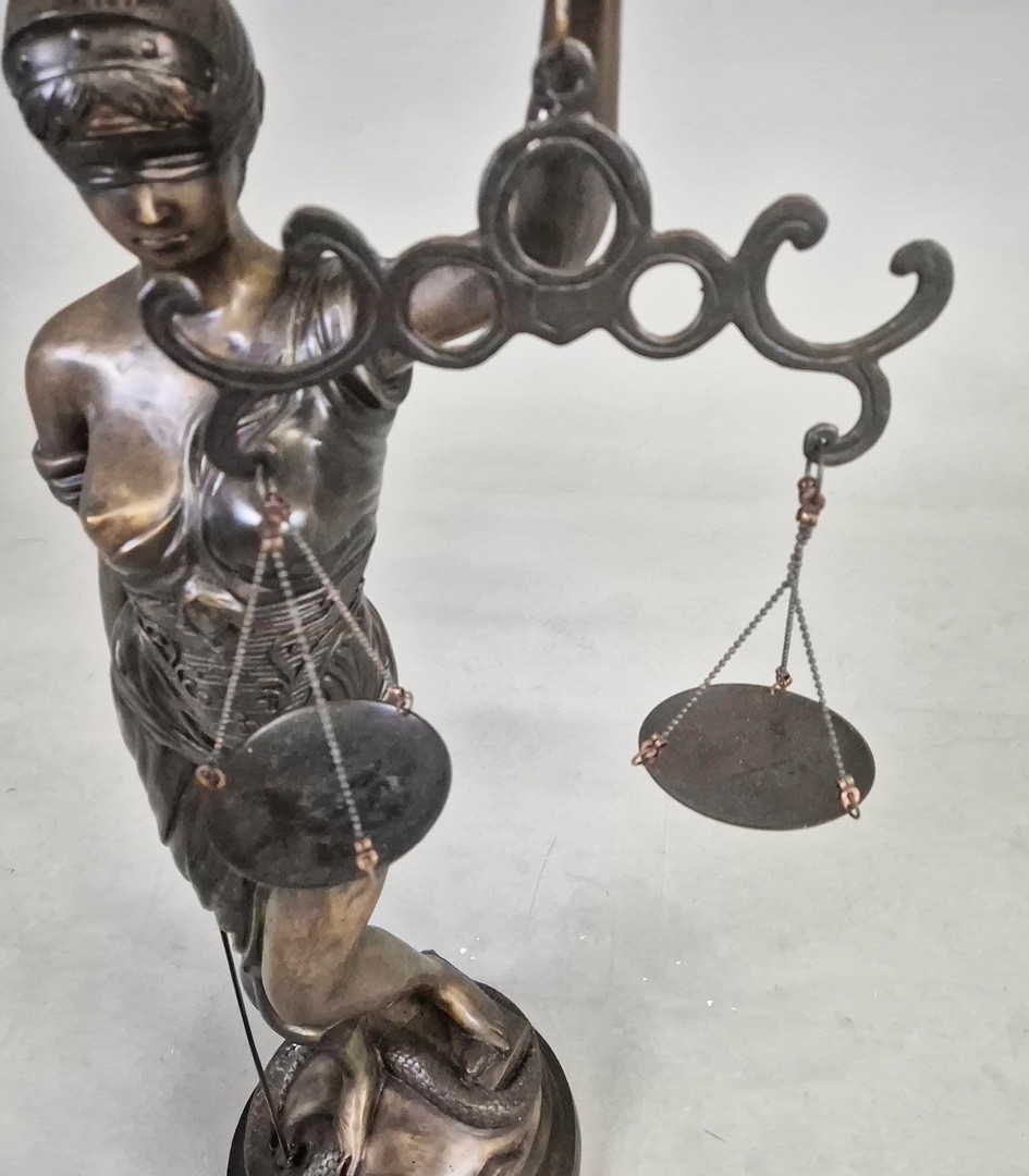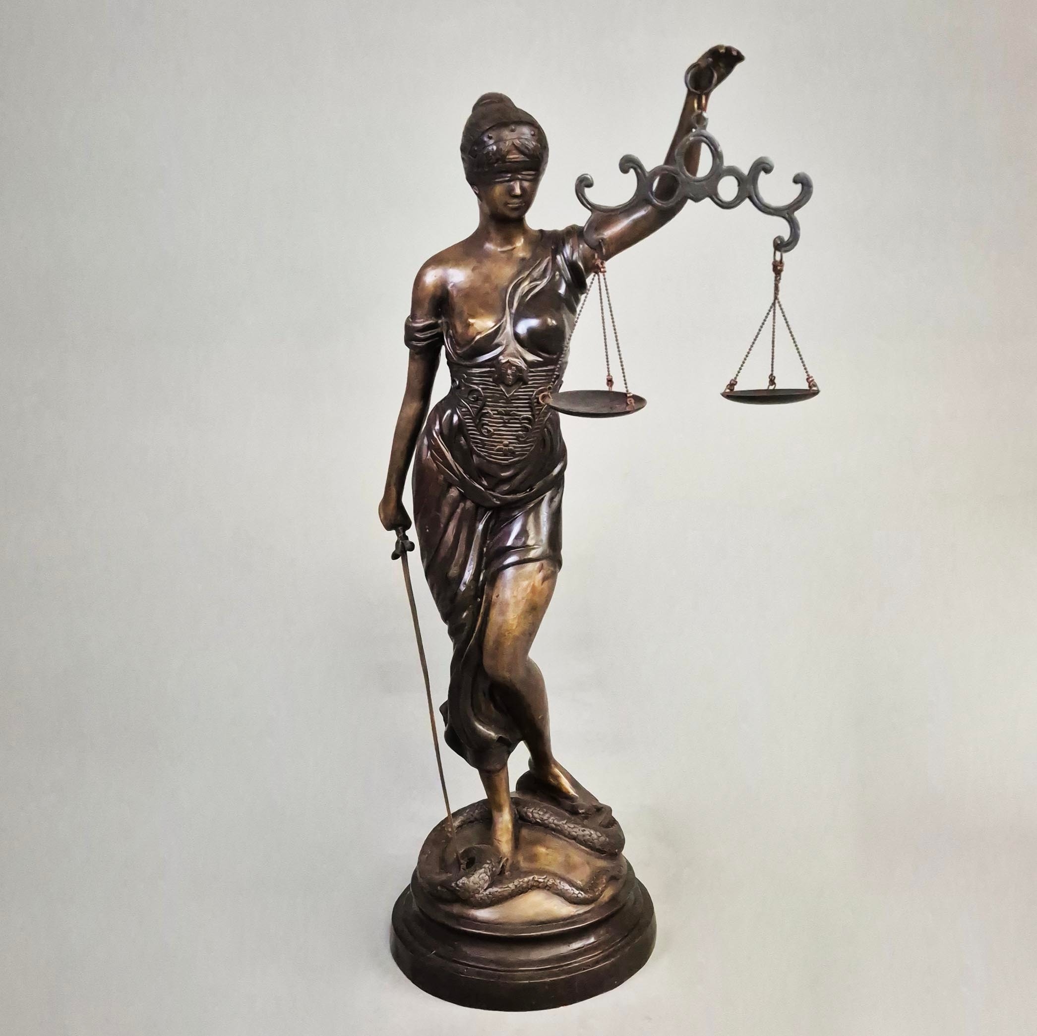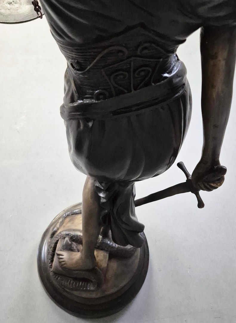 STUDY OF LADY JUSTICE SCULPTURE. cast metal, 118cm H approx.