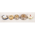 A collection of limited edition Halcyon Days boxes. Comprising Faberge Surprise Silver Box no. 131 of 250, Lady Hamilton enamel box no. 228 of 500, 1985 Surprise Easter box no. 100 of 250, Elizabeth of Glamis enamel box no. 23 of 250, 1986 Surprise Easter box no. 28 of 250, all with certificates.