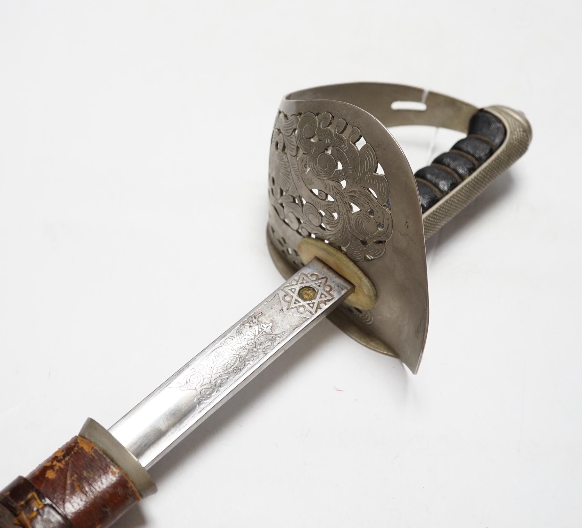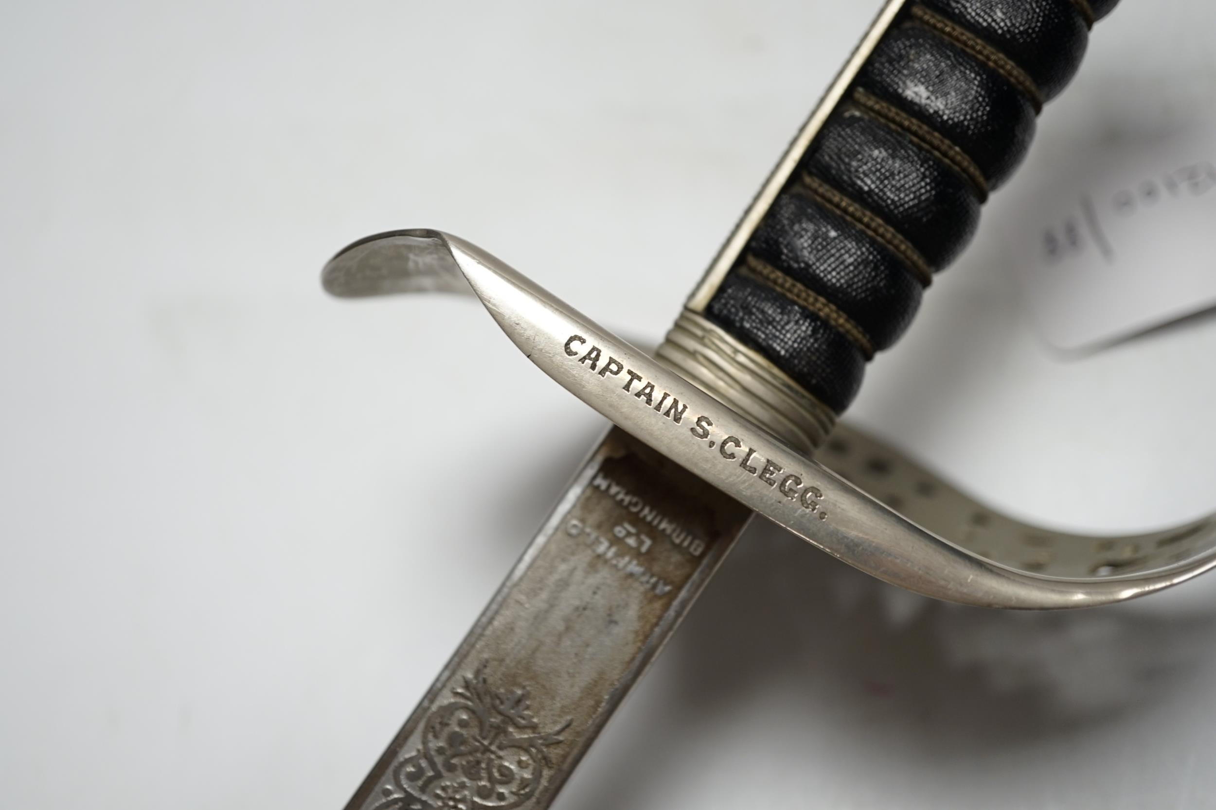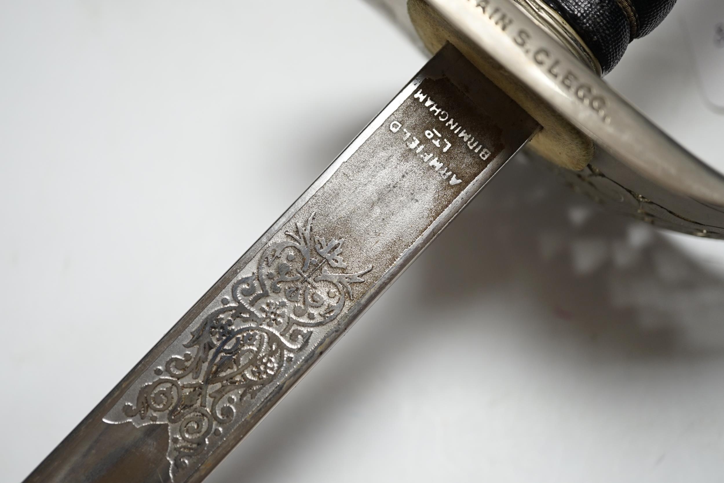 A George V officer's sword, manufactured by Armfield Ltd and engraved Captain S.Clegg to hilt, with scabbard