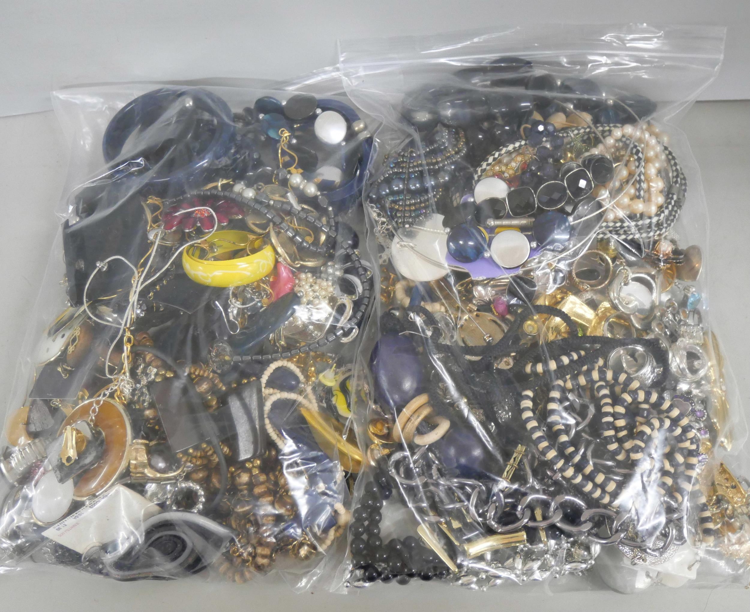 Two large bags of mixed costume jewellery