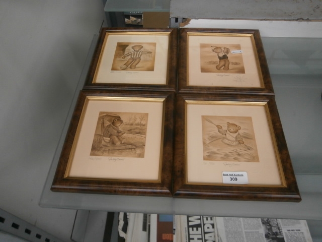 Four limited edition sporting bears prints