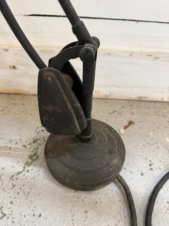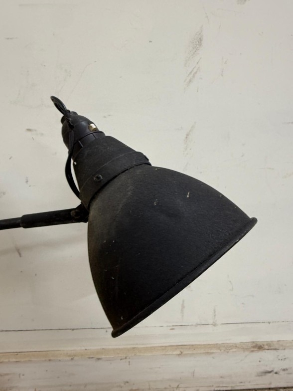A black industrial style canter lever desk lamp