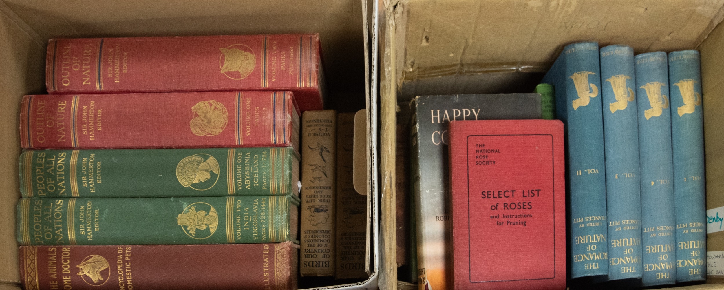 David Seth-Smith - Birds of Our Country & of the Dominions Colonies & Dependencies, pub Hutchinson. Frances Pitt - The Romance of Nature, 4 vol, pub Country Life, together with a group of Natural History books and a box of unrelated Non-Fiction books including an 8 Vol set of books pub Pitman, Brickwork, Concrete and Masonry. Contents of three box