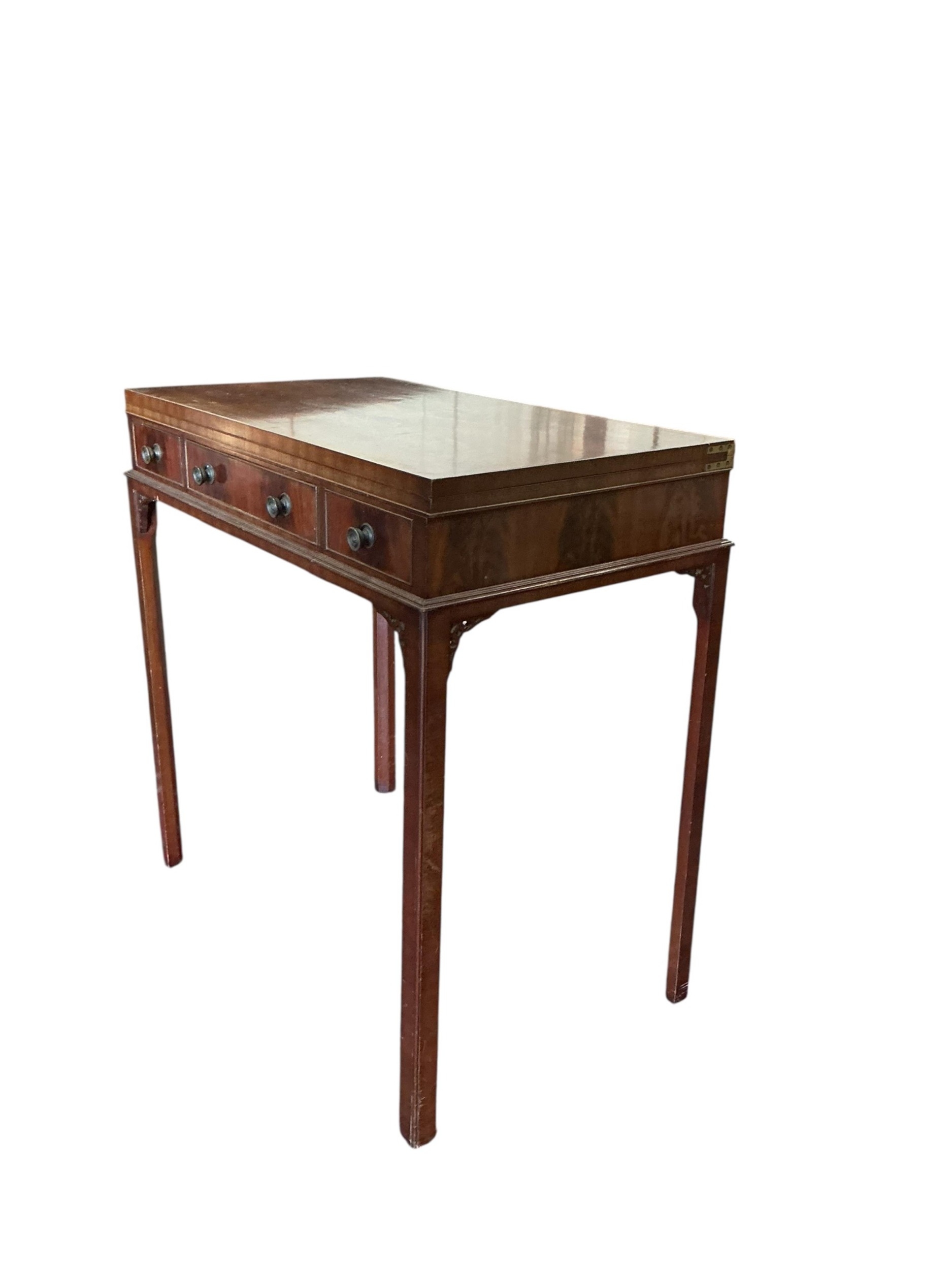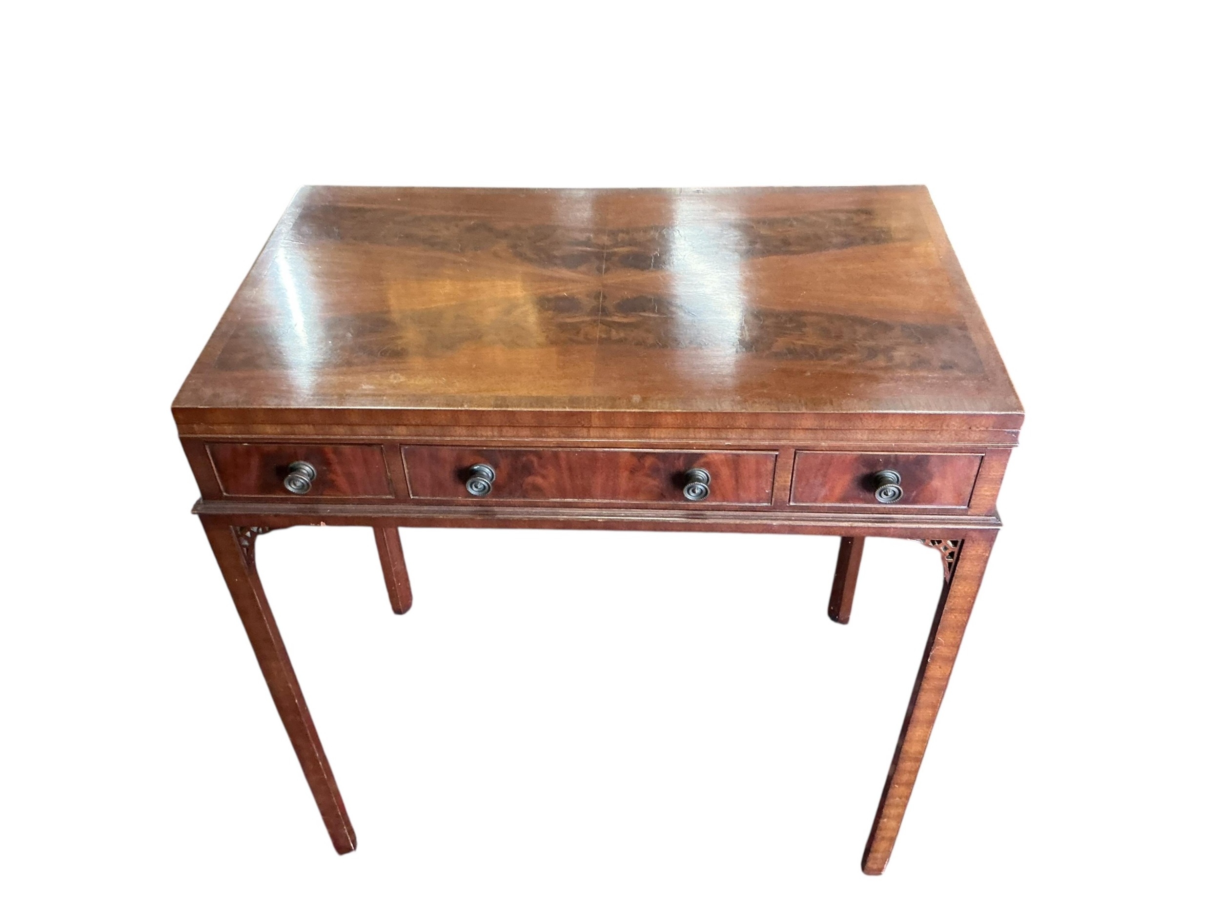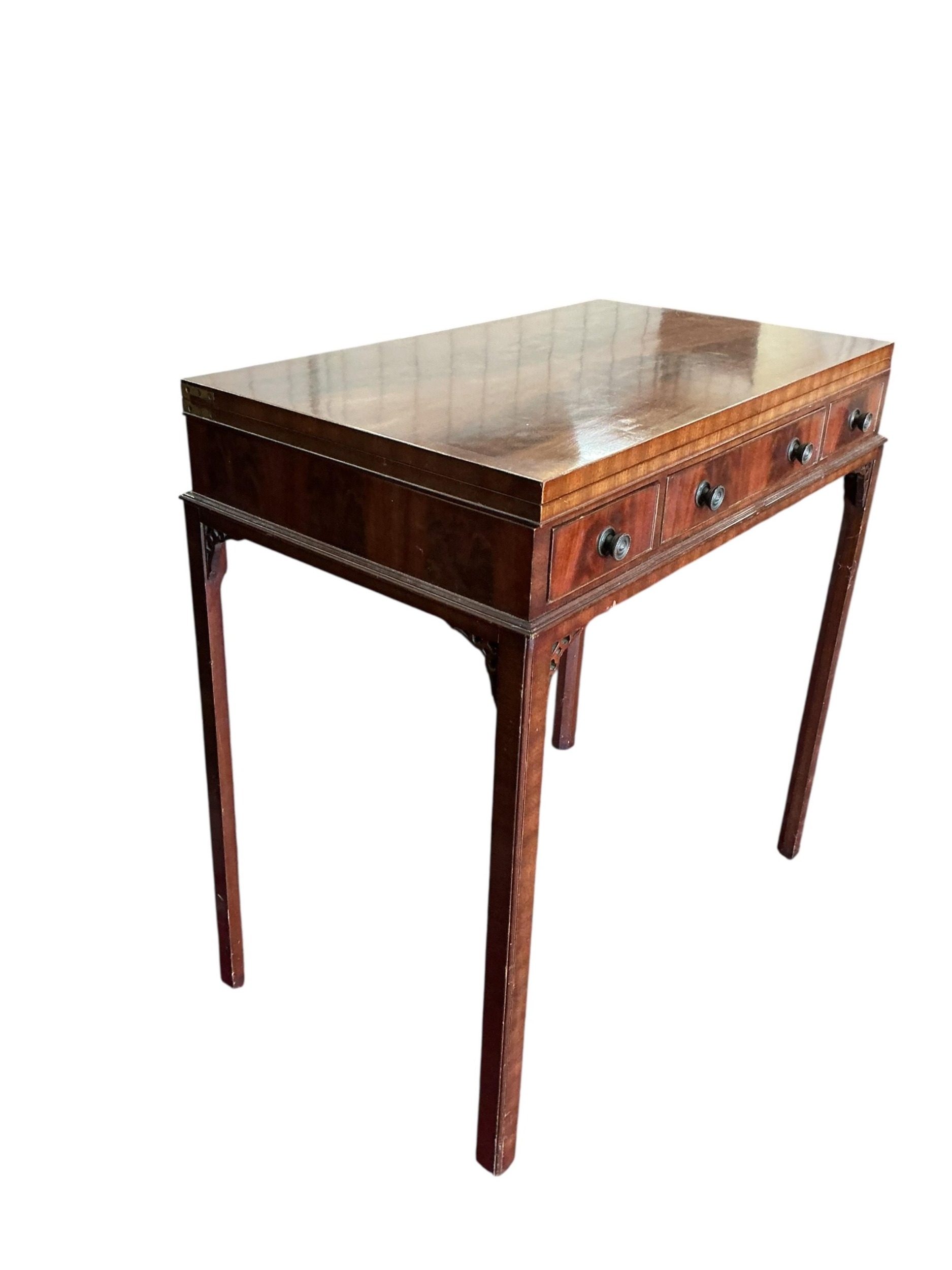 A Chippendale Revival style card table (sold by Maple & co), width 77cm, depth 45cm, height 78cm