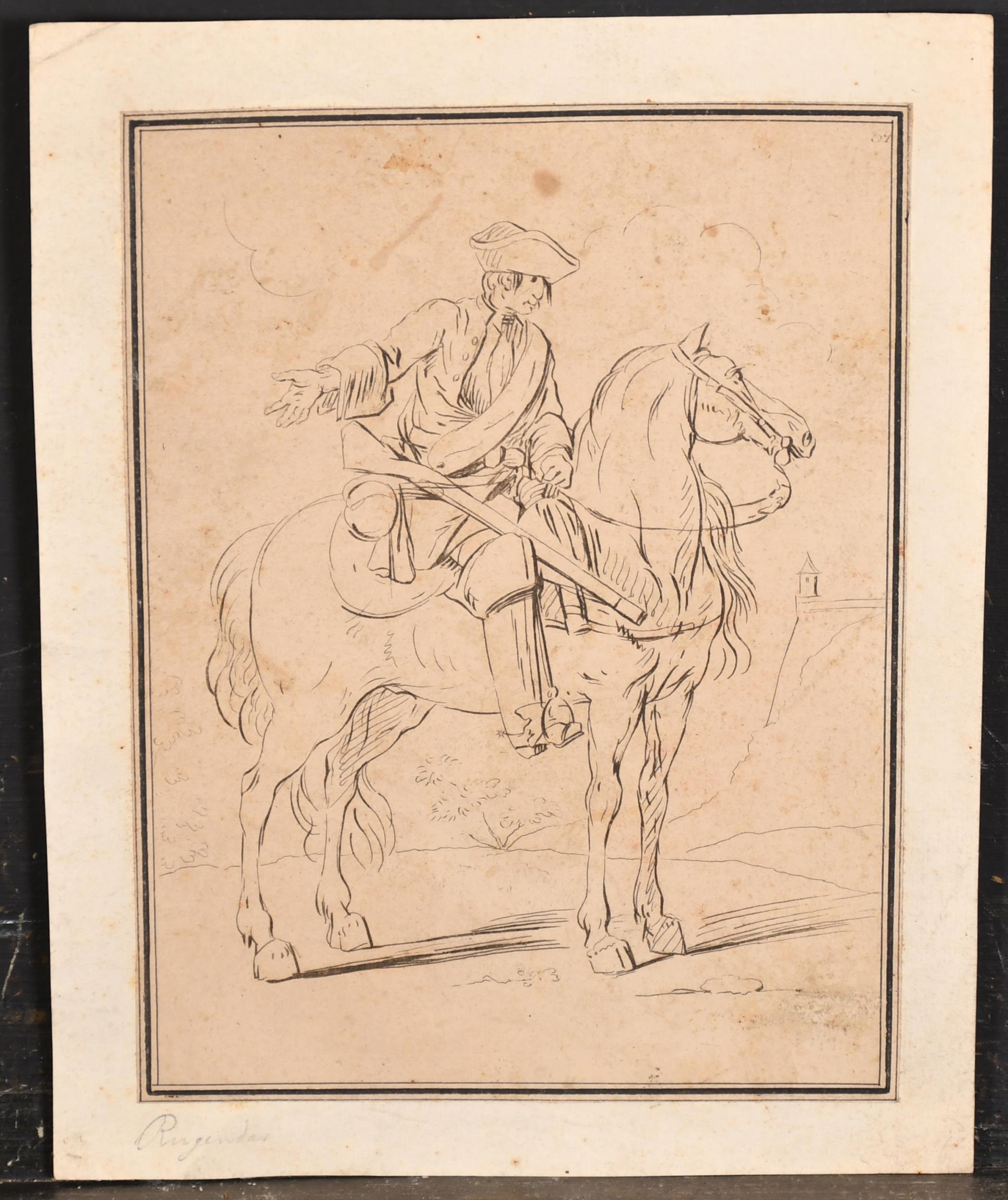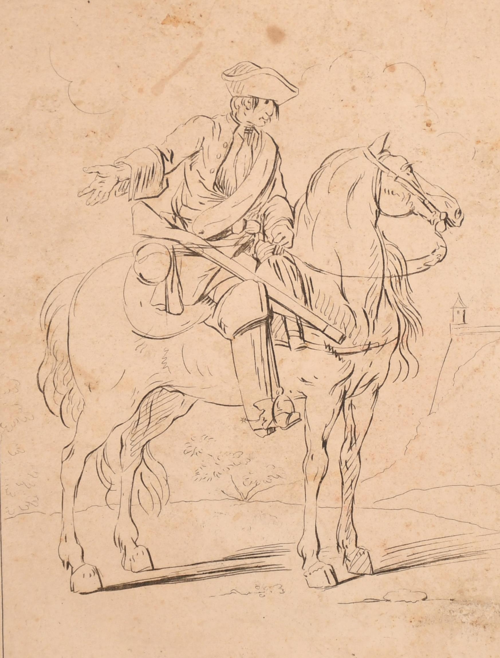 Manner of Georg Philipp Rugendas I (1666-1742) German. A Man on Horseback, Ink, unframed 8.5" x 6.4" (21.6 x 16.2cm)