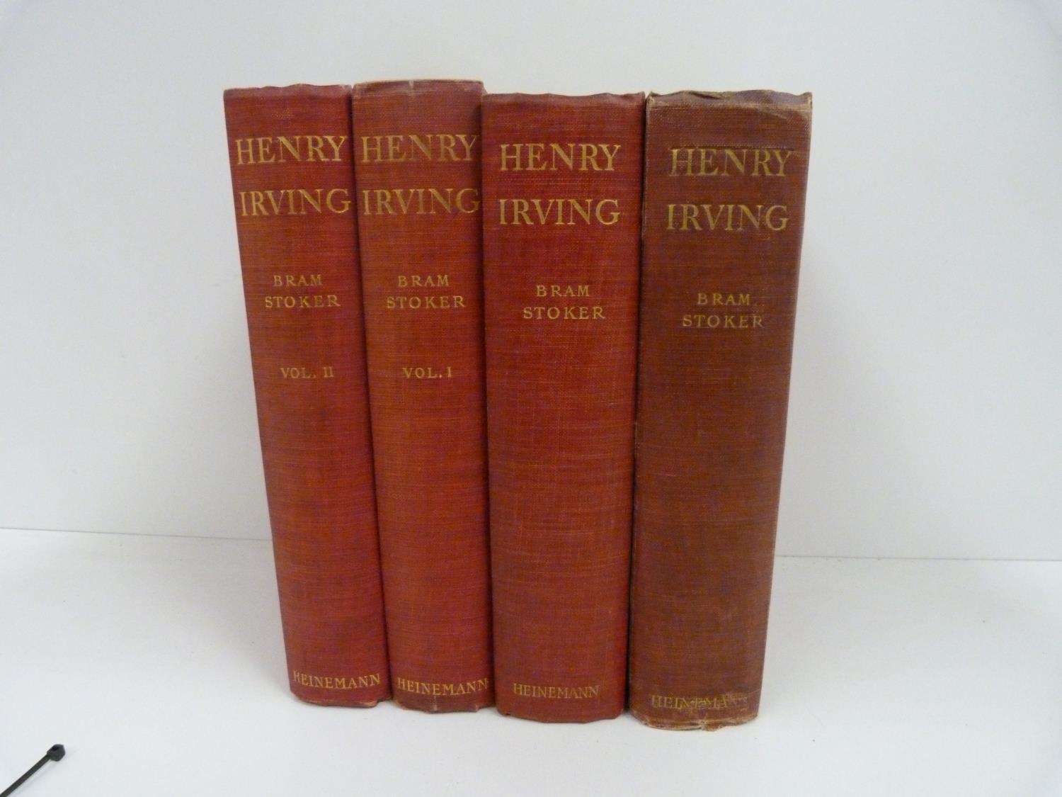 STOKER BRAM. Personal Reminiscences Of Henry Irving. 2 vols. Frontis & illus. Orig. red cloth gilt. 1st edition, 1906; also the 2 vol. 2nd edition, 1907. (4).