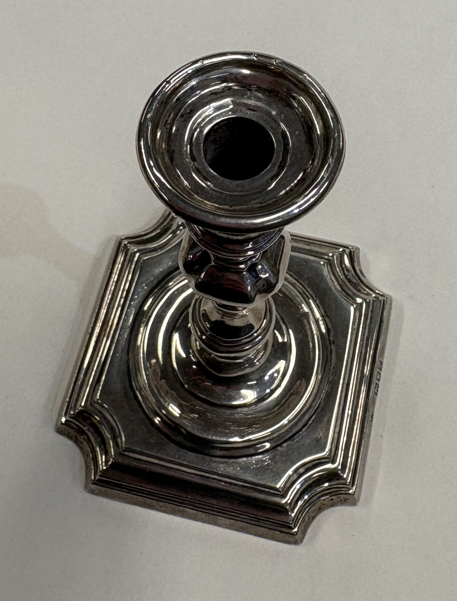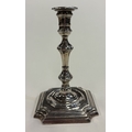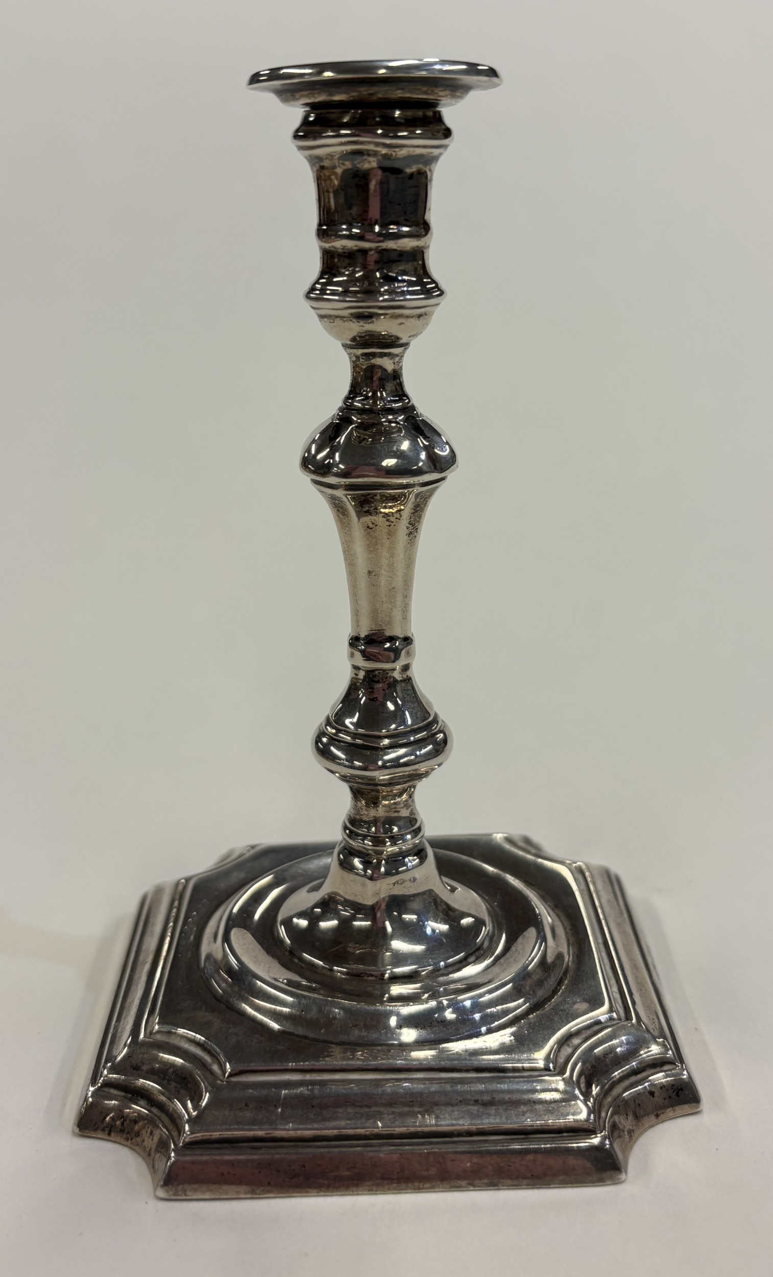 A silver taperstick on square base. London. By TS. Approx. 136 grams of gross weight. Est. £100 - £150.