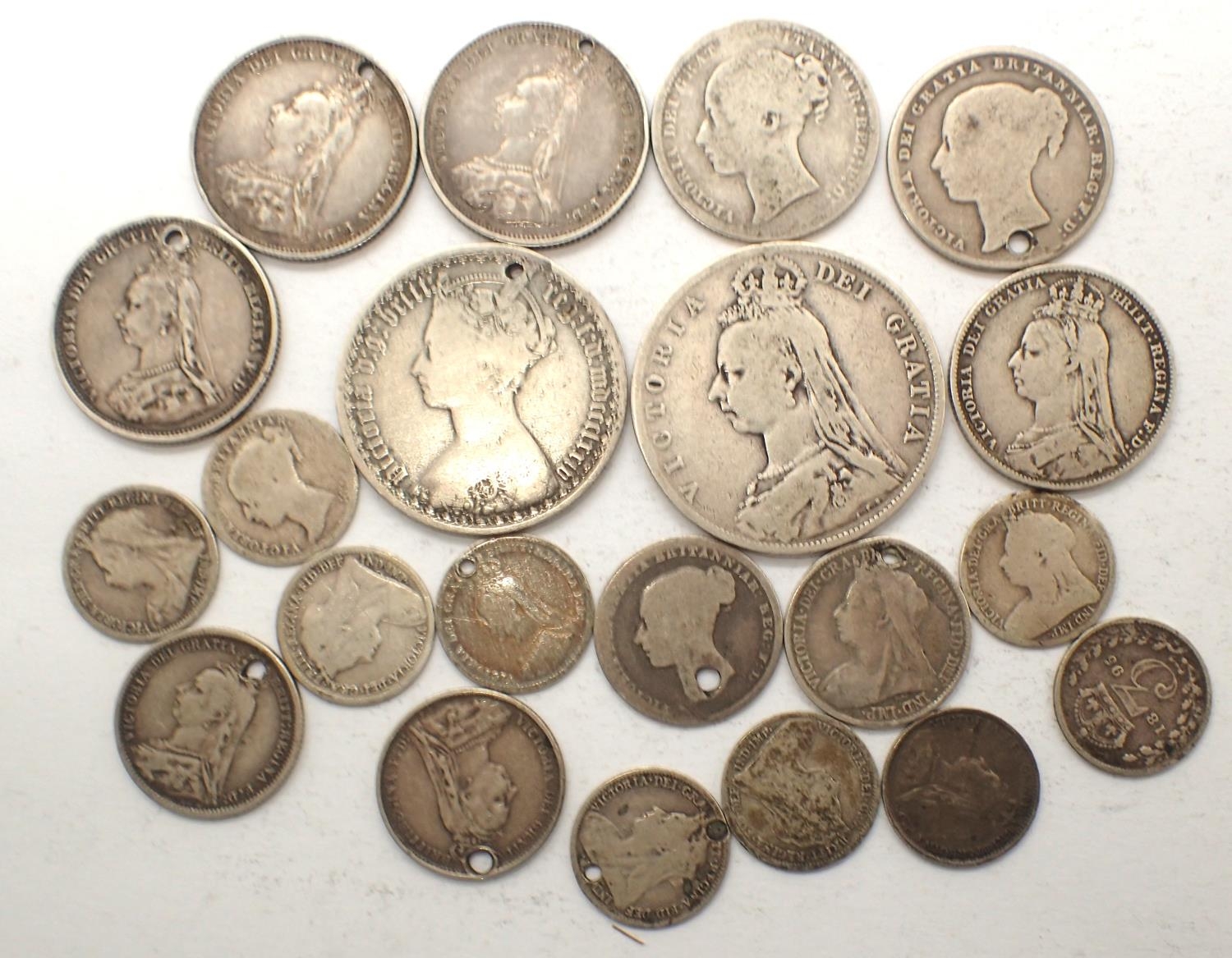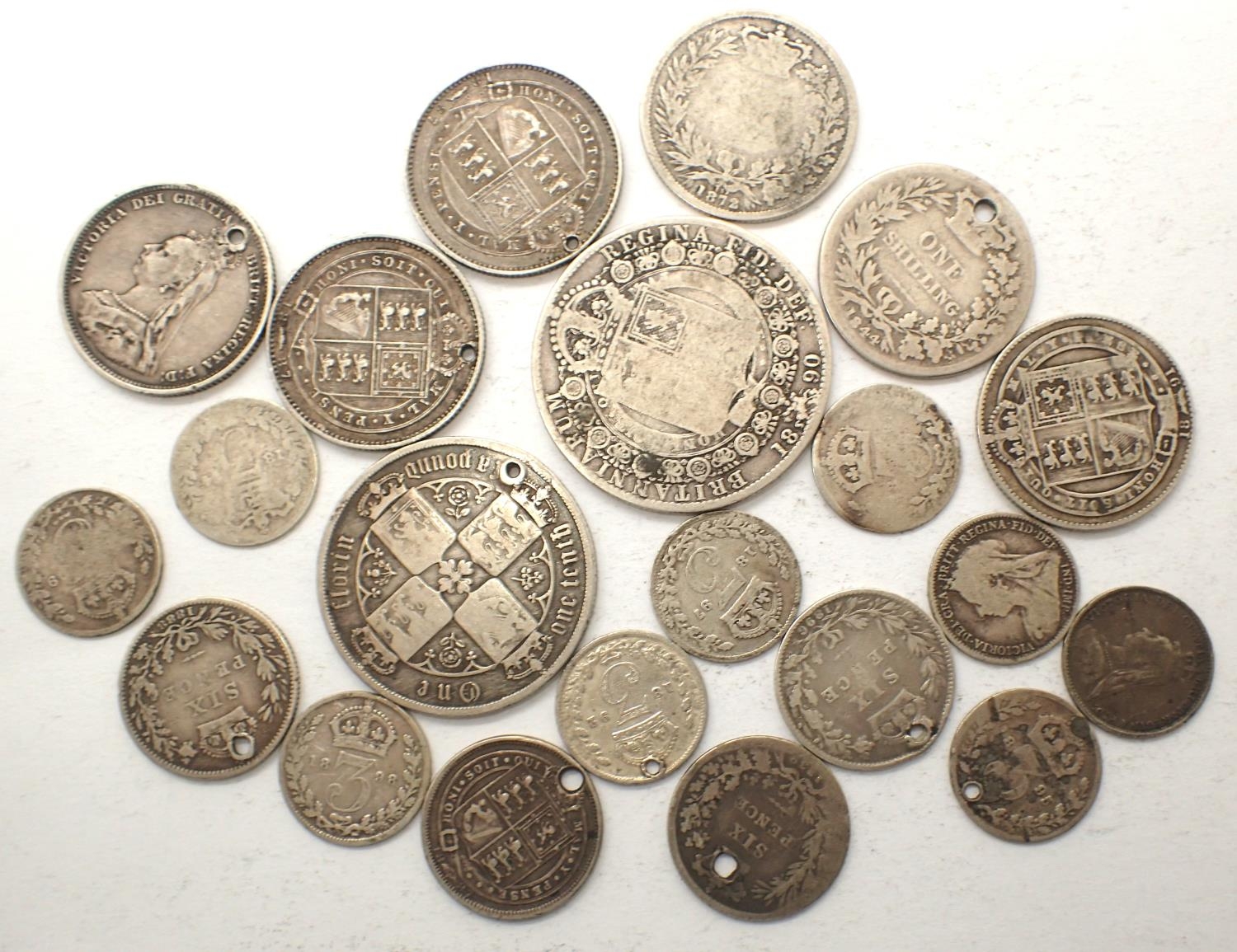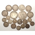 Twenty pre-1920 UK silver coins, upto half crown denomination, combined 80g. P&P Group 0 (£5+VAT for the first lot and £1+VAT for subsequent lots)