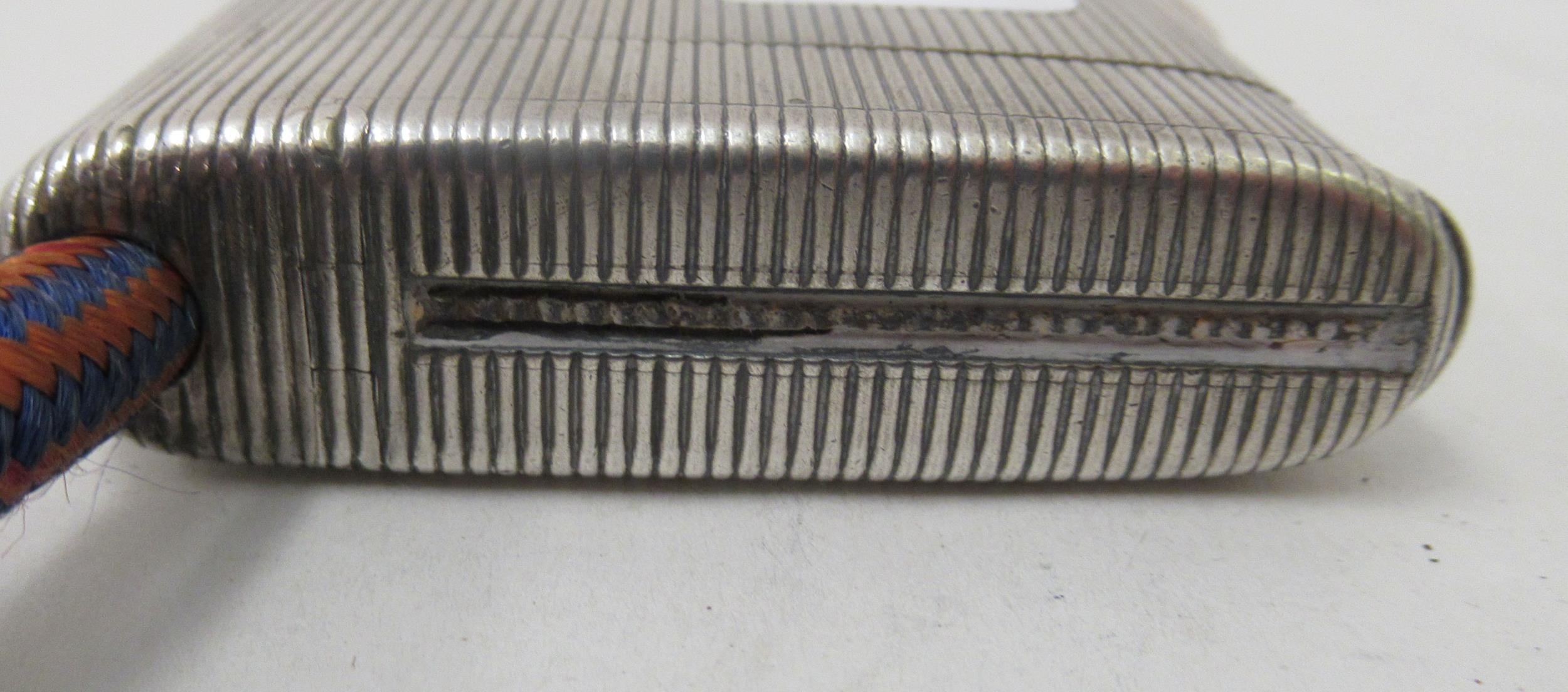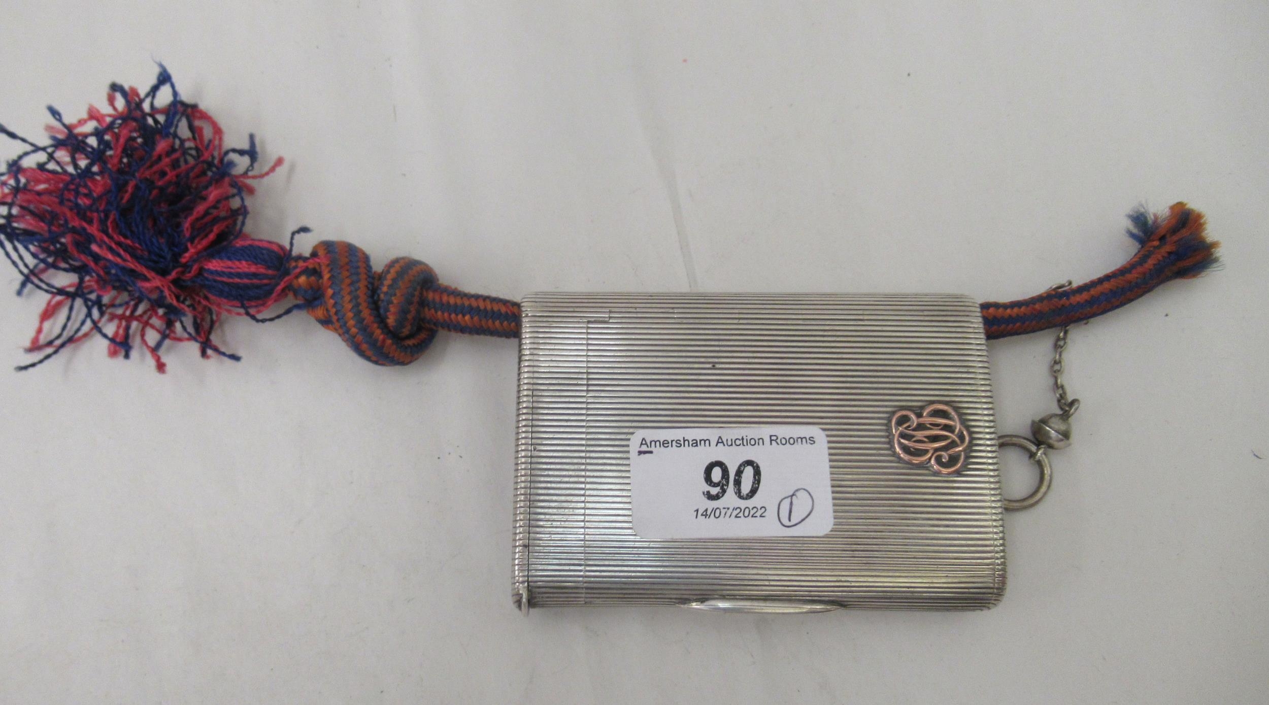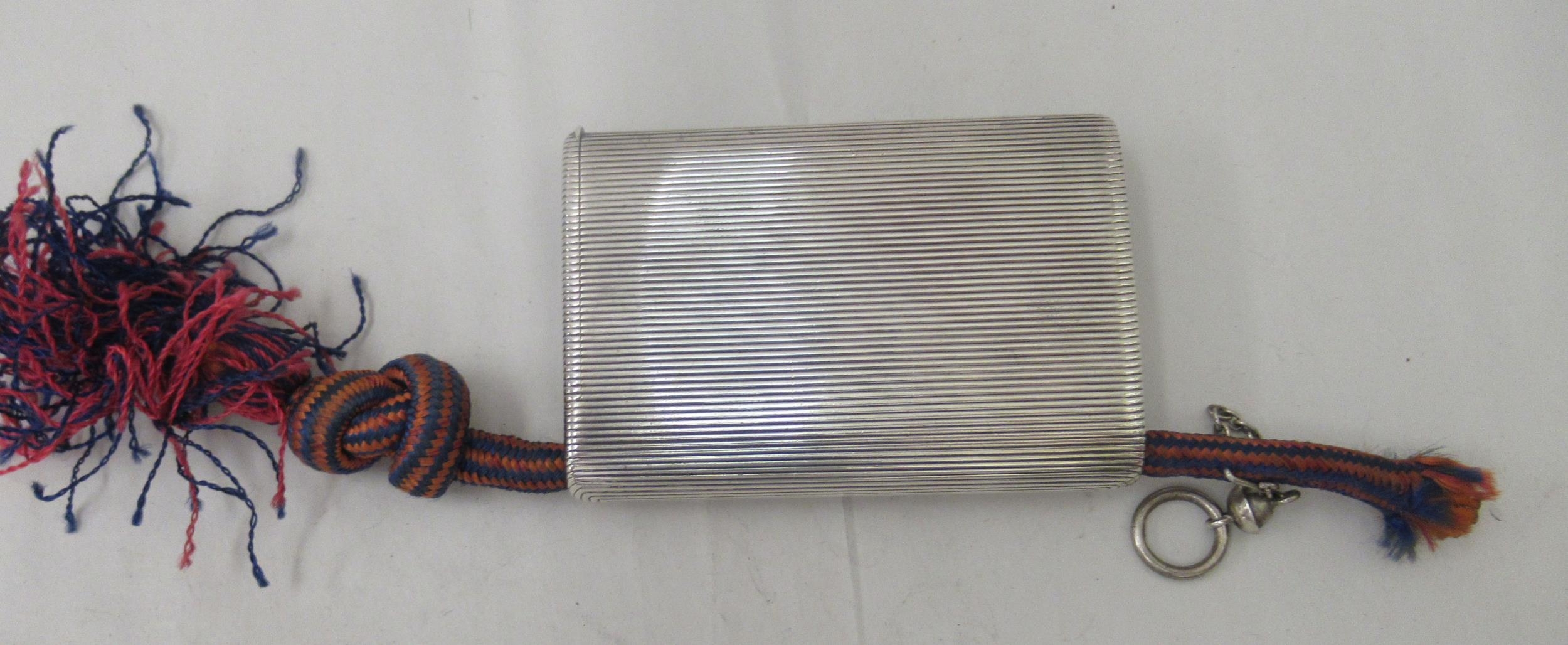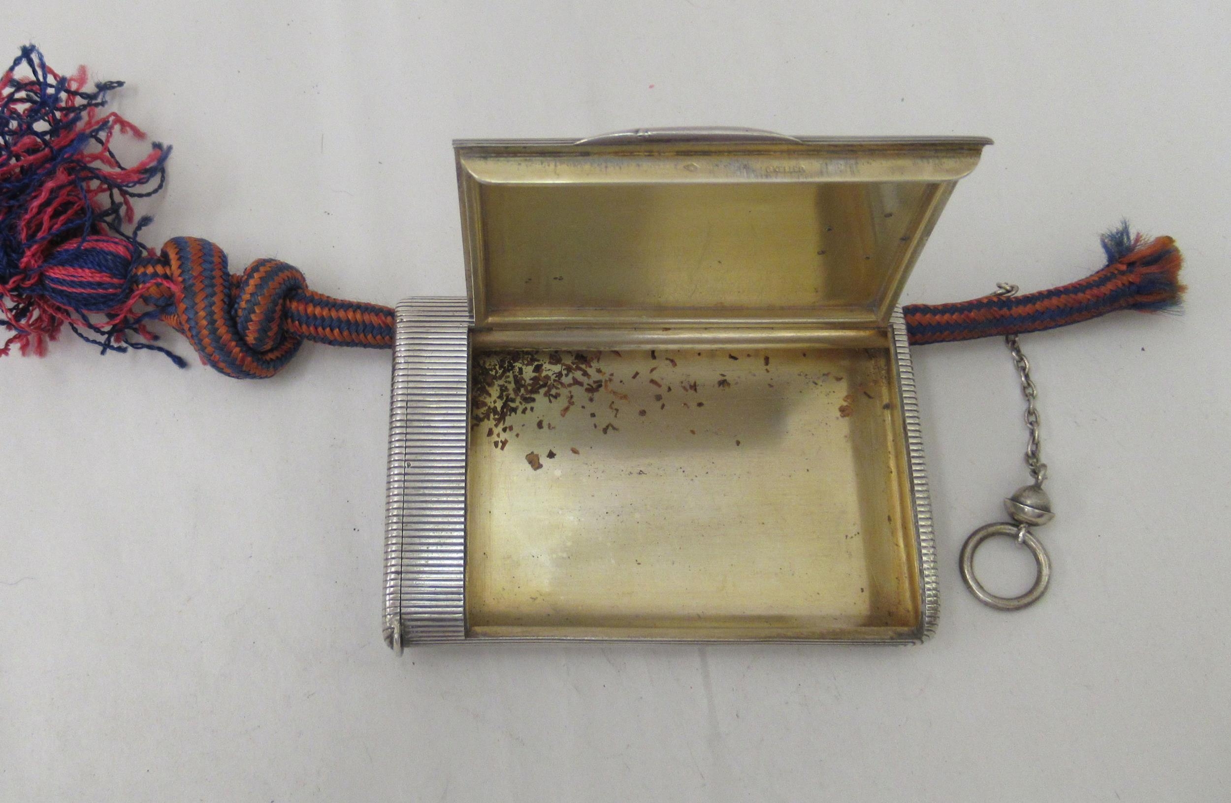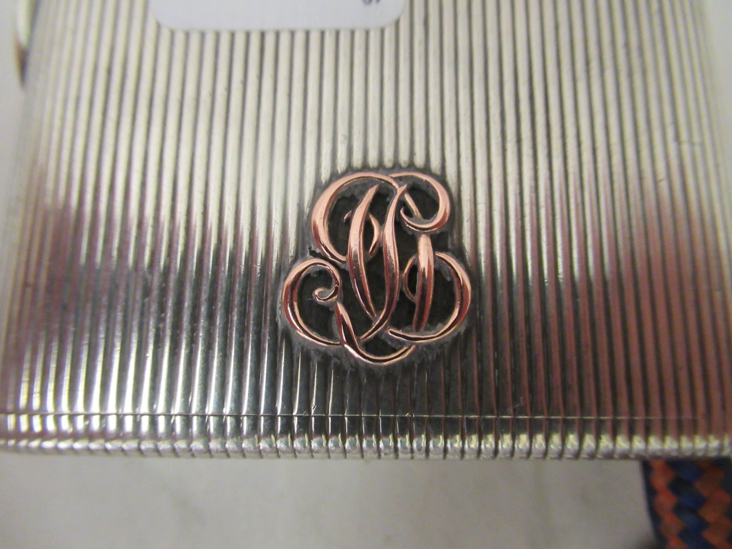 An early 20thC G Keller French silver coloured metal cigarette case with a ribbed body and hinged lid bears an impressed makers mark