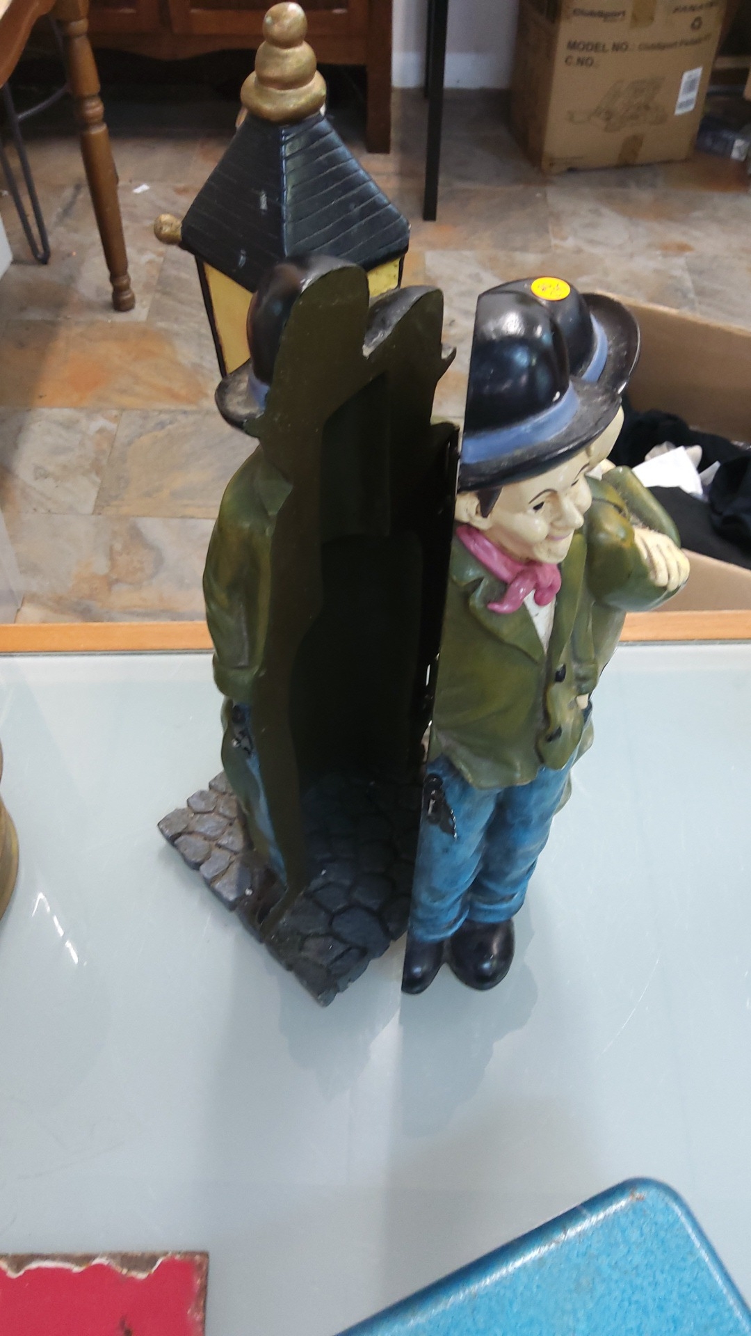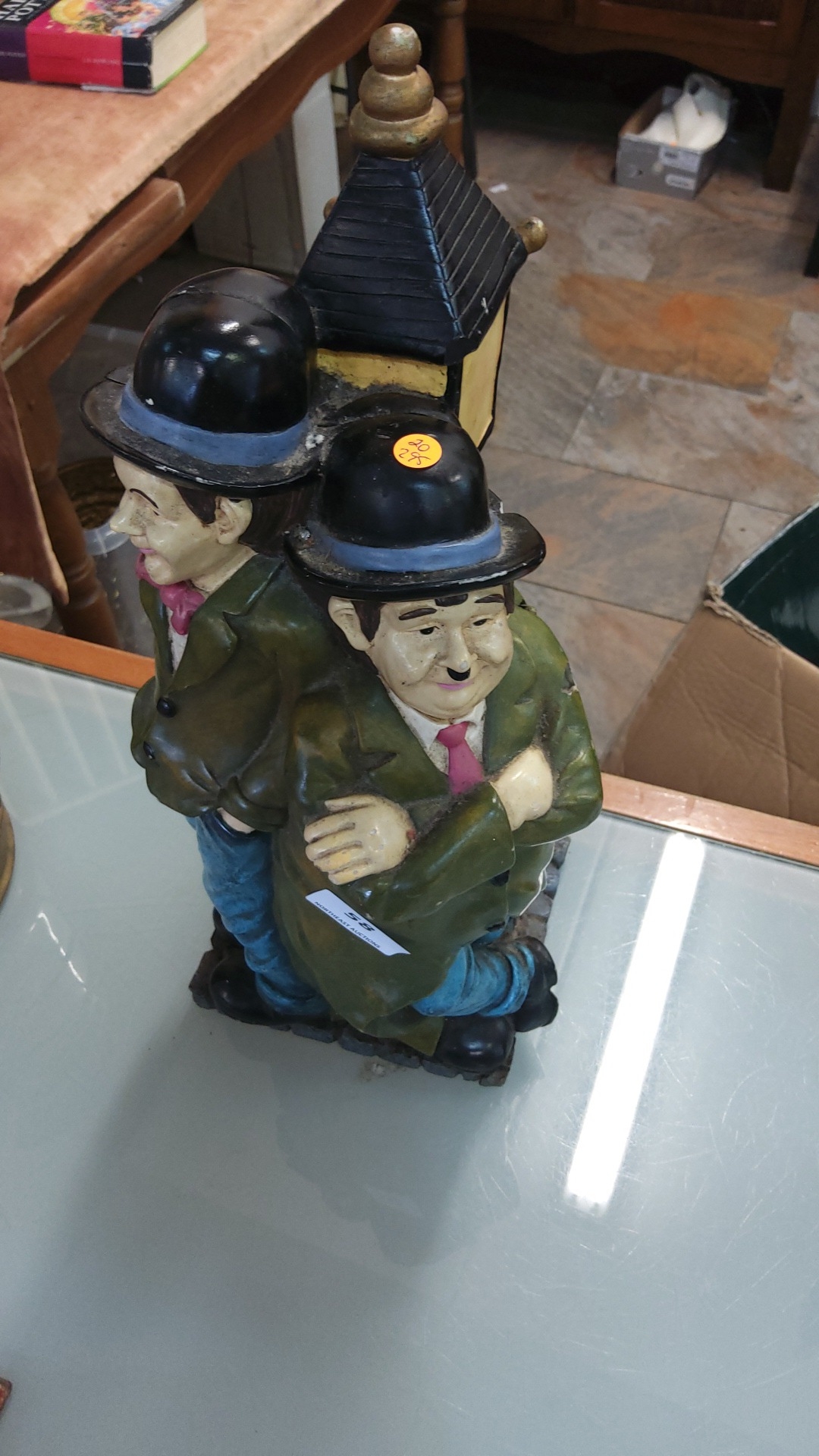 Painted heavy resin Laurel & Hardy wine bottle holder