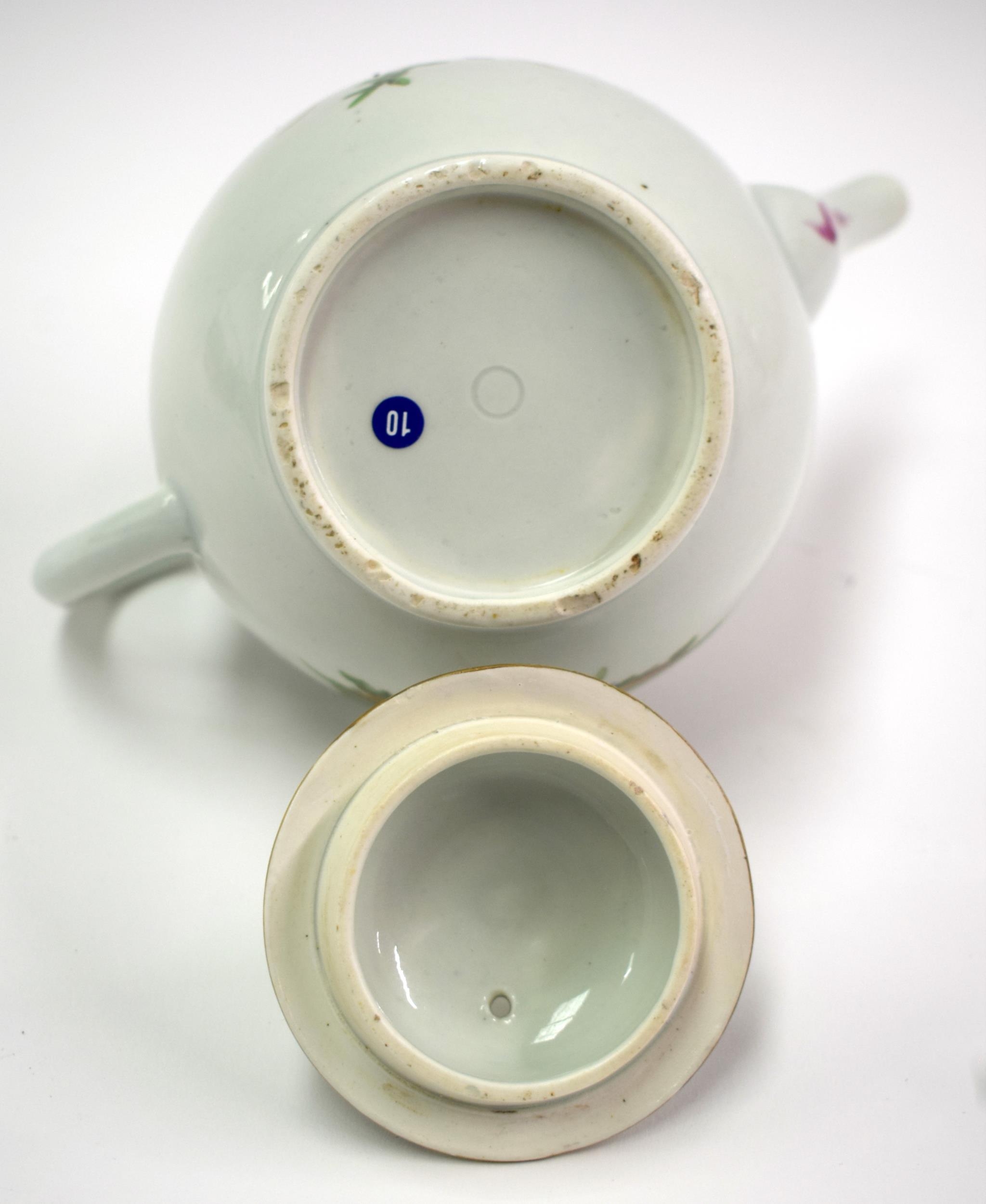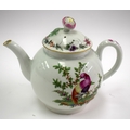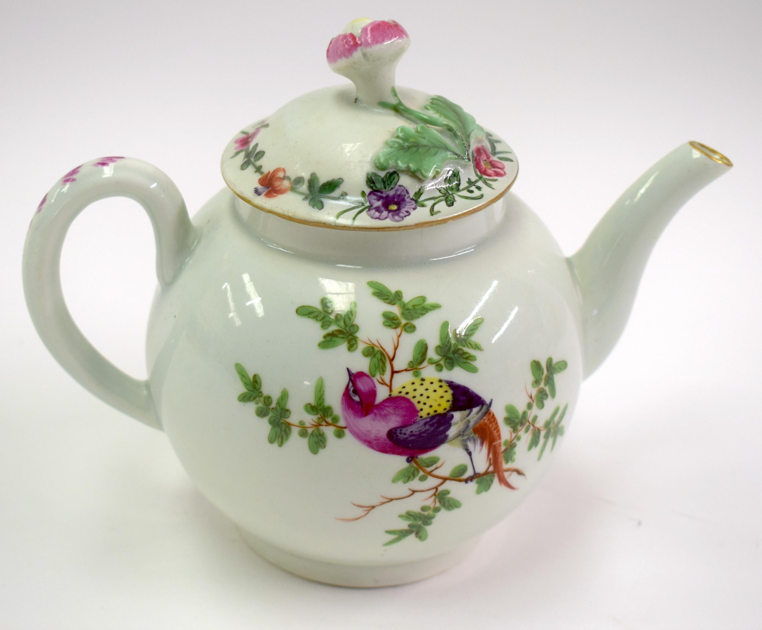 18th century Worcester teapot and cover, the teapot painted with a bird perched on a branch, the cover with a chain of flowers. 14 cm high