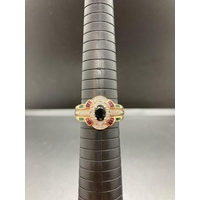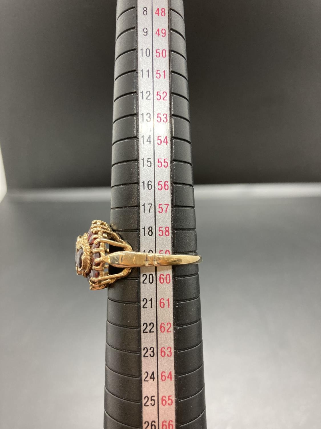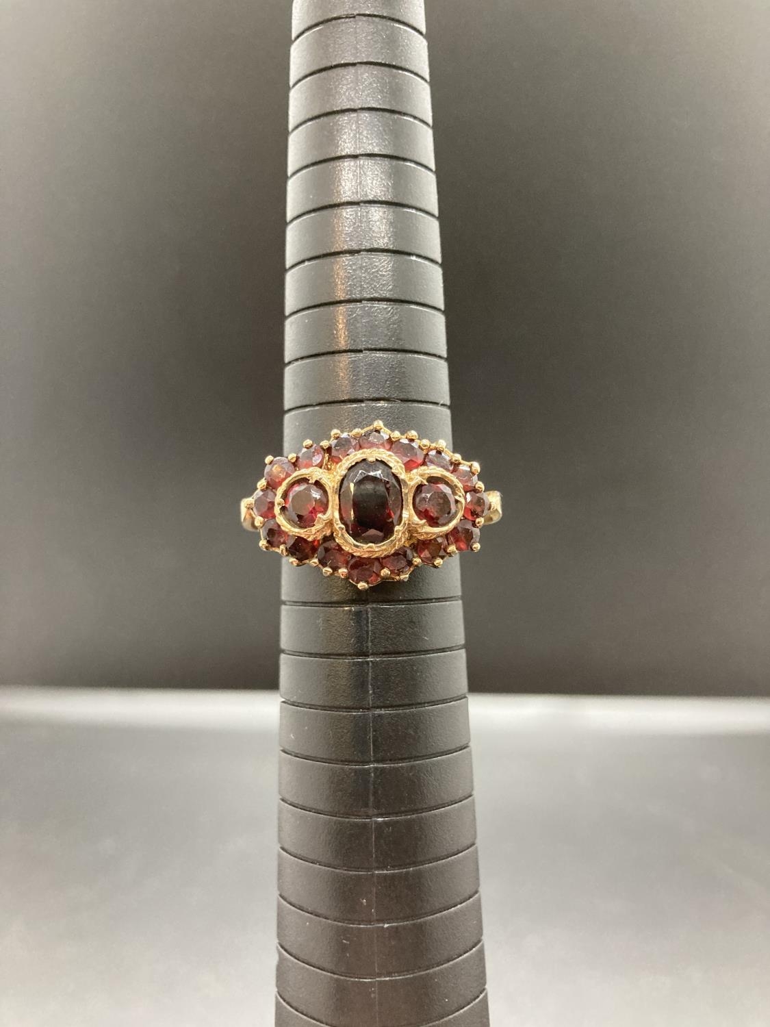A hallmarked 9ct gold garnet cluster ladies ring - size R ½, gross weight 5.6 grams