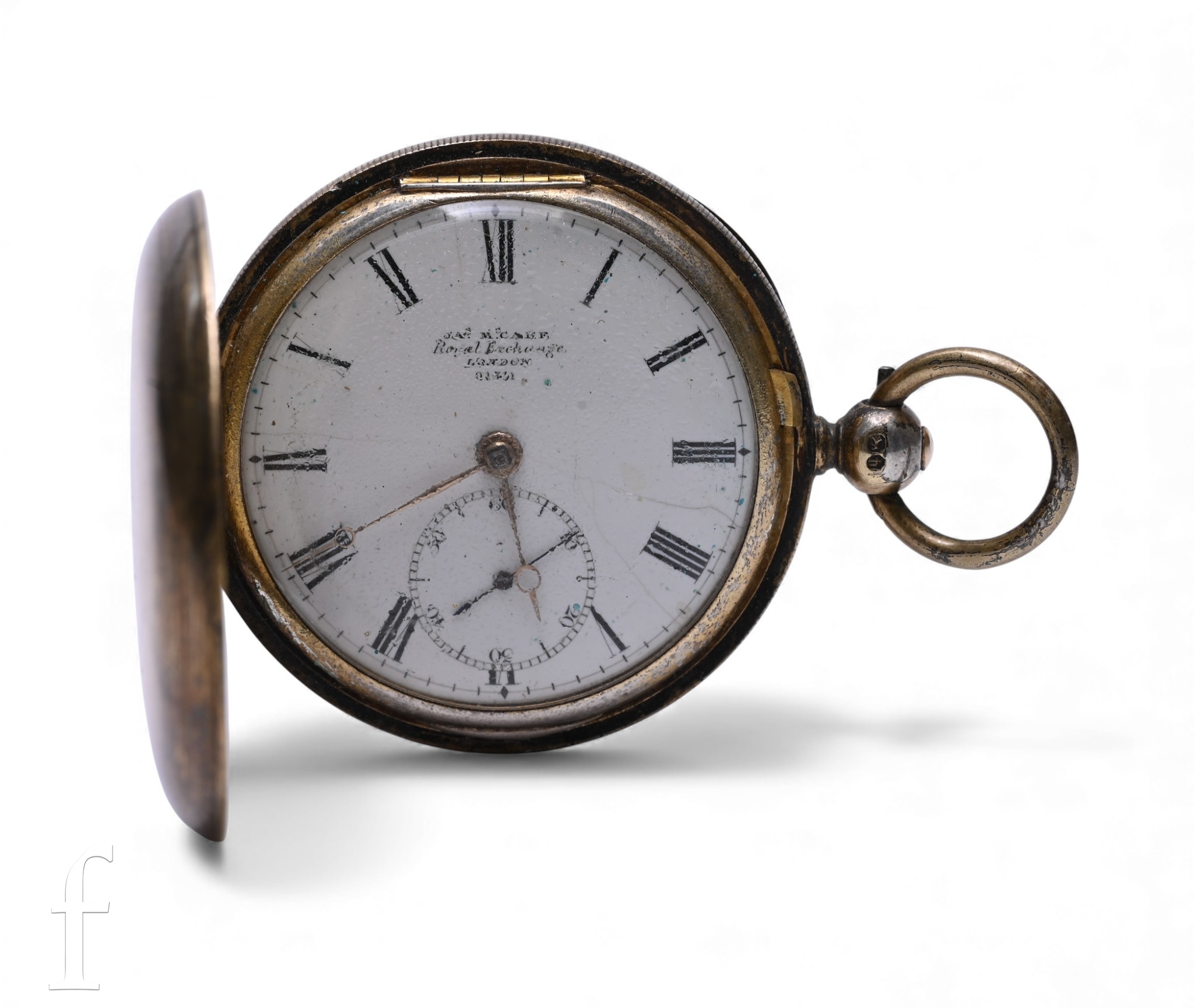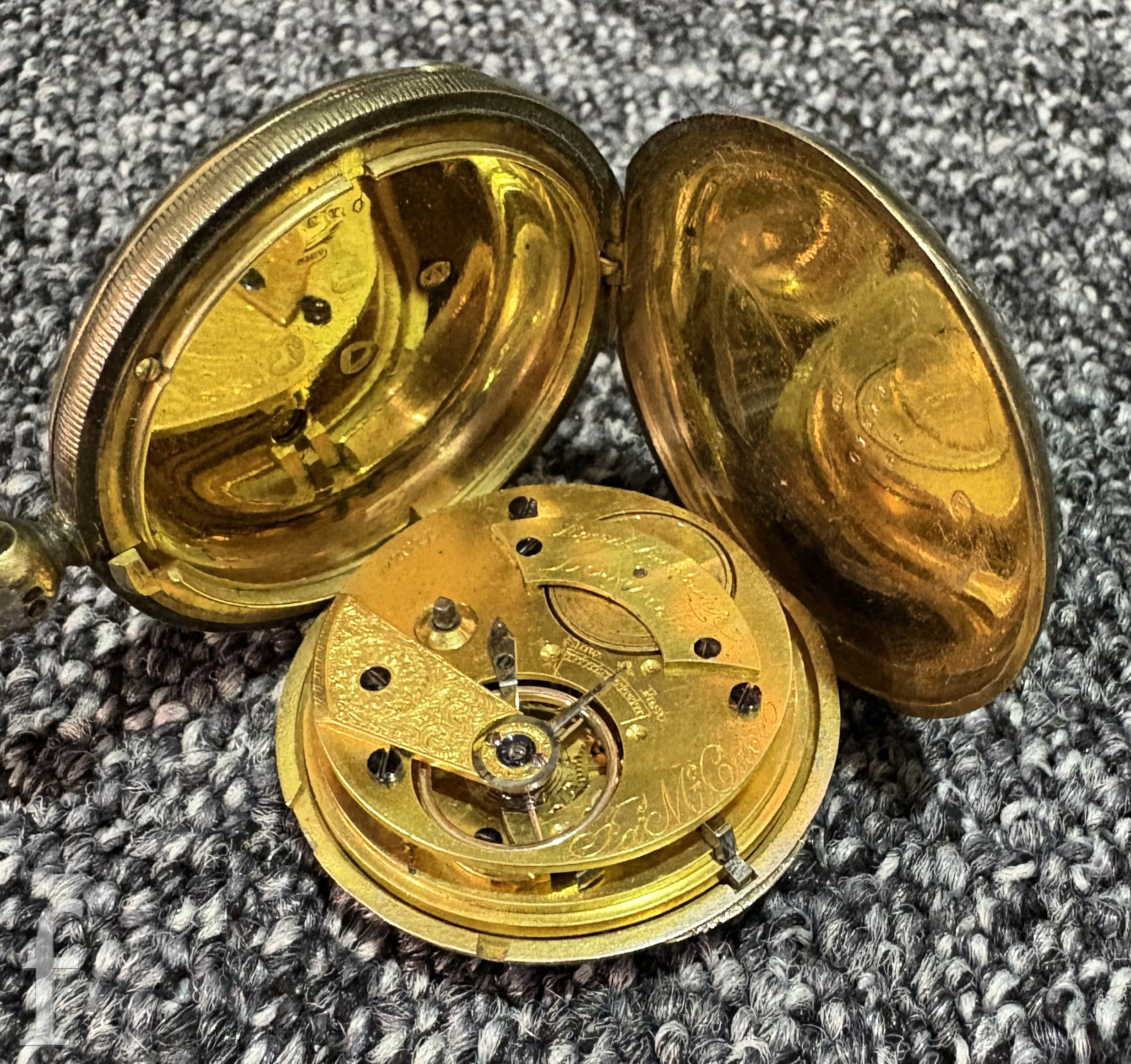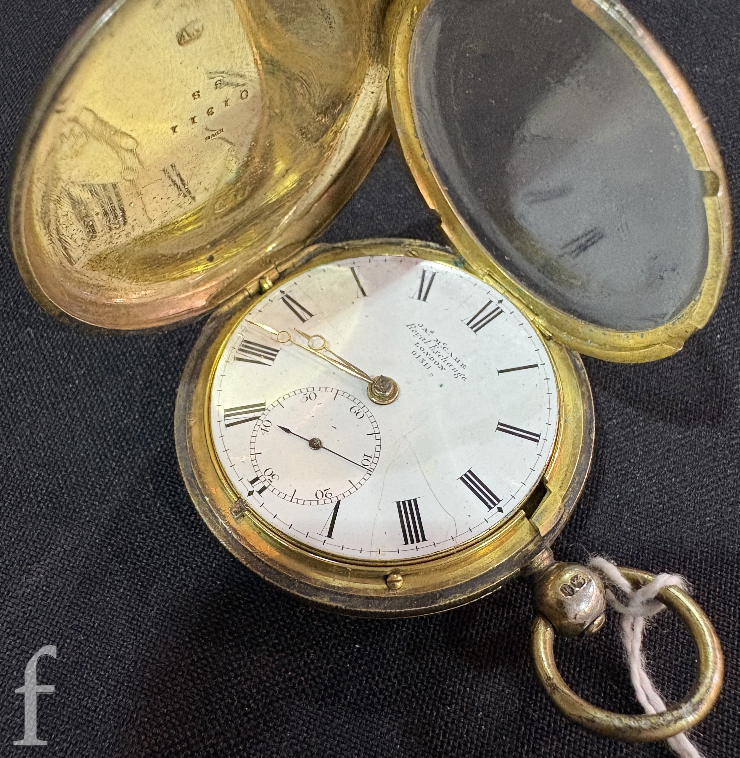 A 19th century silver gilt full hunter pocket watch with key wind movement, the movement signed and numbered Isac (sic) McCabe, Royal Exchange London, No 01311, case diameter approximately 45mm
