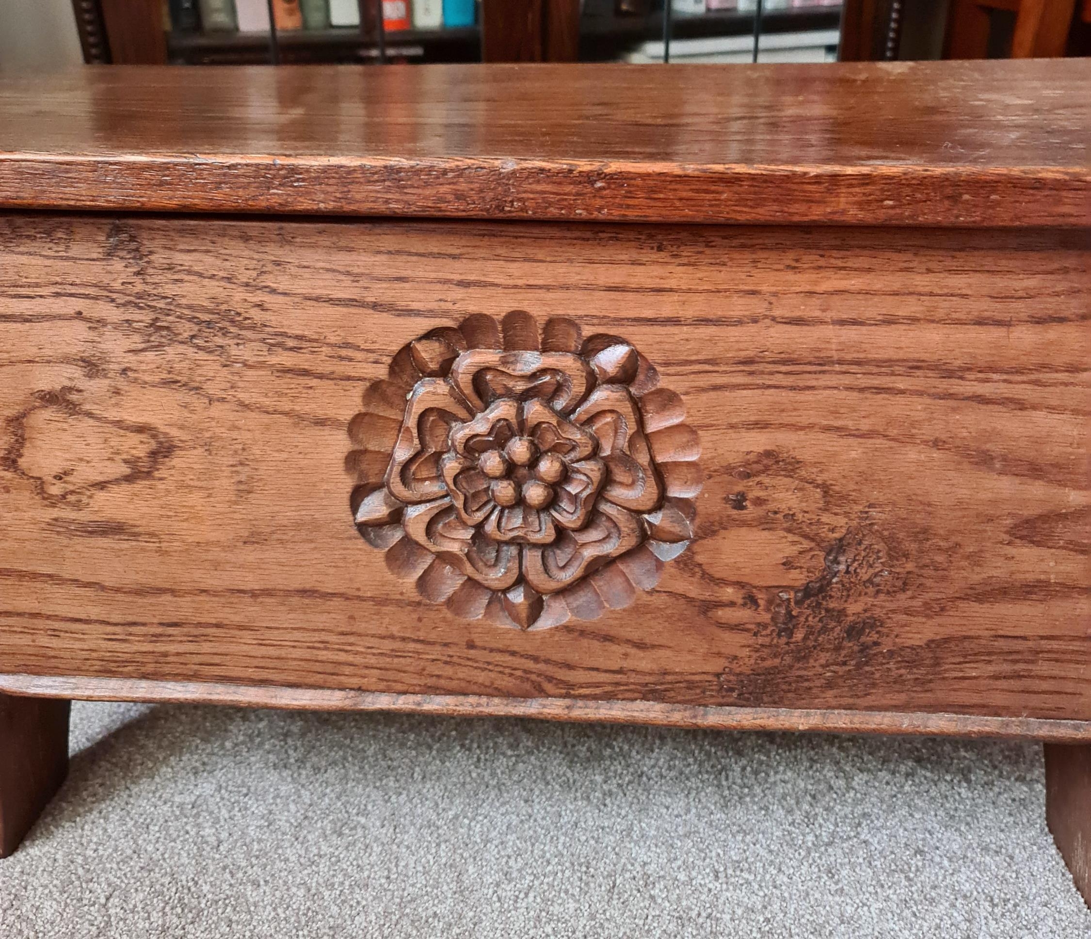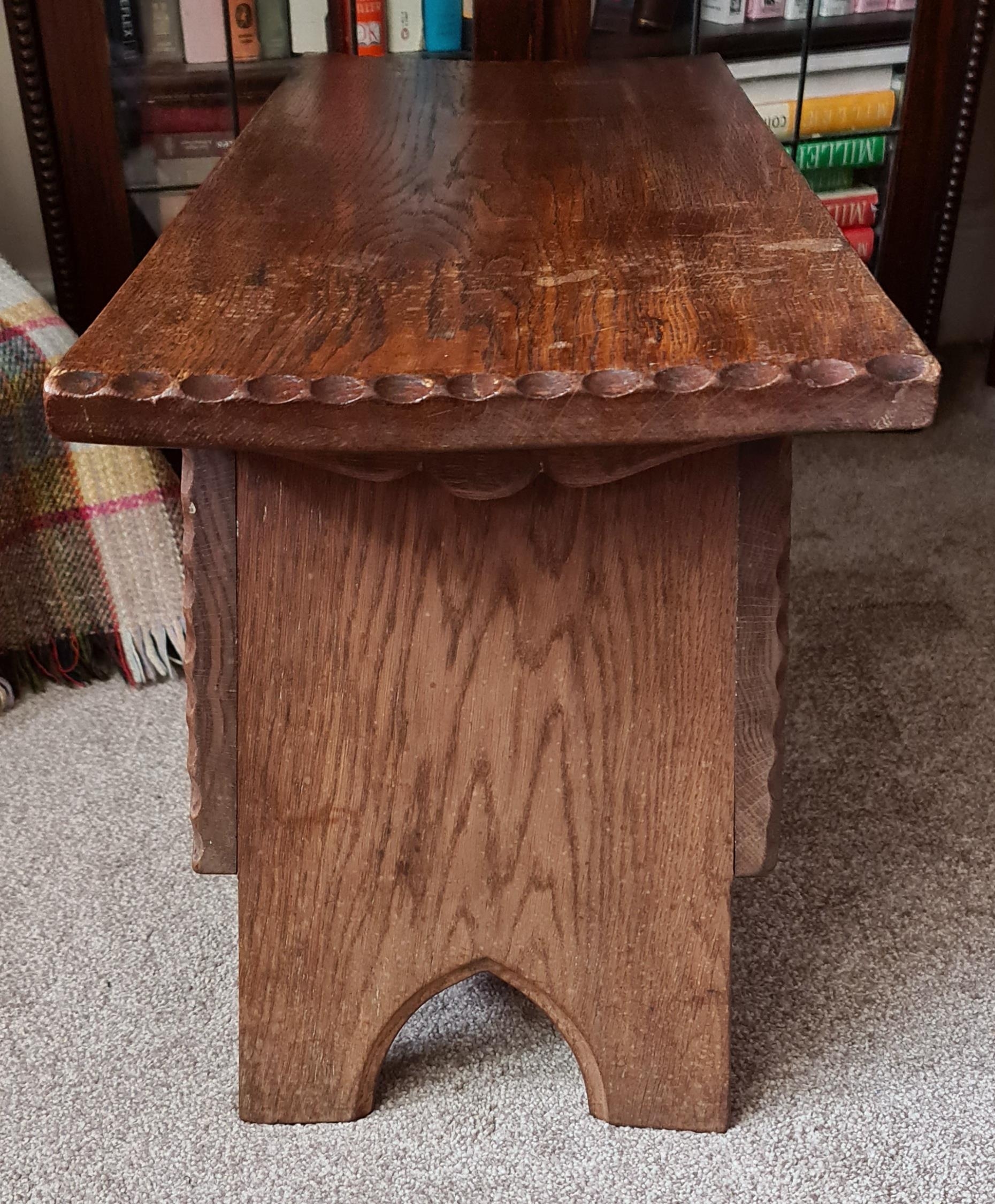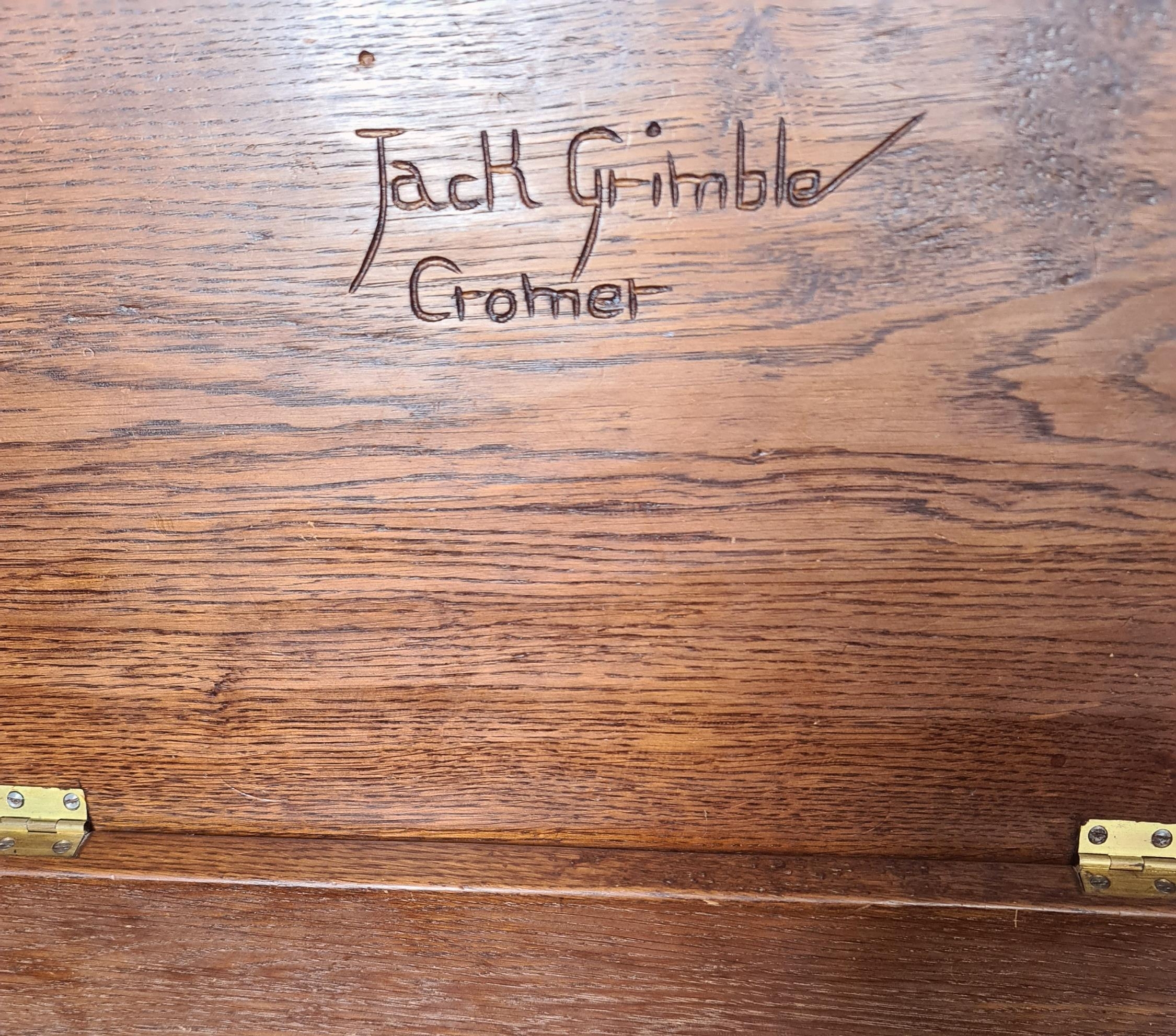 Vintage Oak Carved Stool Box By Jack Grimble Signed Measures 74cm long by 30cm wide by 39cm tall. Shipping is available. Please ask for a quote before bidding. Where possible we combine shipping costs. Remember, if you are the highest bidder above reserve on this Lot you have bought the item and are legally responsible for the item. Viewing is recommended in either person or via video link. Contact us to arrange.