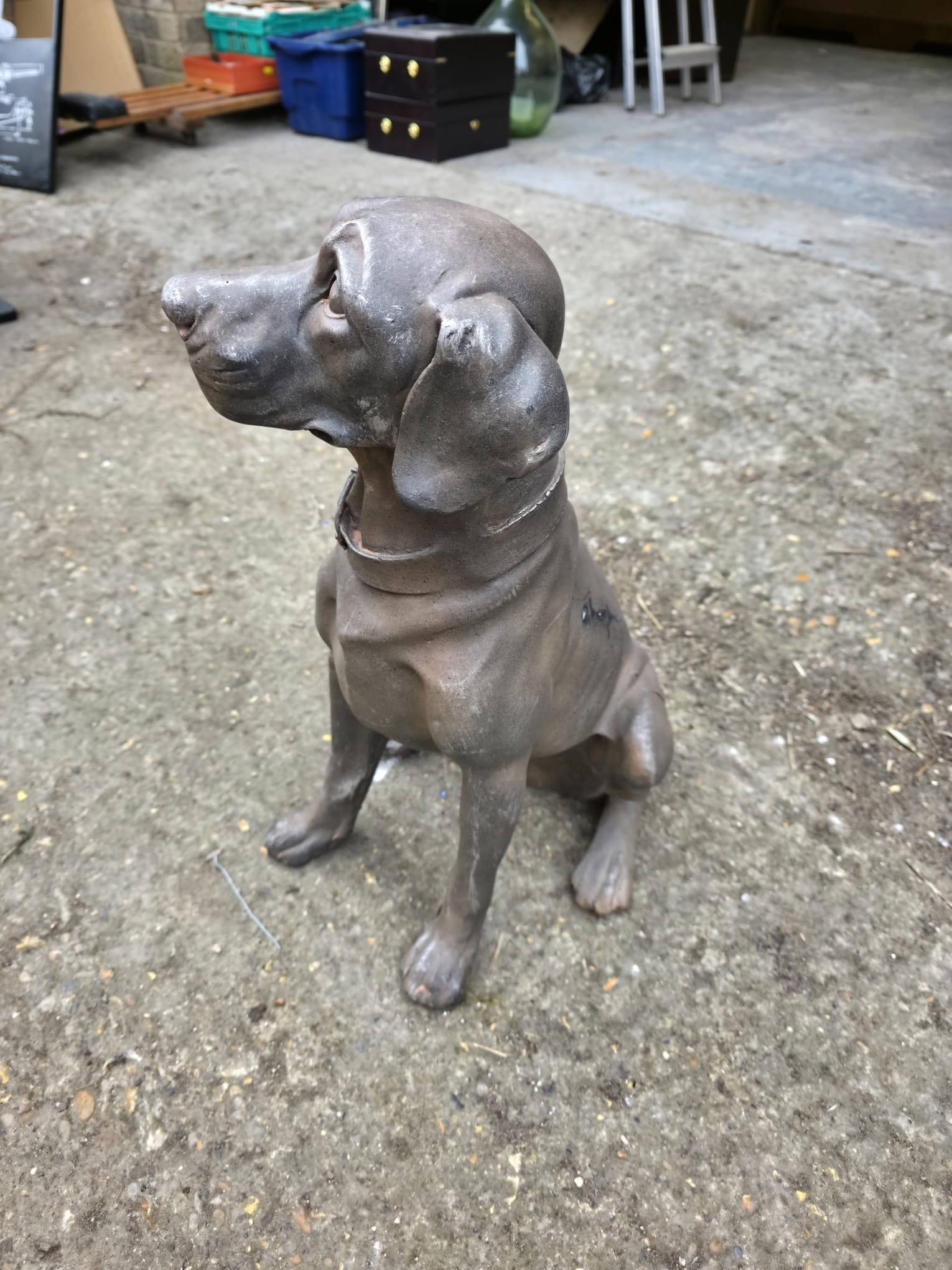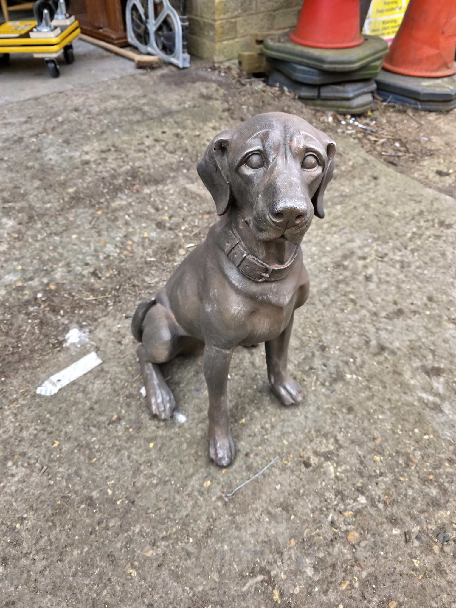 Large Bronze Effect Seated Dog Figure - approx 60cm tall