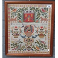 Welsh 19th century needlework sampler by Margaret Price, Penywern, dated 1884. Framed. 50 x 44cm approx.