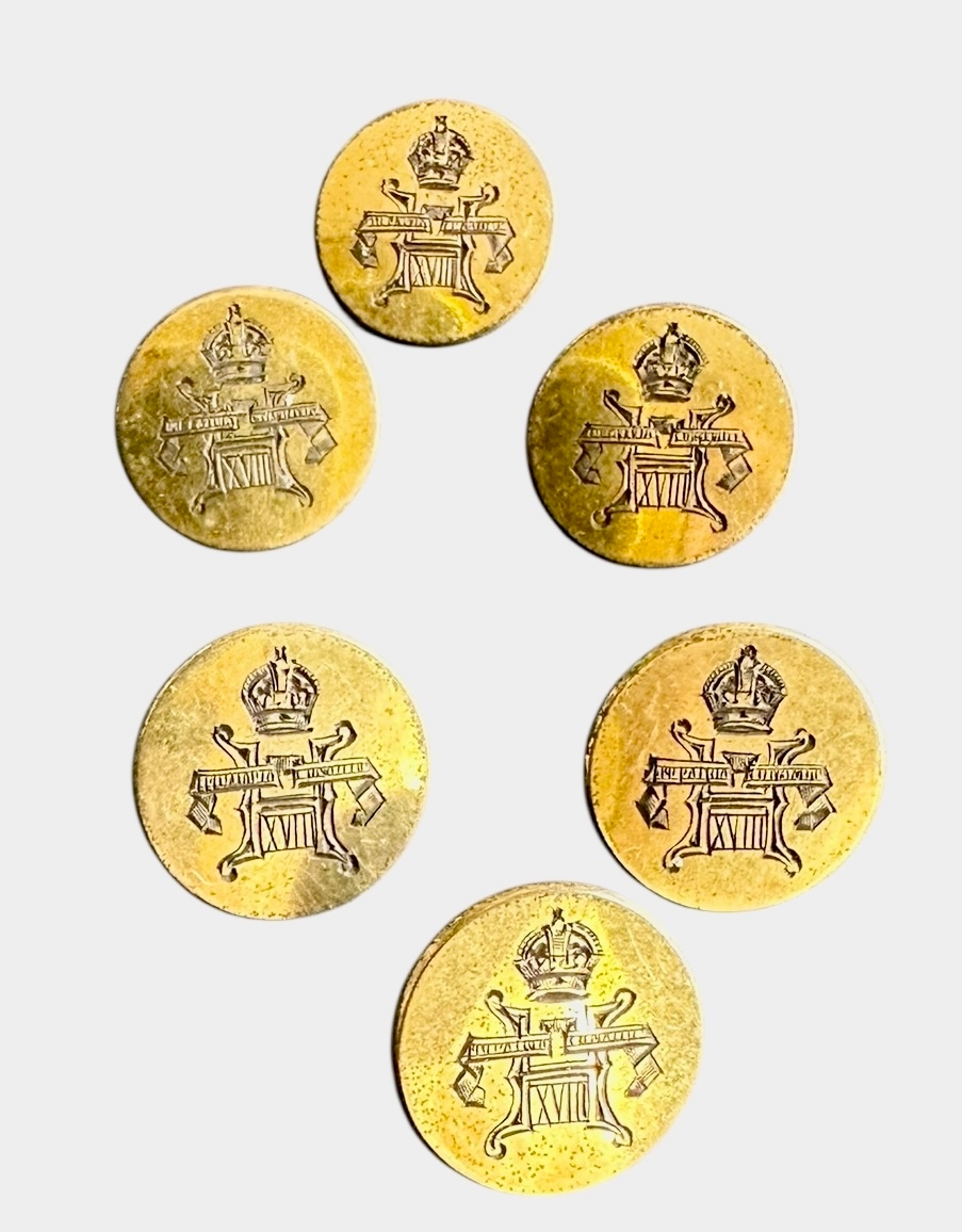 A Set Of Gilt Buttons Jennings Co London 18th Hussars Size 1.5cm