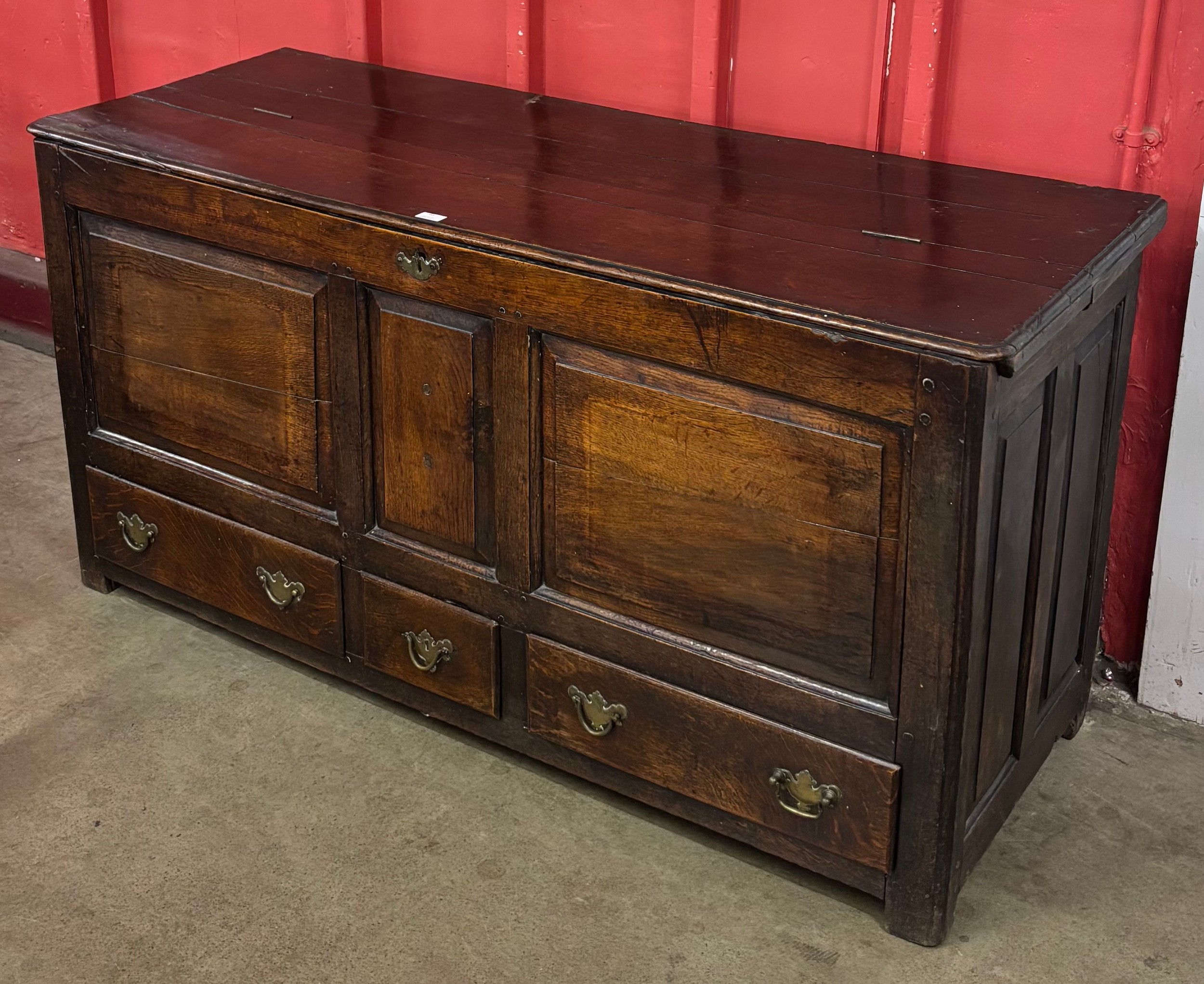 A George II panelled oak mule chest