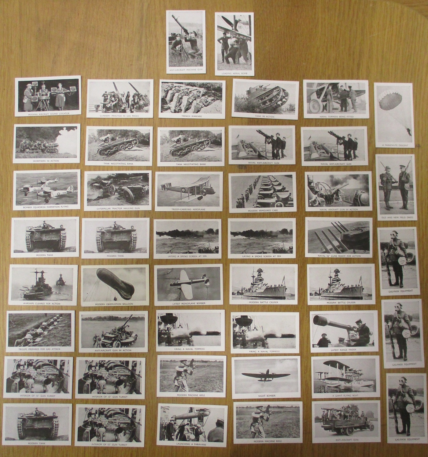 Collection of loose cards in box with odds and part sets, including ranges from Lea Modern Miniatures (24), Louis Gerard Modern Armaments (numbered), Morris Actresses (B&W (28)), Players Championship Golf Courses (19), Golf (23), Old Naval Prints set, Rothmans Beauties of The Cinema (46), etc, plus ranges from Galler, Hill, Hignett, L&B, Lea, Ogdens, Salmon & Gluckstein, Sarony, etc, varying condition. Qty 1,500 approx. (B)