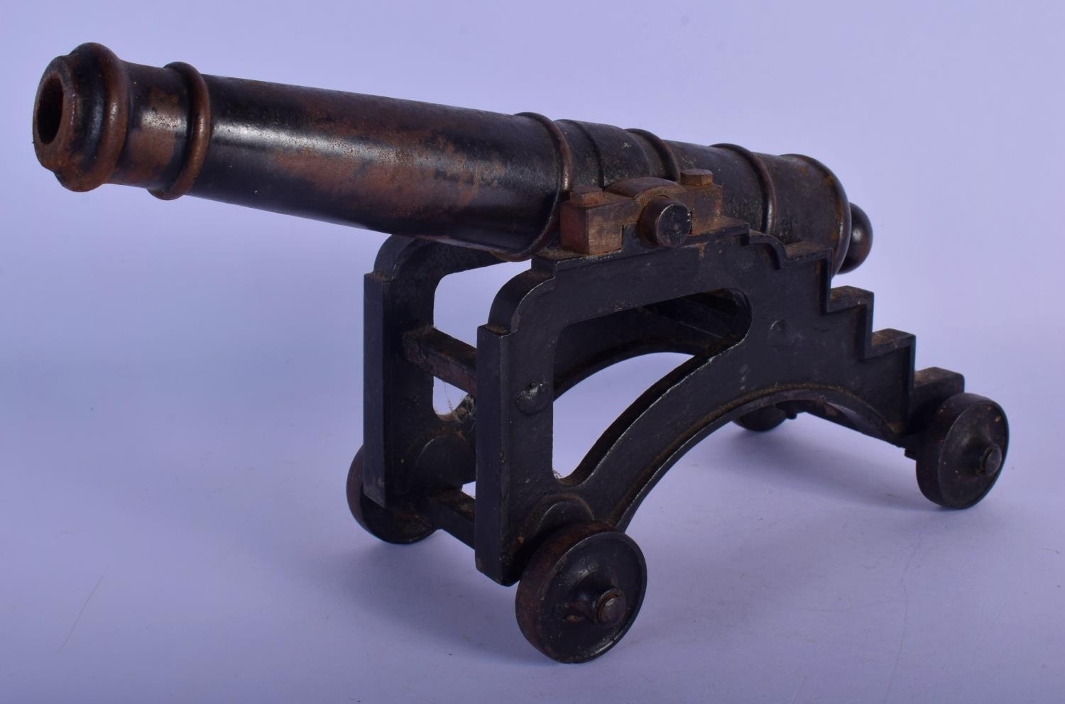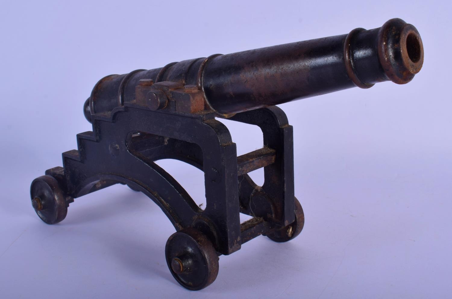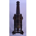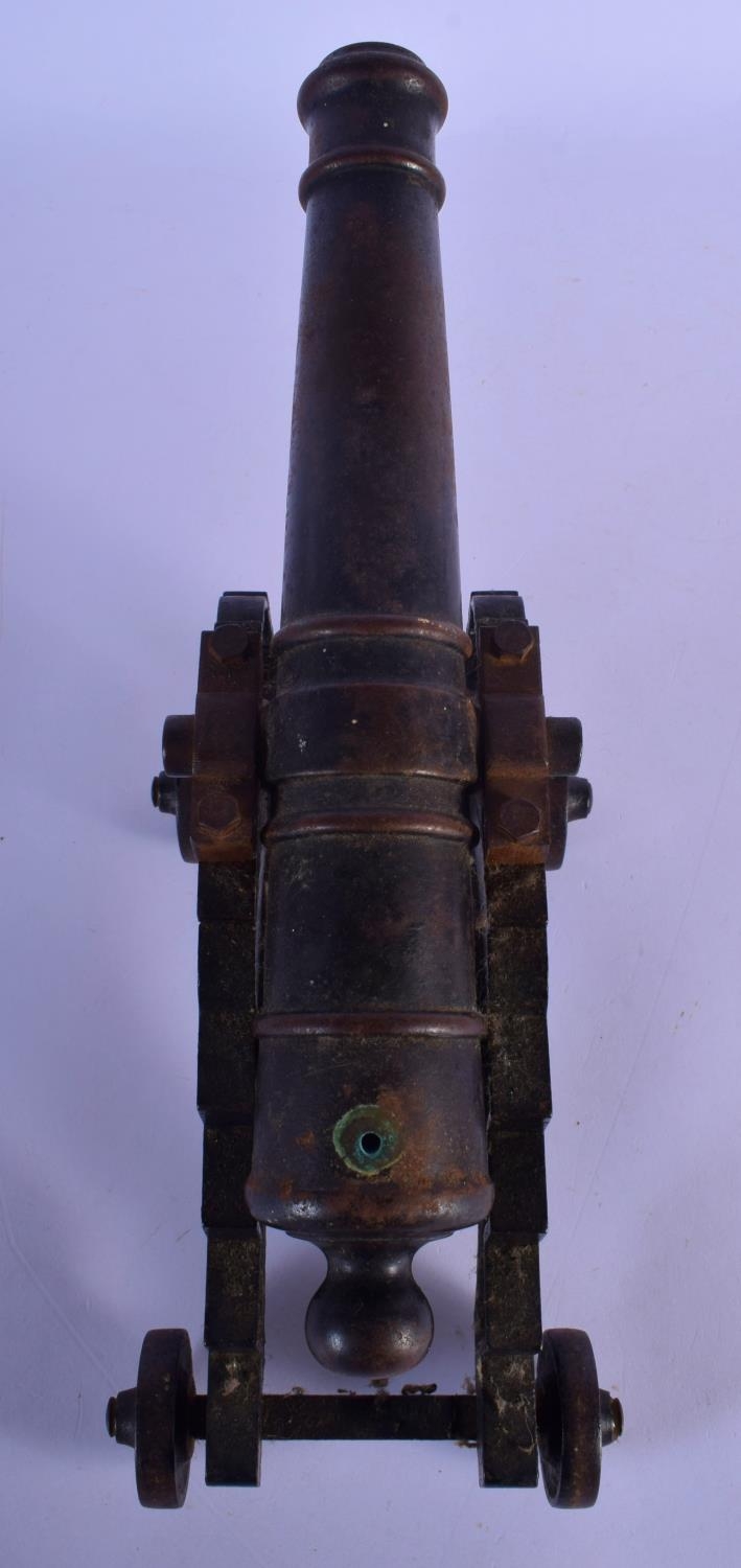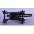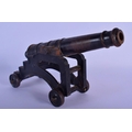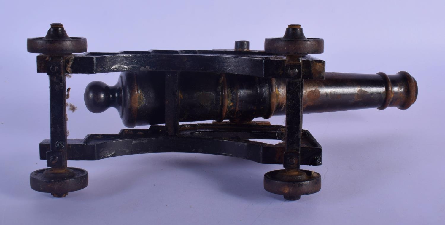 A MID 19TH CENTURY CONTINENTAL CAST IRON DESK CANNON on a rolling frame. 30 cm x 18 cm.