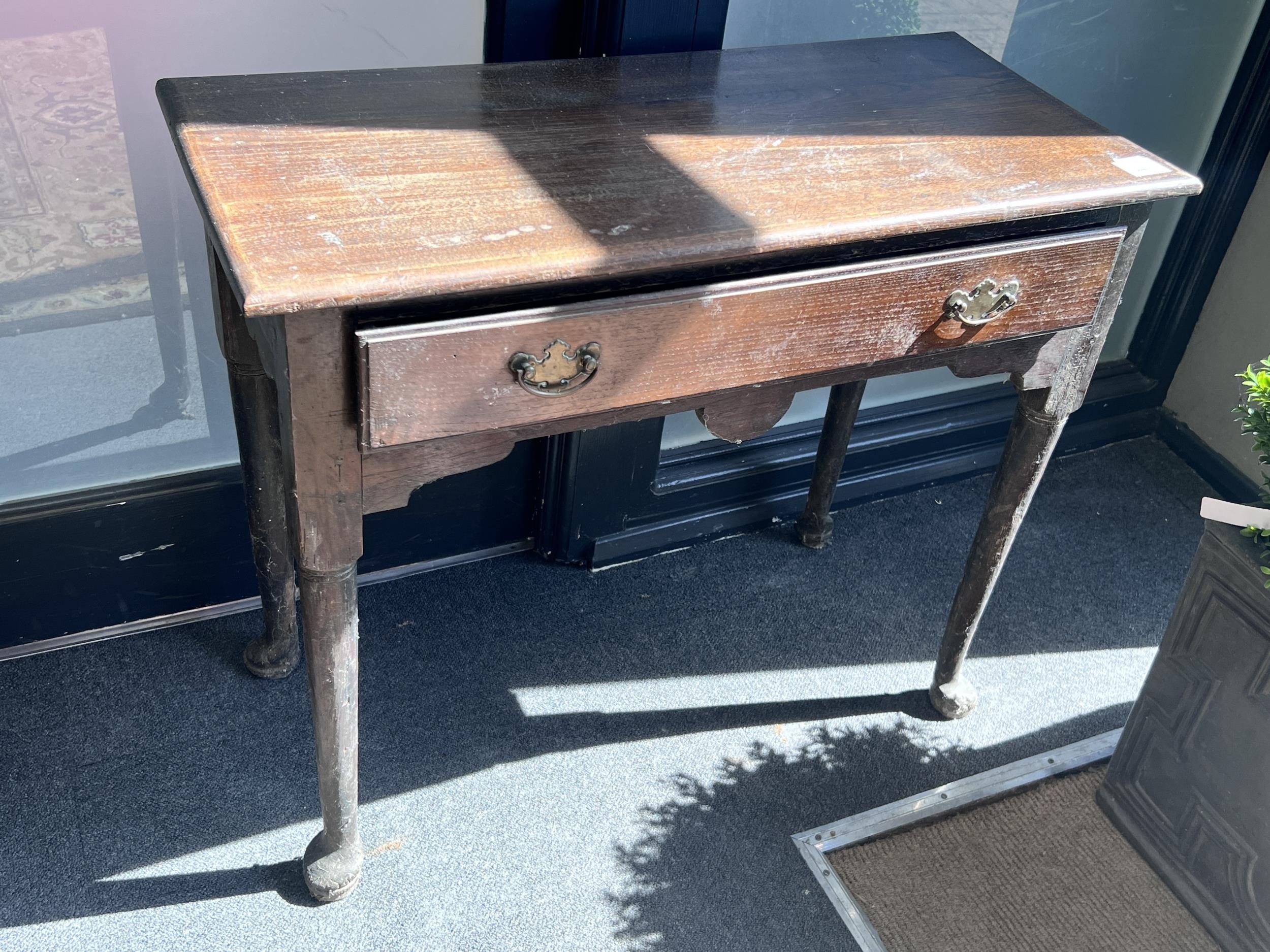 A George III style oak side table, width 82cm, depth 38cm, height 68cm