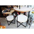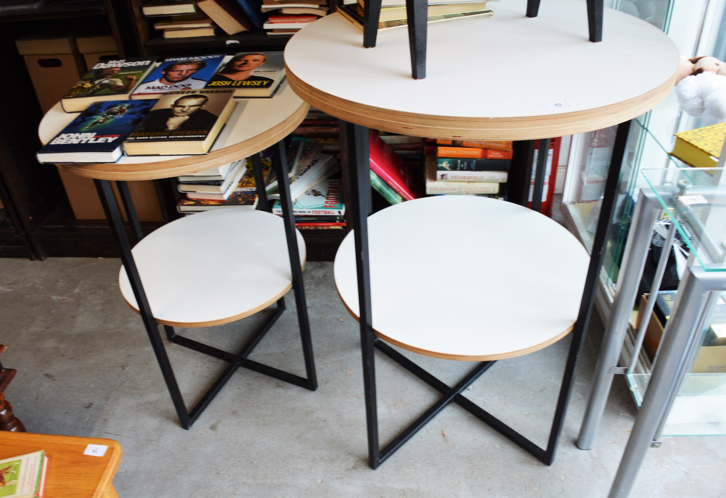 Two Clean Modern Two-Tiered Kitchen/Bar Tables having Coated Plywood Tops and Steel Construction Bases - Dimensions Large 40" H x 27.5" Diameter, Small 33.5" H x 23.5" Diameter