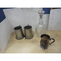 EPNS bottle stand by Elkington, pewter tankards, a silver-mounted decanter etc.