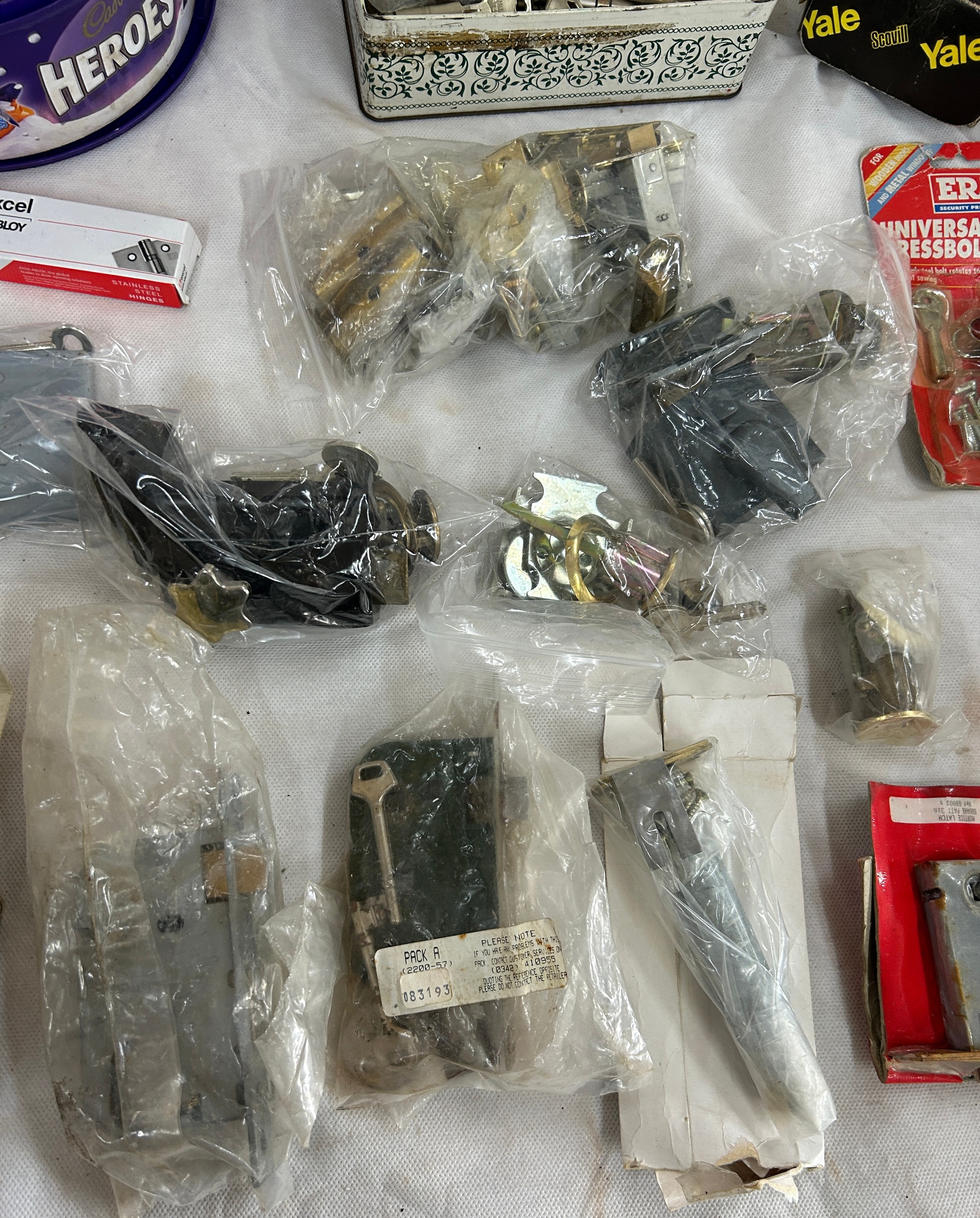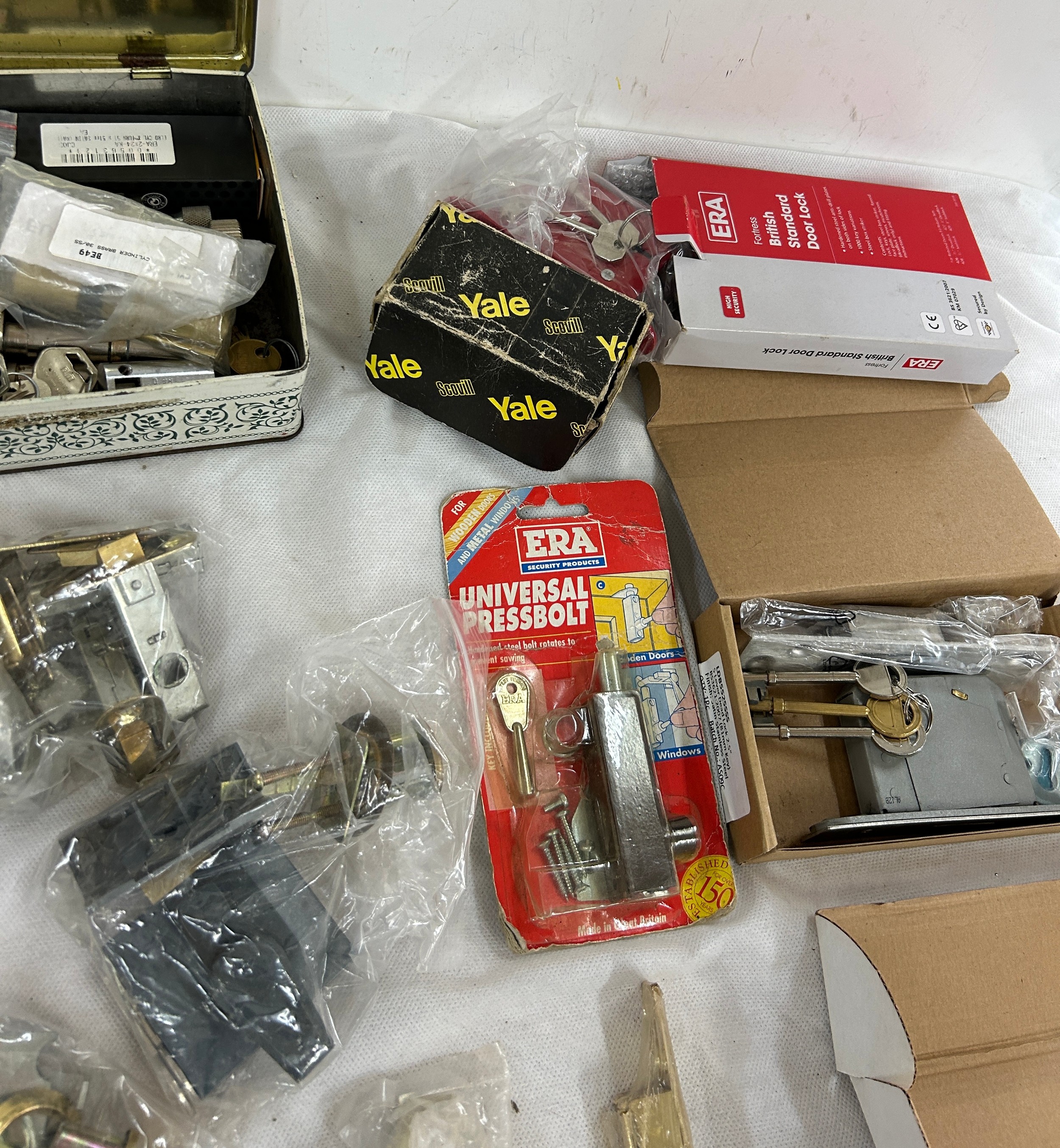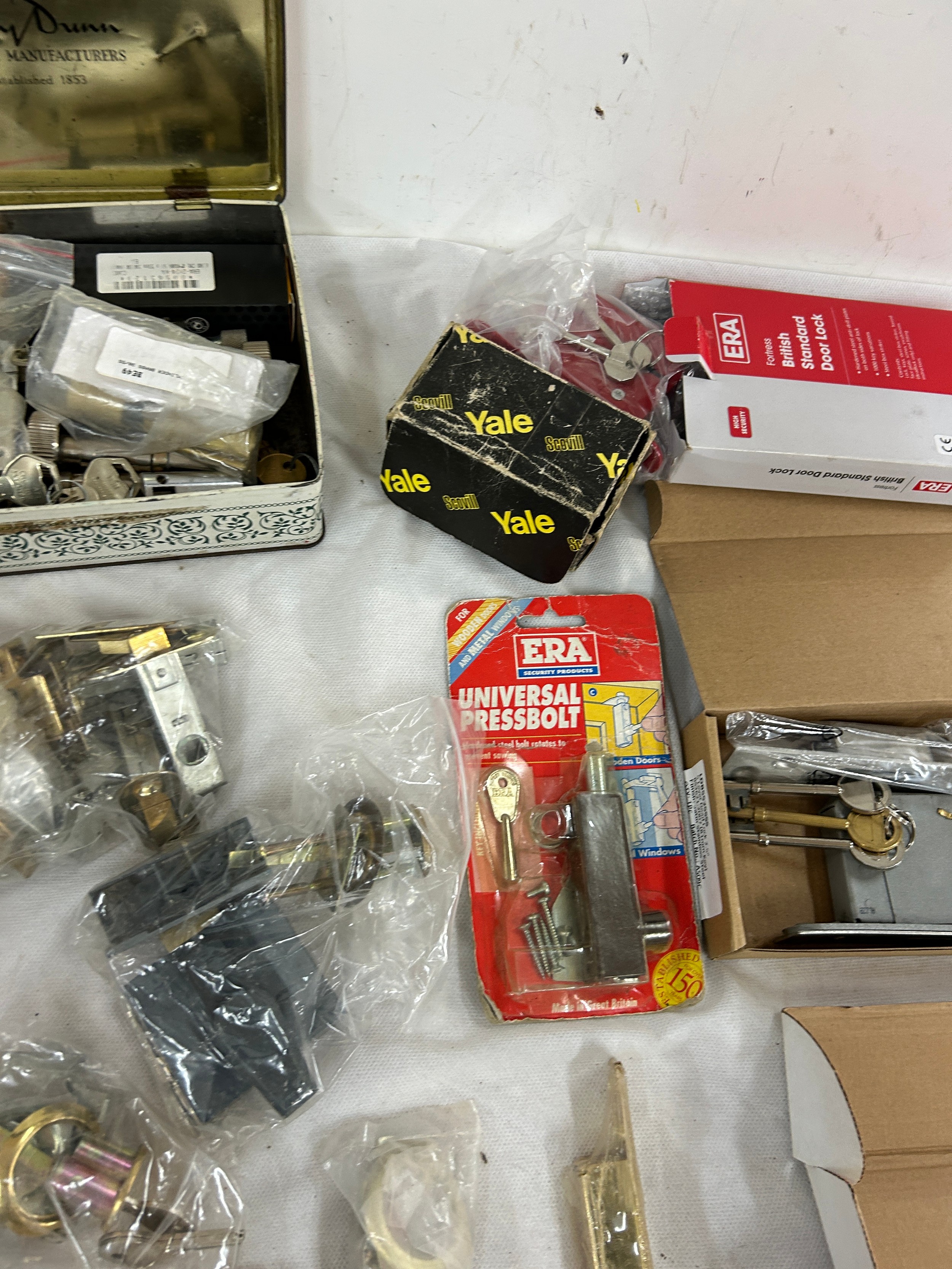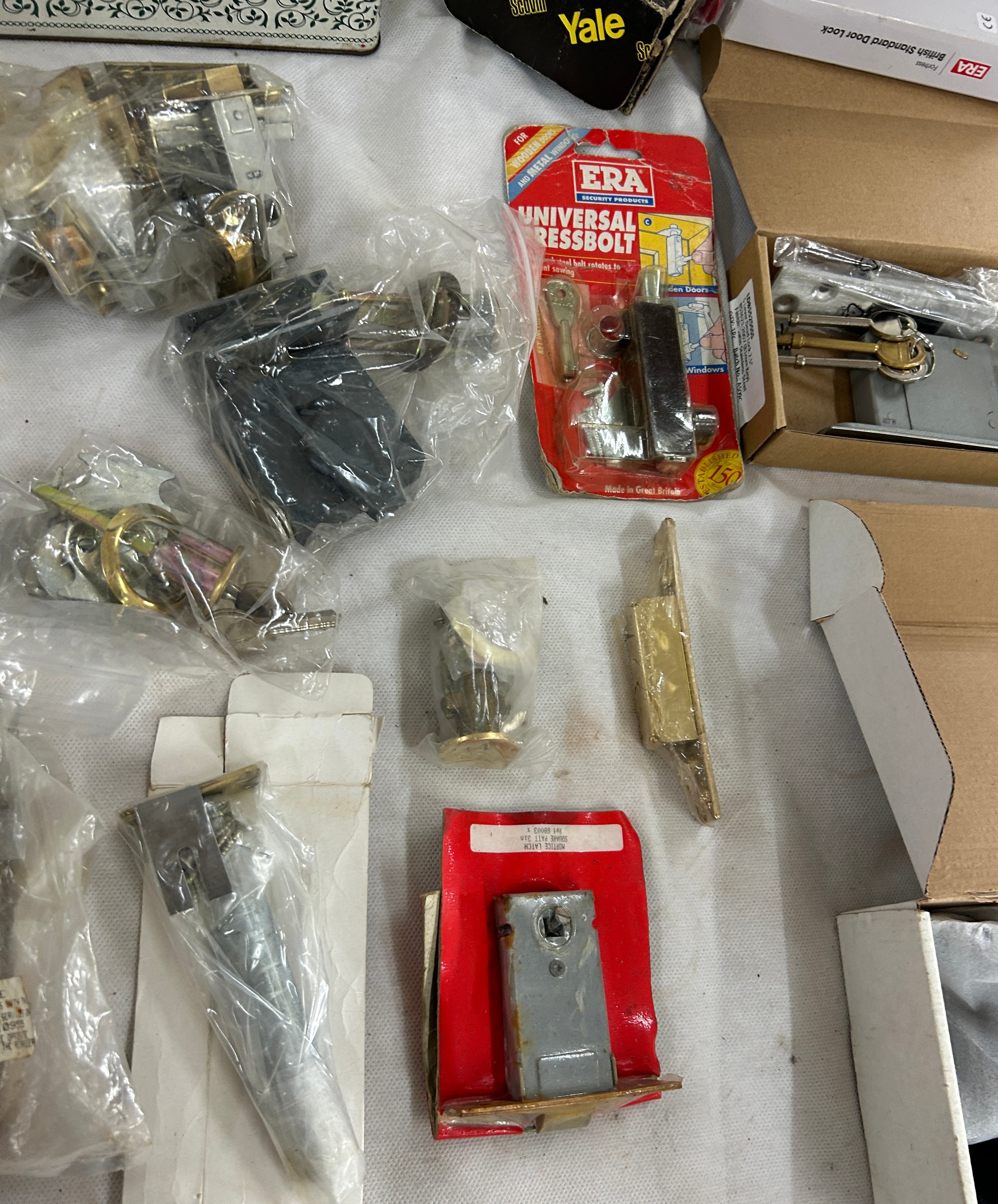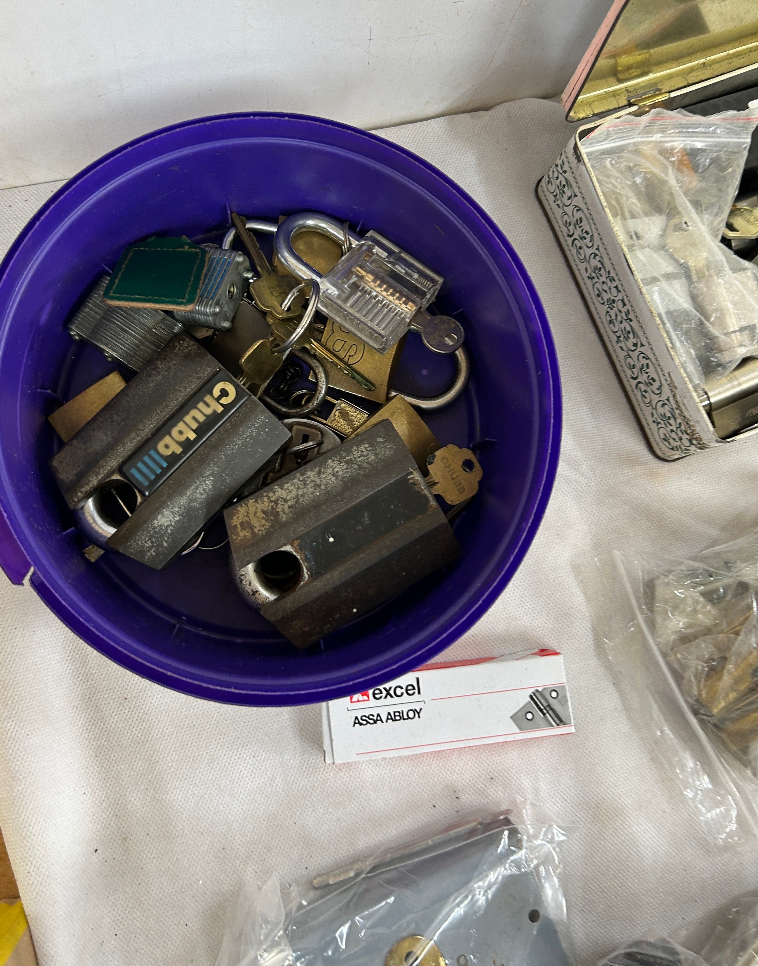 14 pad locks all with keys and a job lot of door locks