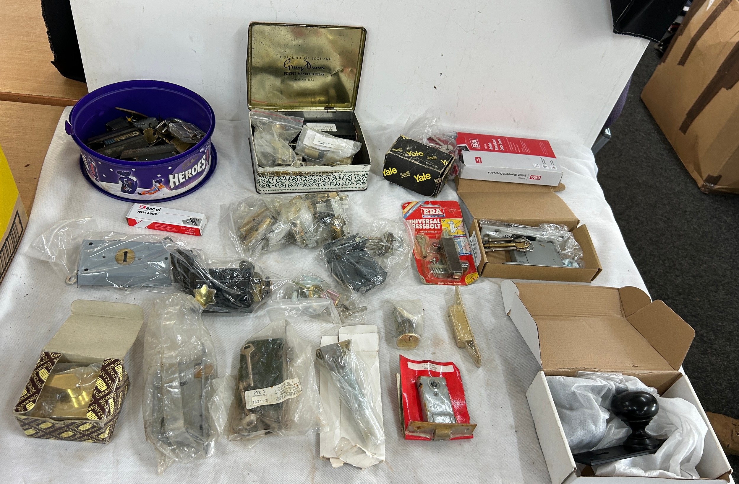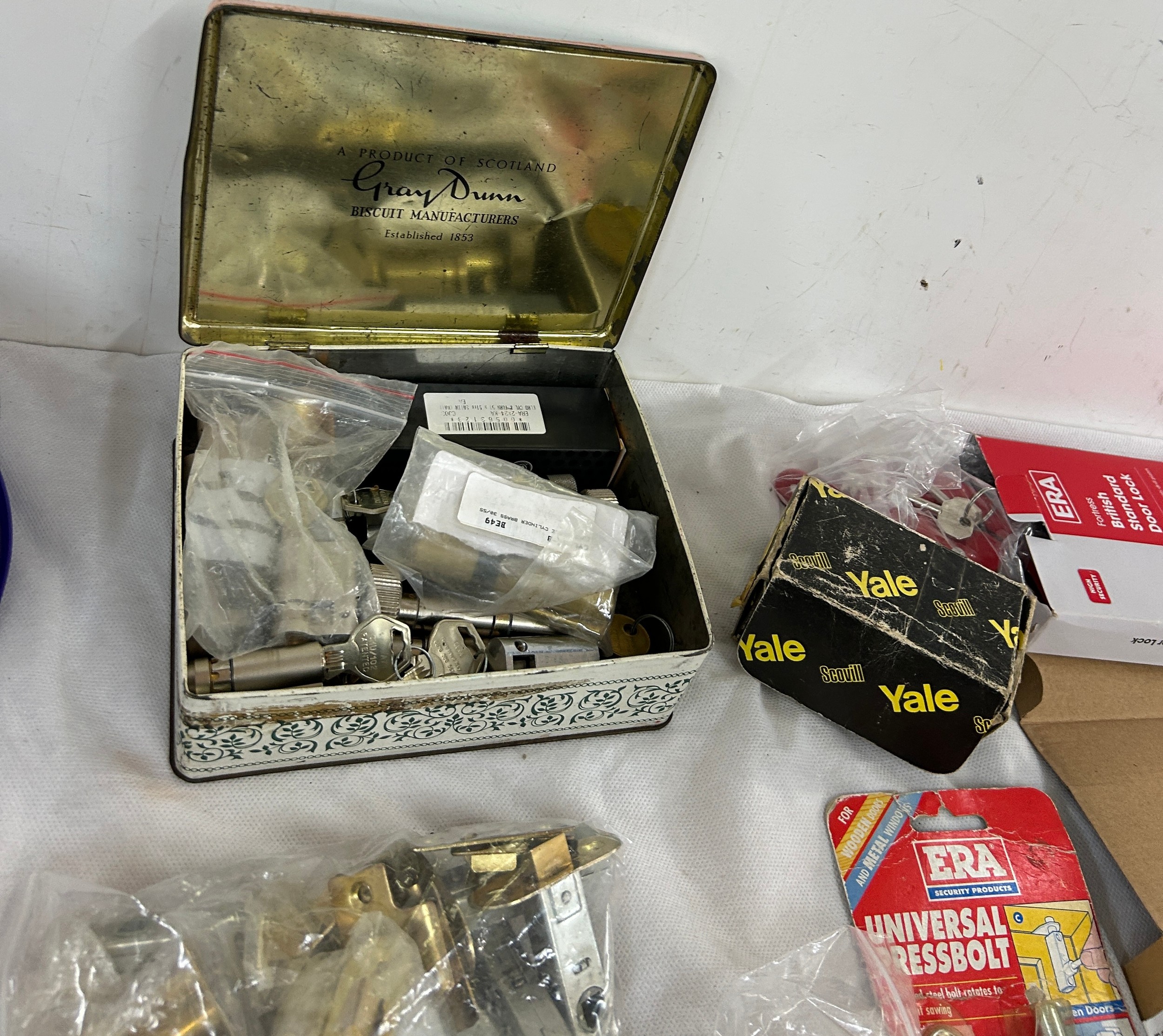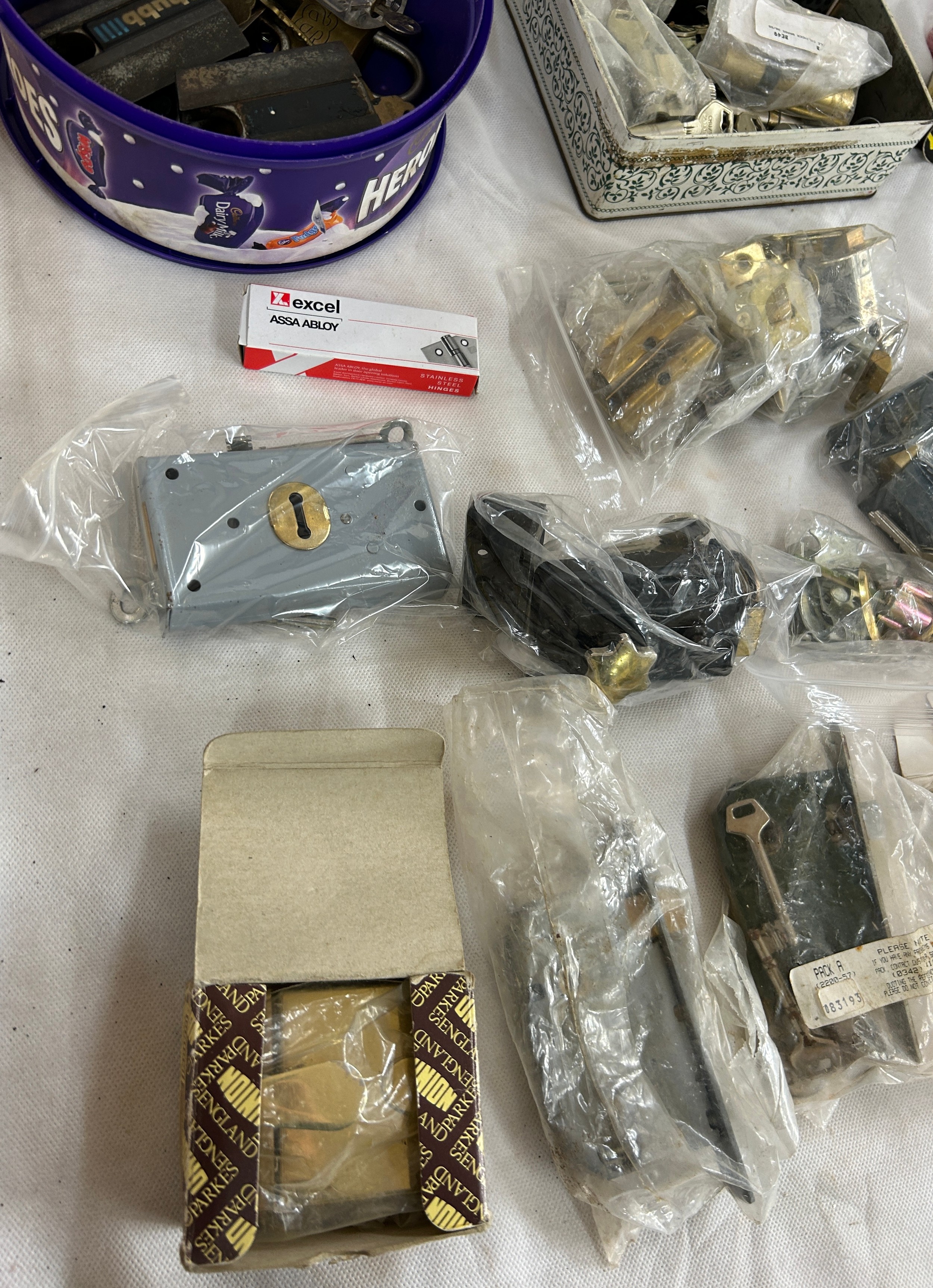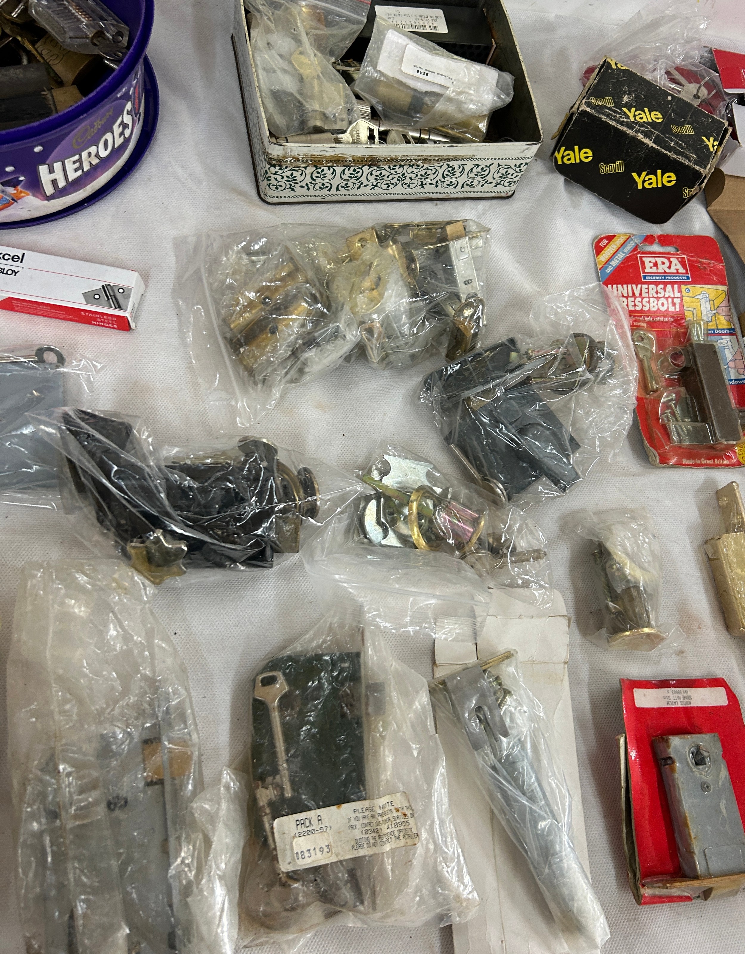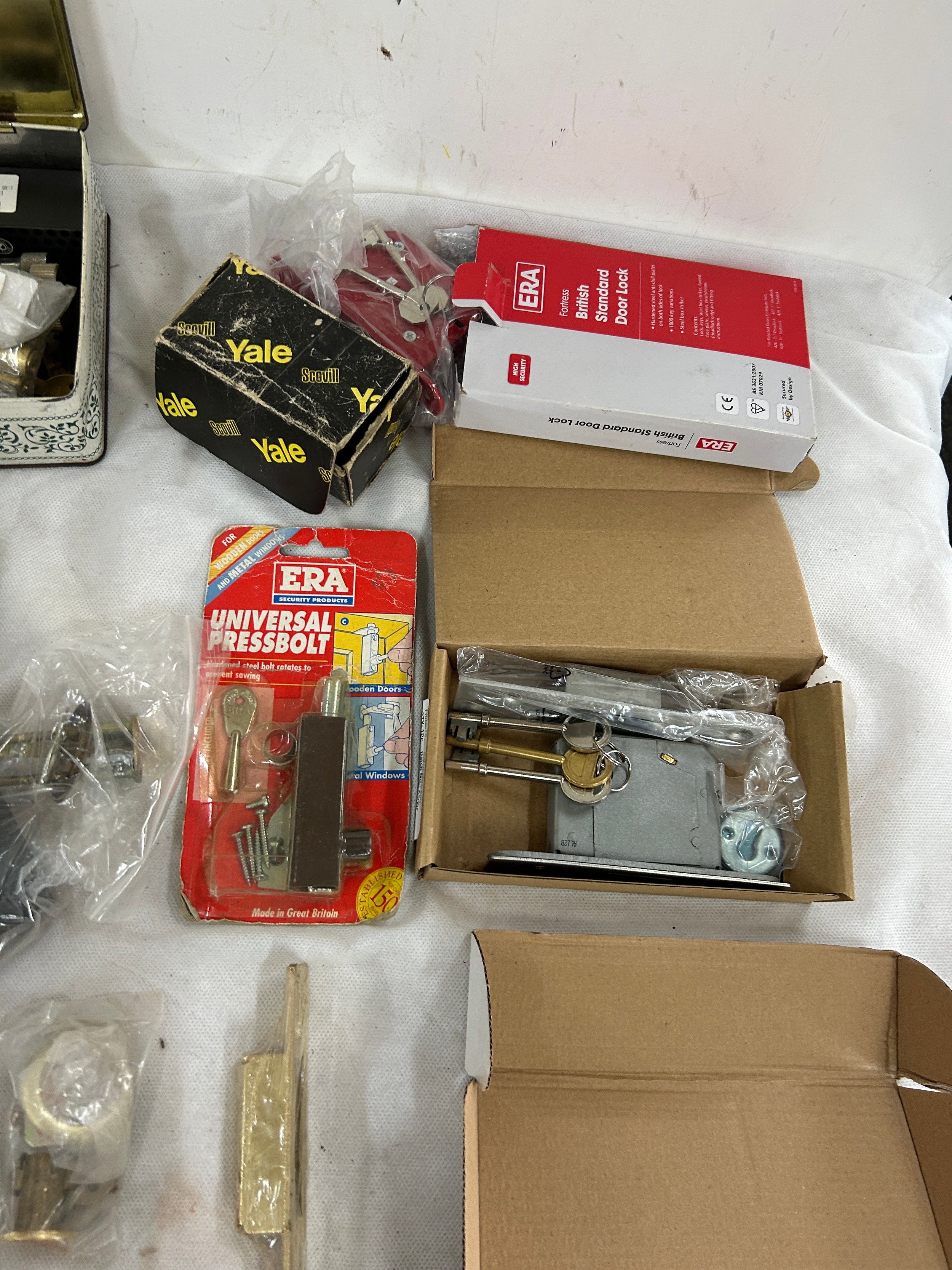 14 pad locks all with keys and a job lot of door locks