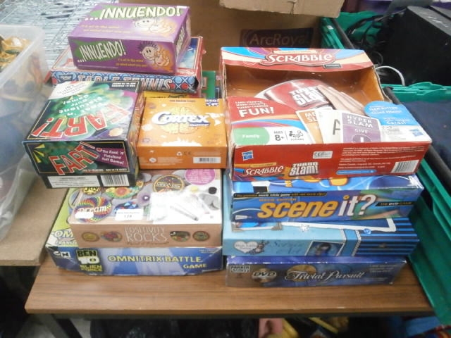 Collection of games inc Scrabble, Fart, innuendo, Scene it, etc