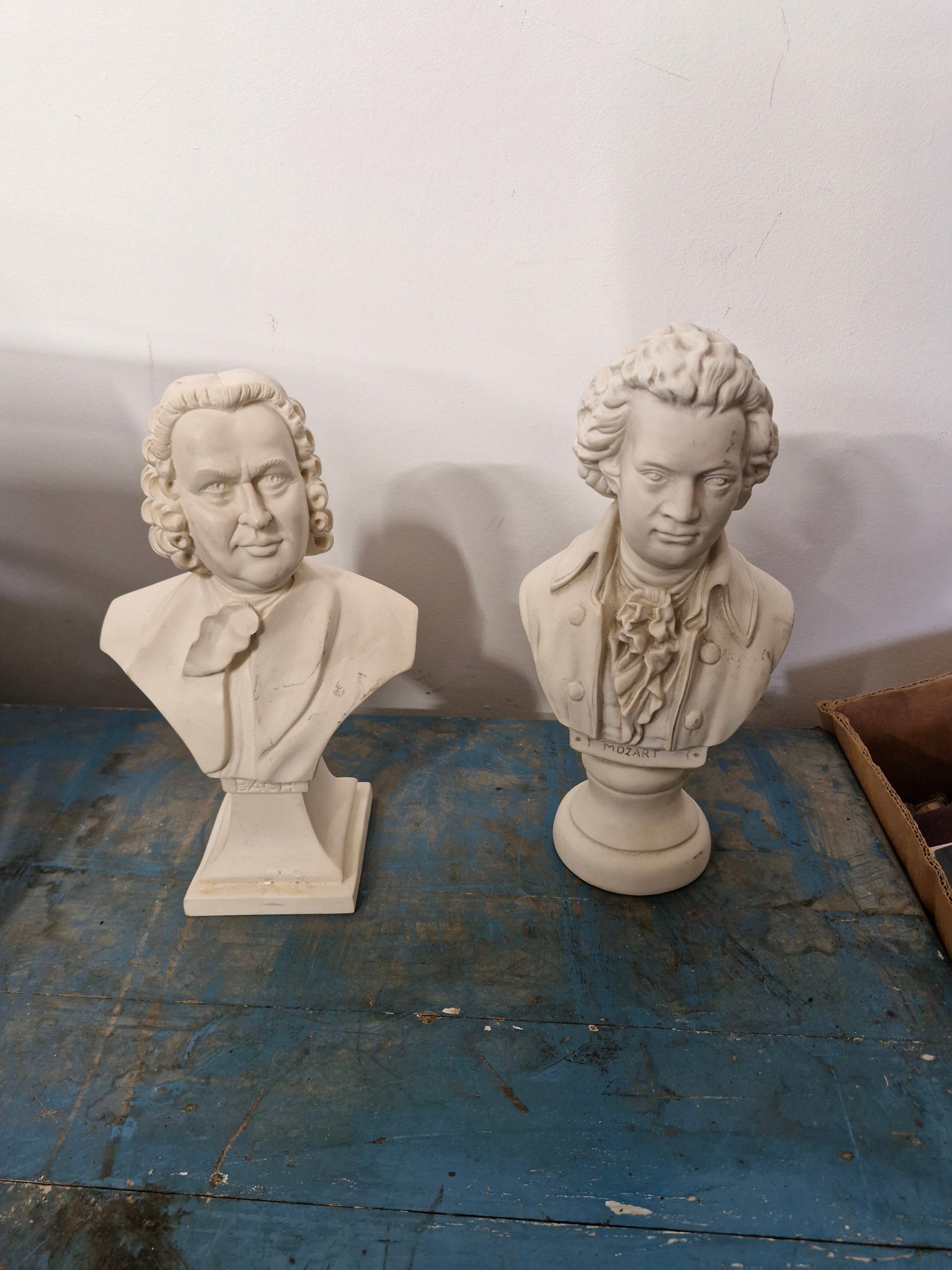 Two busts; Bach and Mozart.