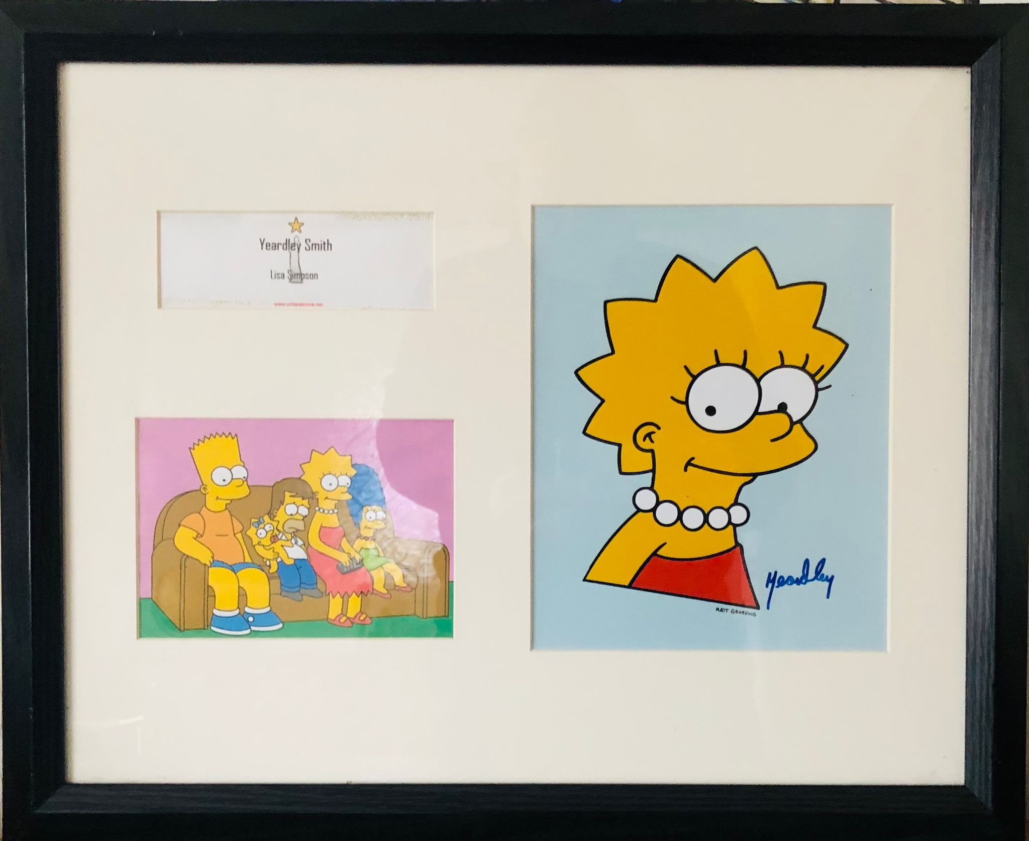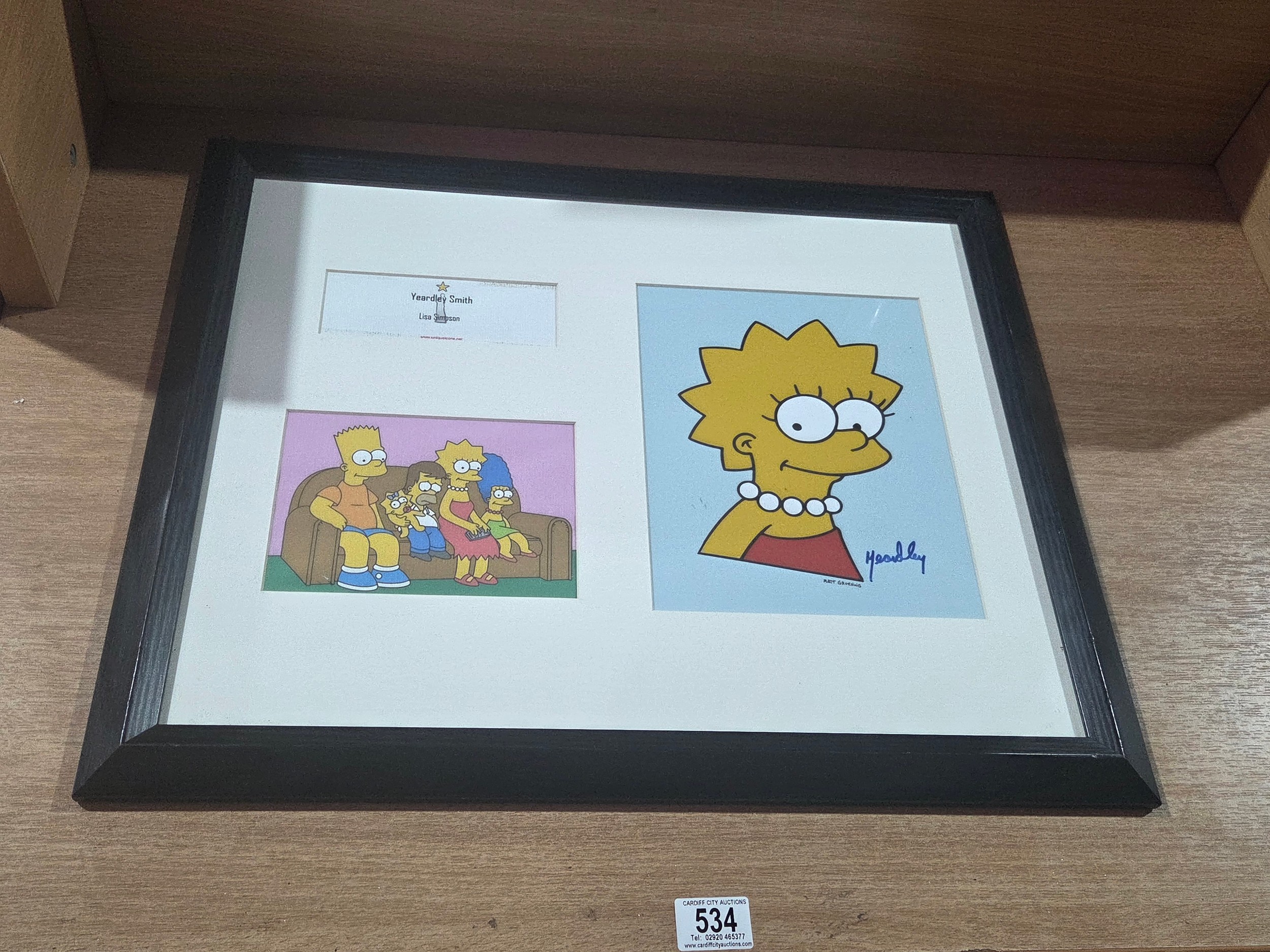 A signed framed photograph of voice actor Yeardley Smith - (Lisa Simpson) from the TV series "The Simpsons" with certificate of authenticity