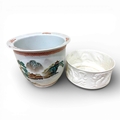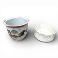A pair of Chinese antique ceramic bowls, comprising one hand-painted landscape bowl and one white relief dragon bowl.