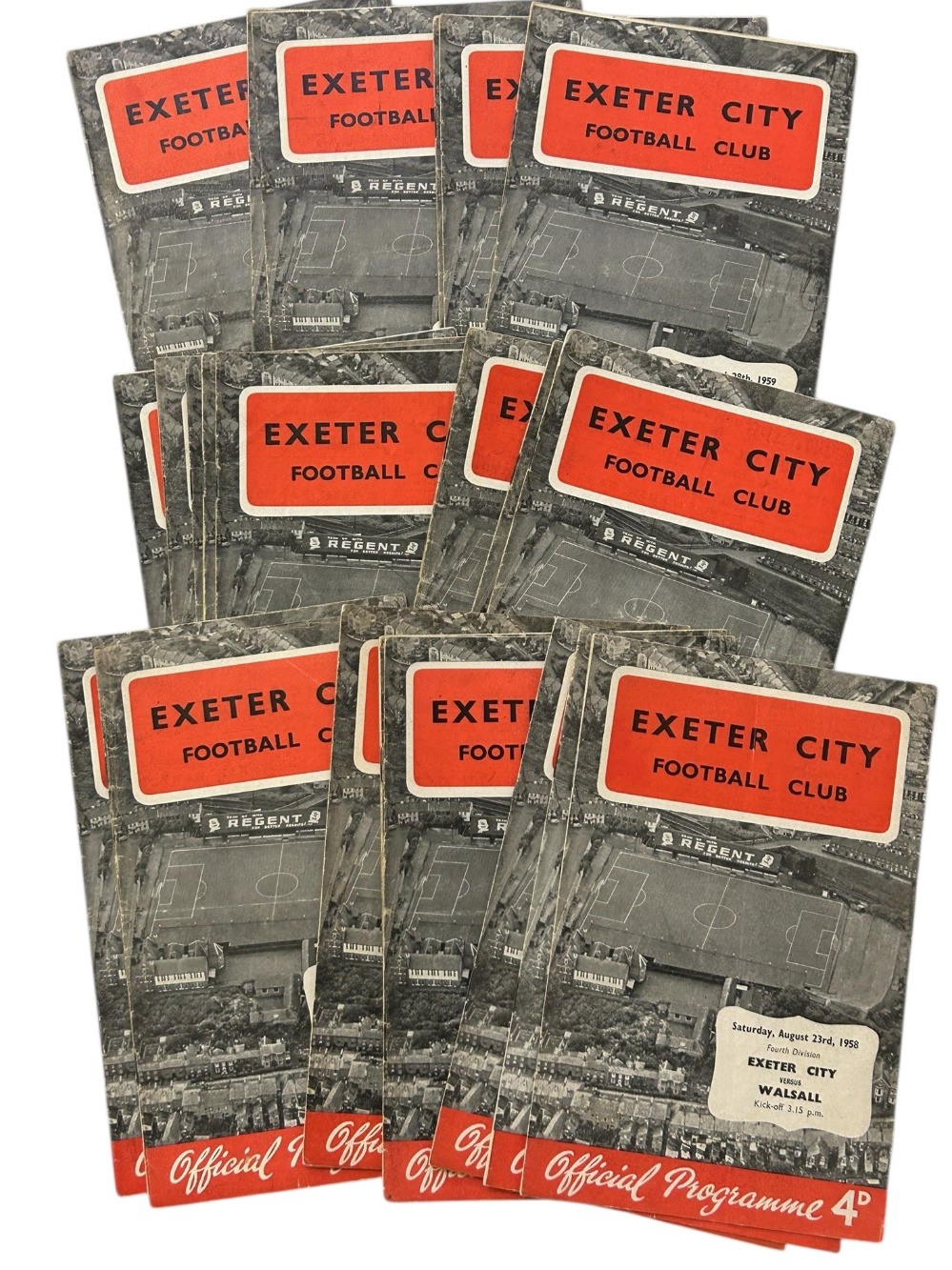 COLLECTION OF EXETER CITY 1958/59 HOME FOOTBALL PROGRAMMES, FULL SET OF 23. GENERALLY GOOD, USUAL FAULTS.